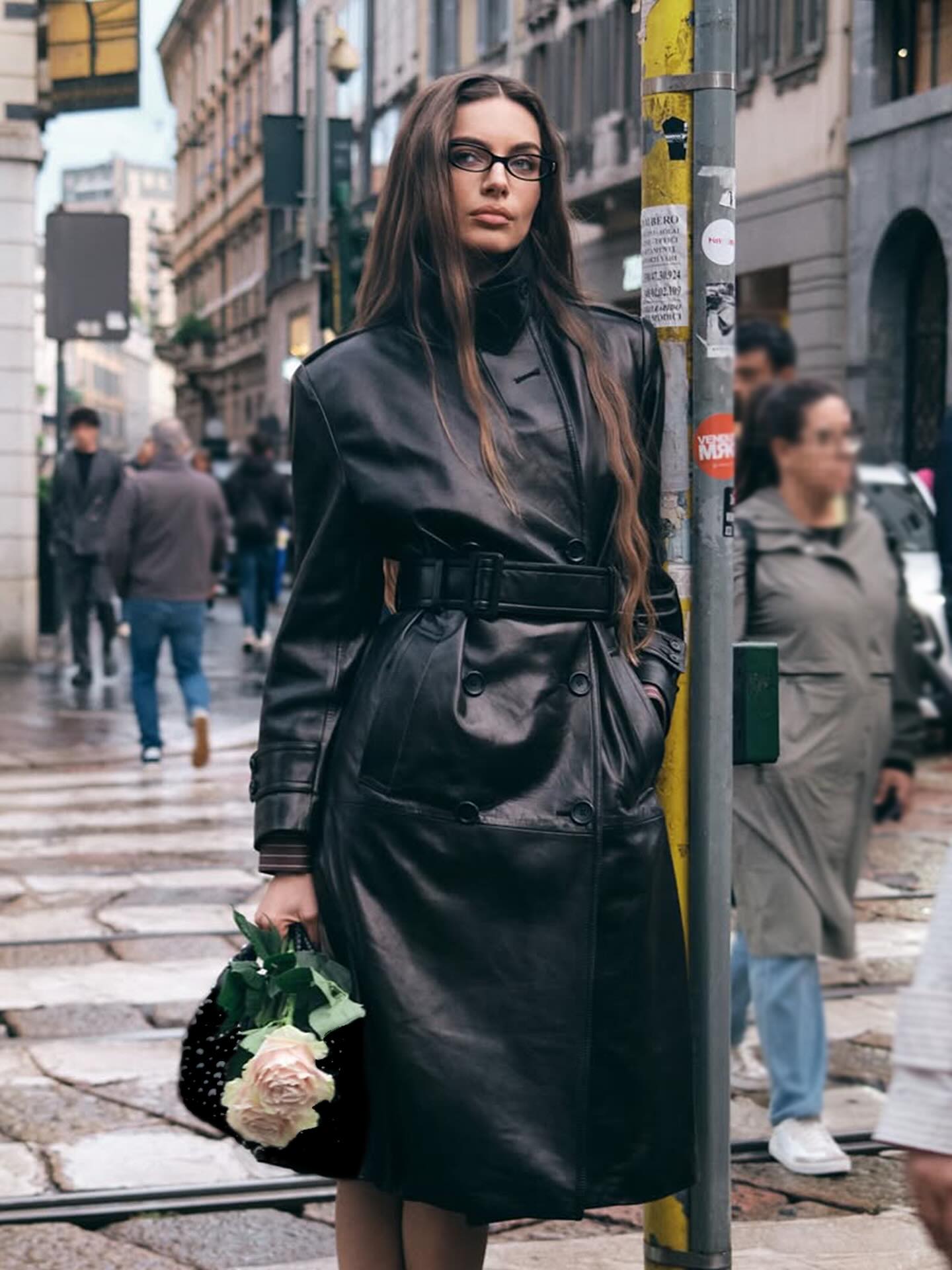Trench Coat in Black Leather