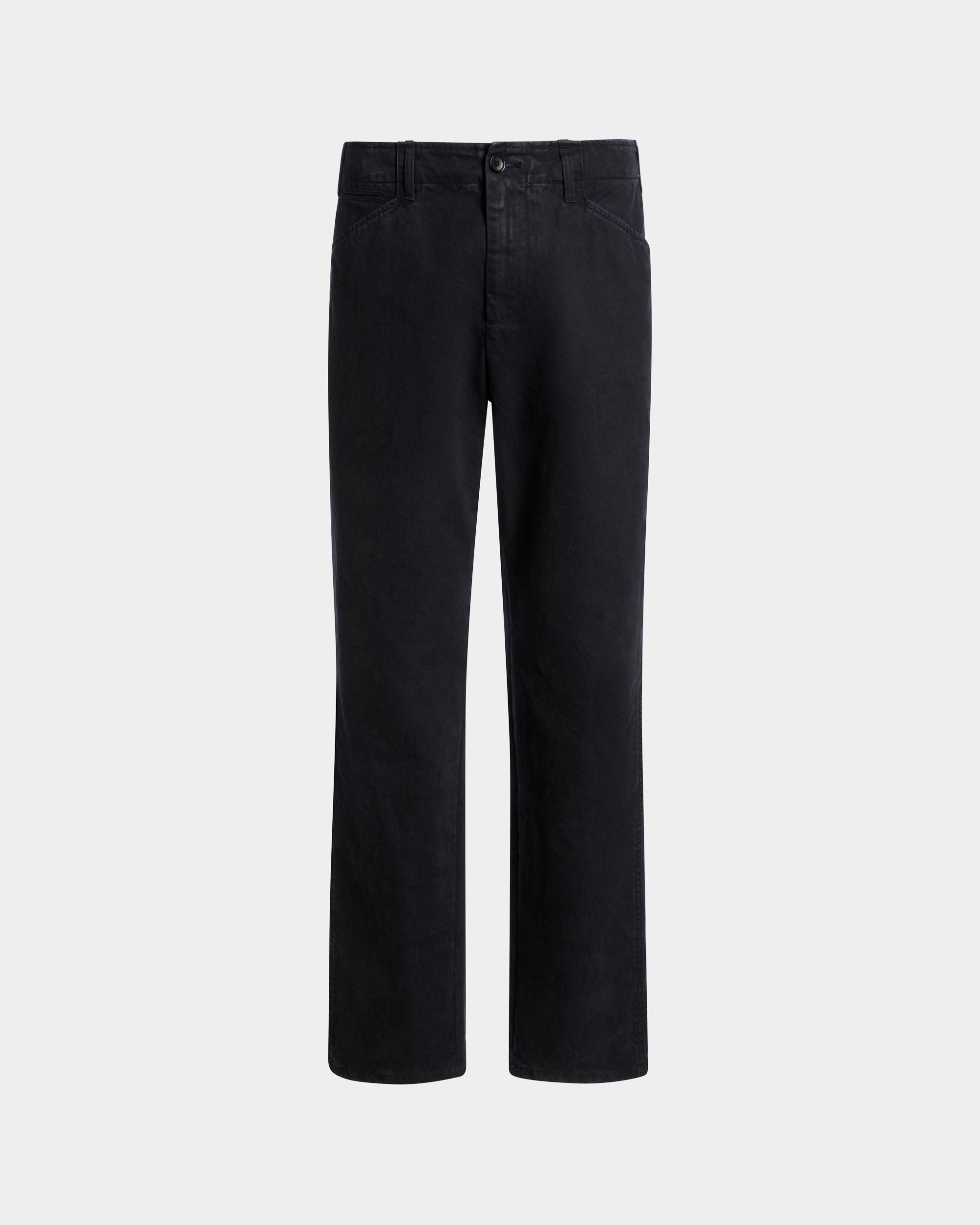 These pants in navy blue cotton gabardine have a classic five-pocket design and a button-and-fly closure.
