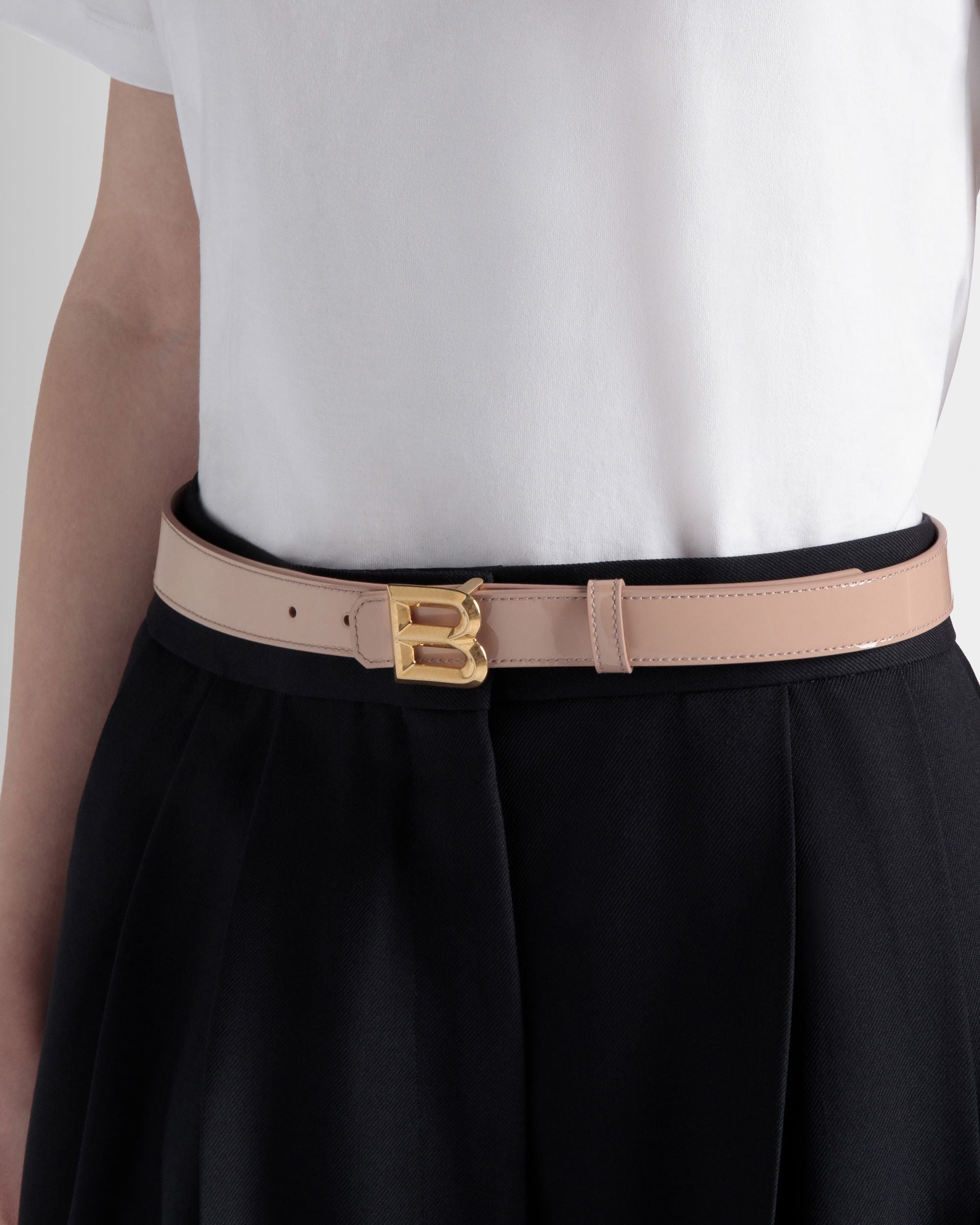 B Bold 25mm Belt In Light Beige Patent Leather