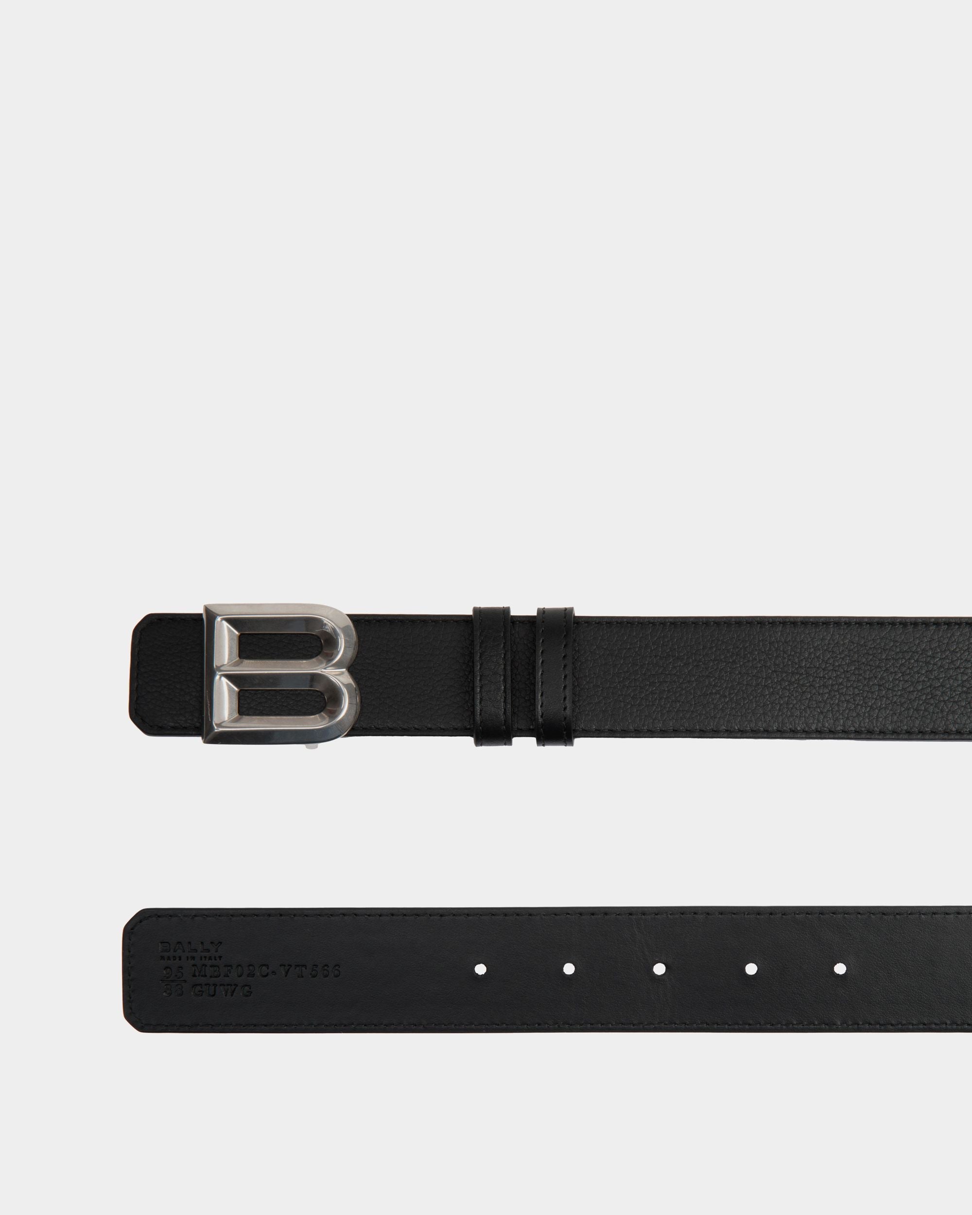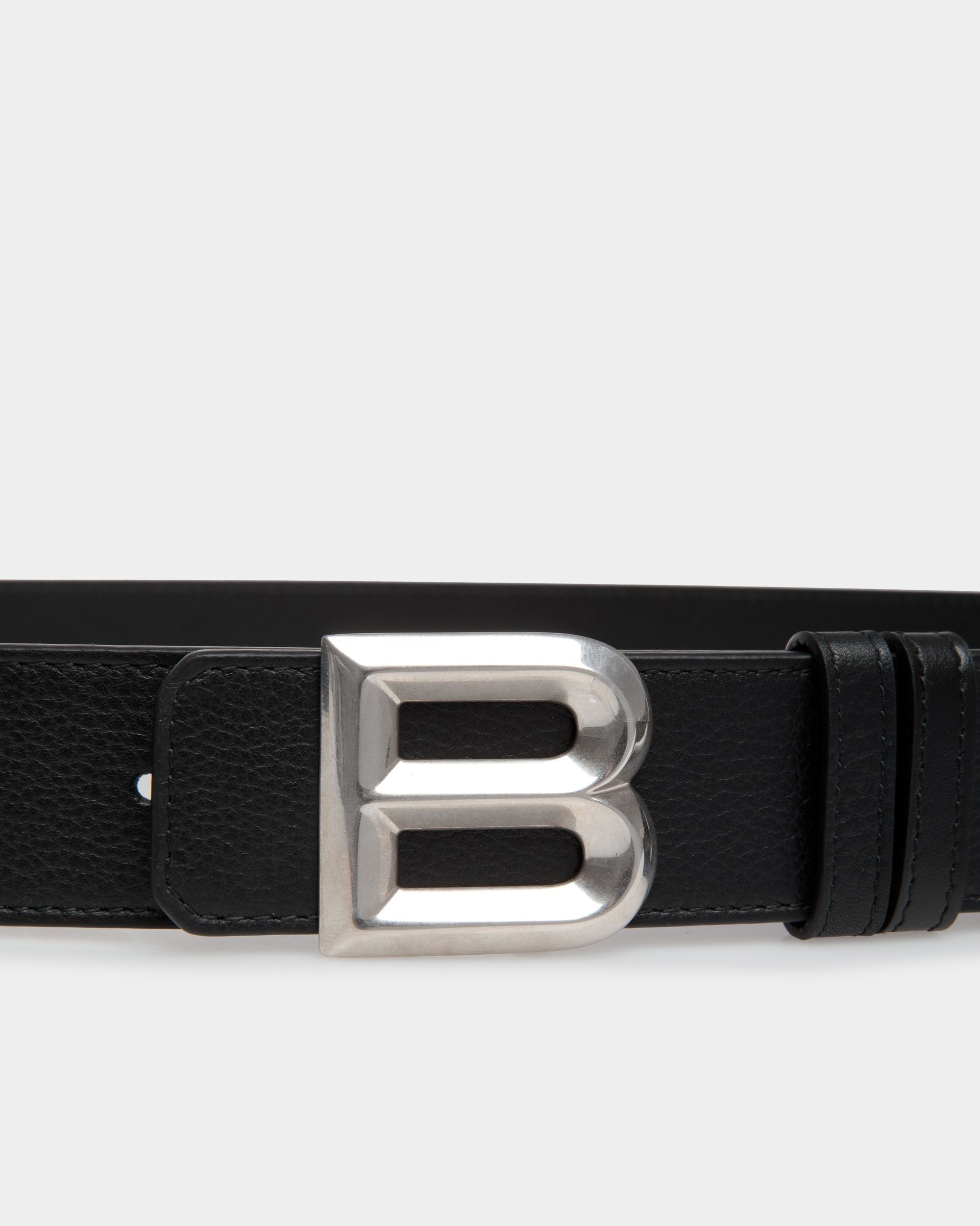 This statement belt sees a silver-tone B buckle. and is crafted here in black leather.