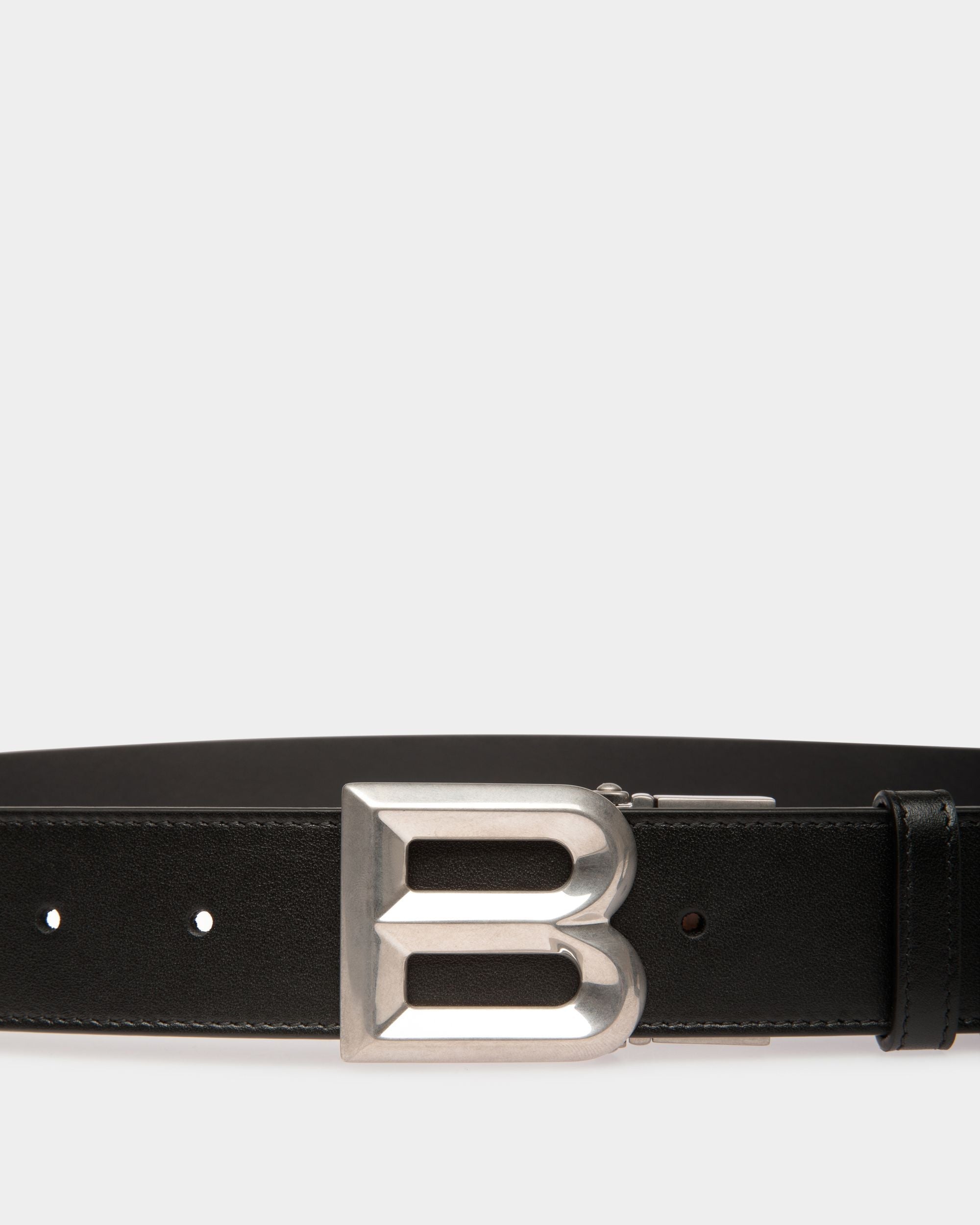 Crafted from premium black calfskin with Bally’s iconic B Bold buckle to the front. this 35 mm reversible belt offers versatility and style. With an adjustable design. it ensures a perfect fit for any occasion. making it a must-have accessory for the modern gentleman.