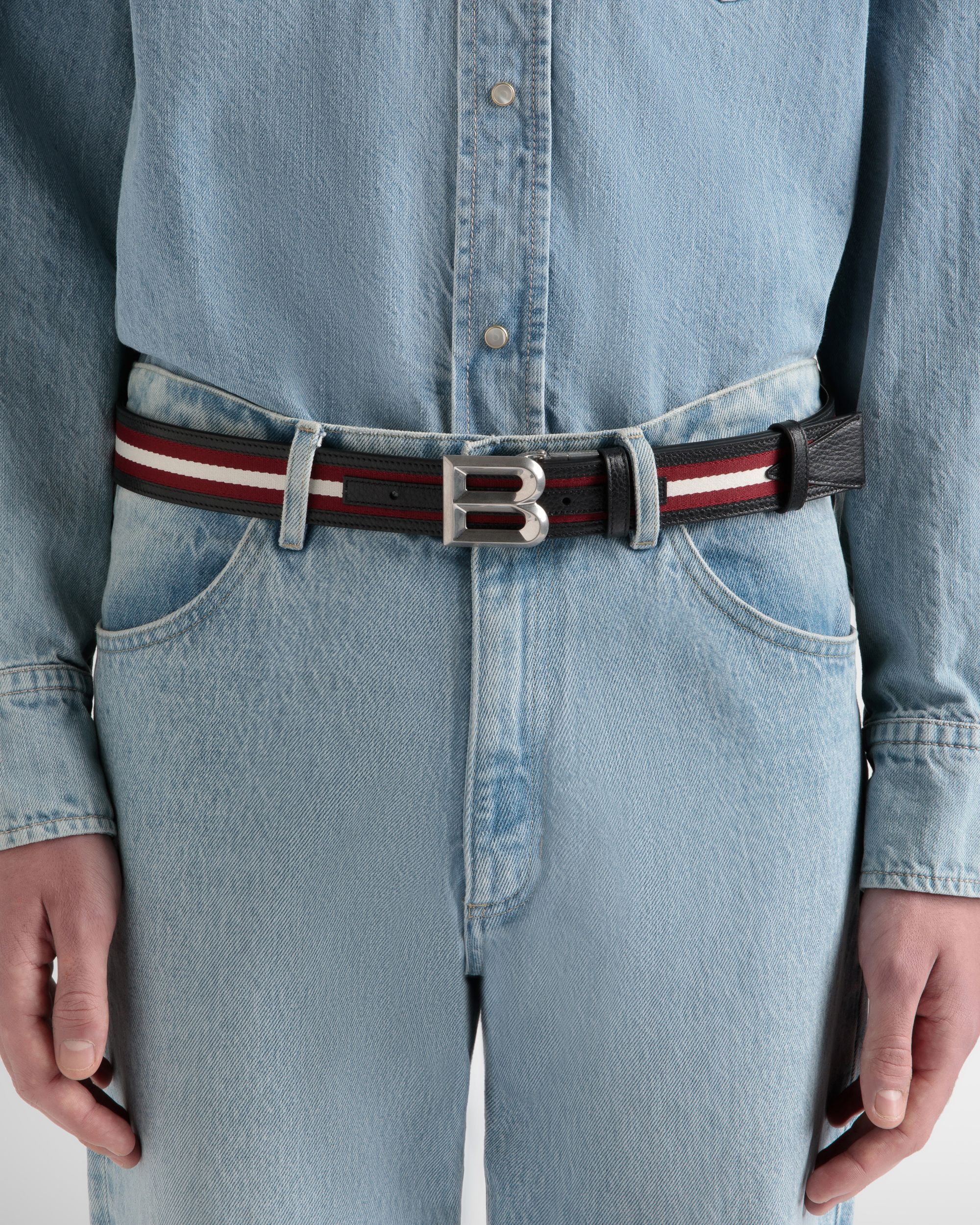 B Bold 35mm Reversible Belt in Red White Red Fabric And Leather