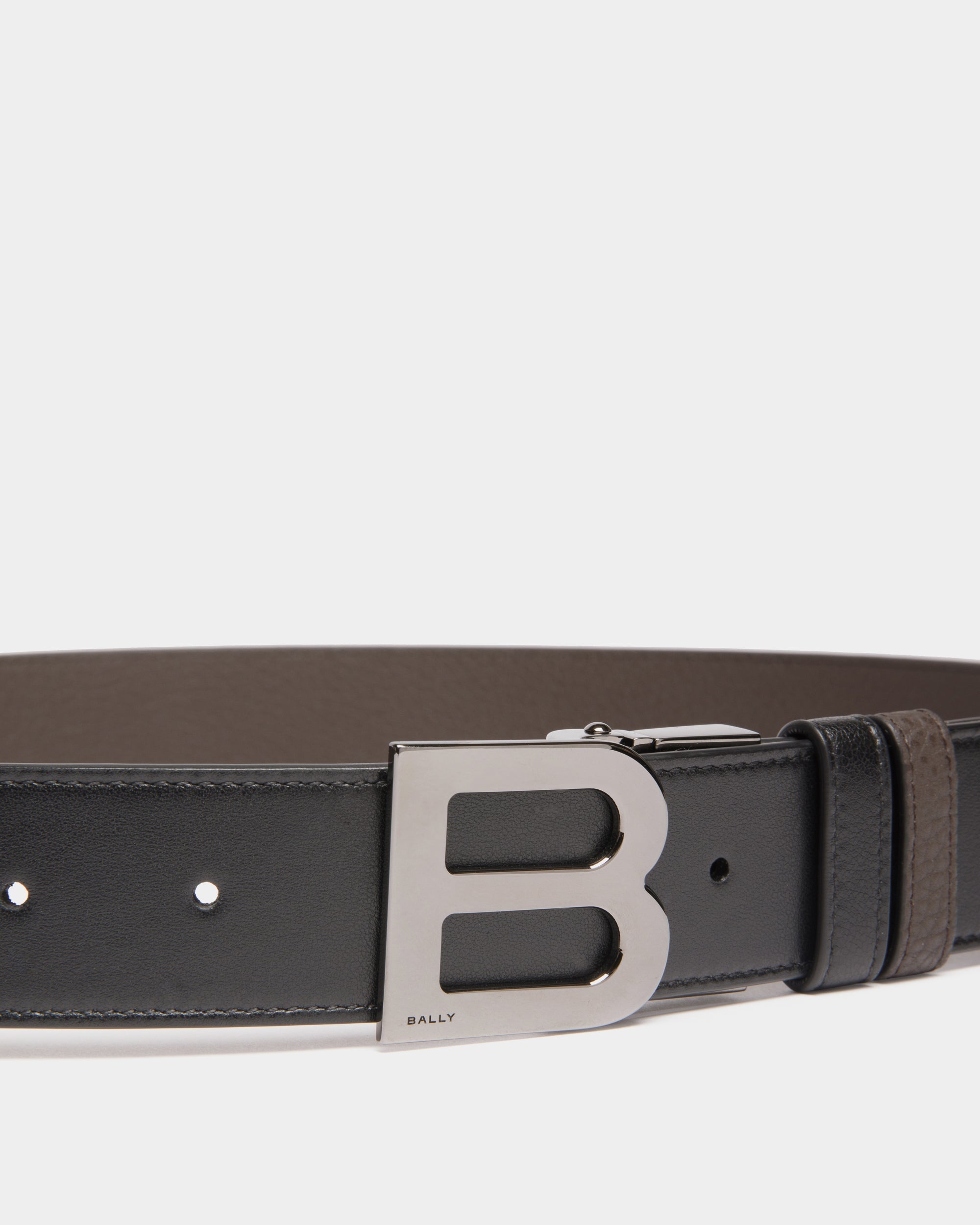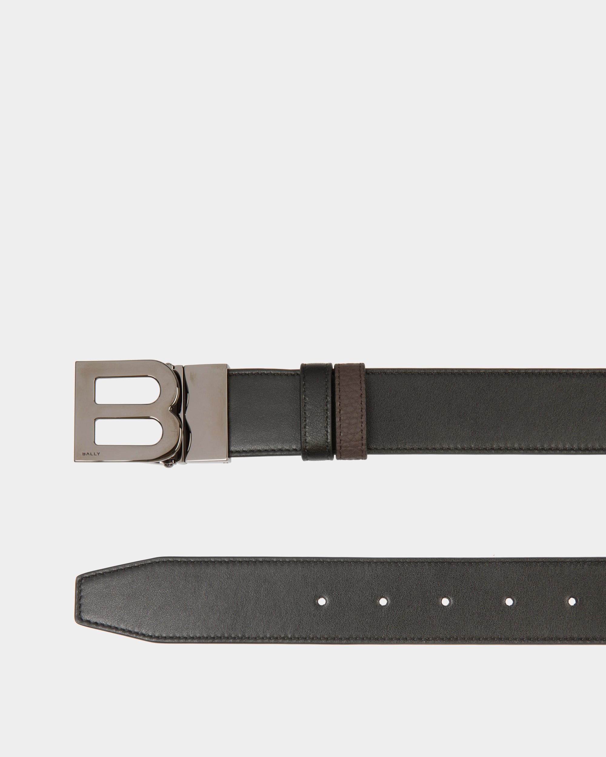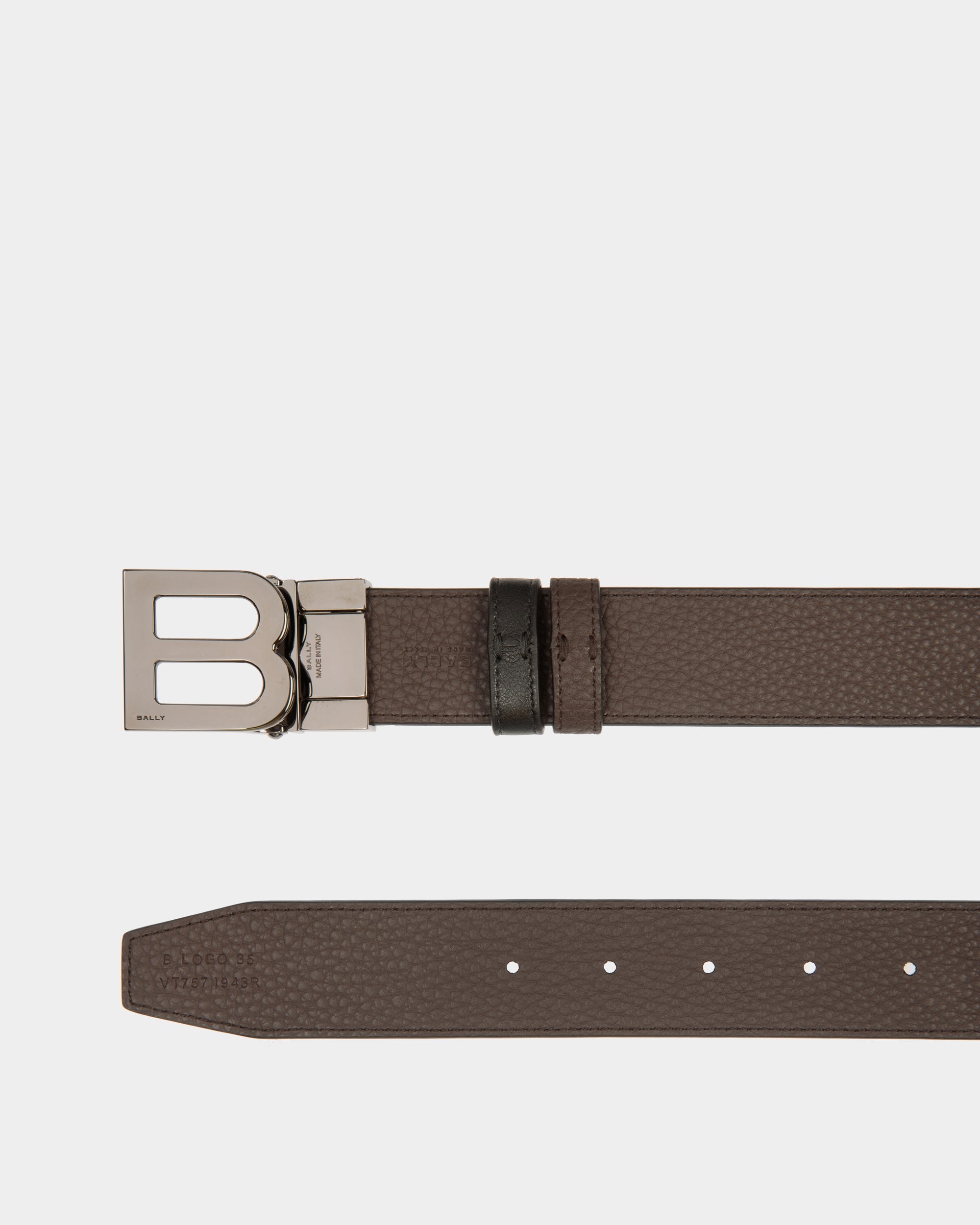 The iconic Bally buckle has been given a new interpretation. seen at the front of this B Logo 35 mm belt in smooth black leather and grained brown leather. Its adjustable and reversible design offers multiple styling options.