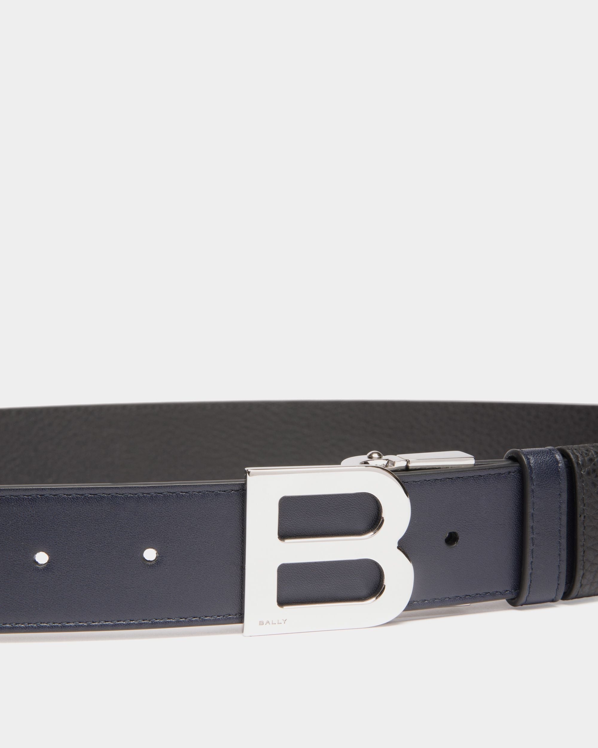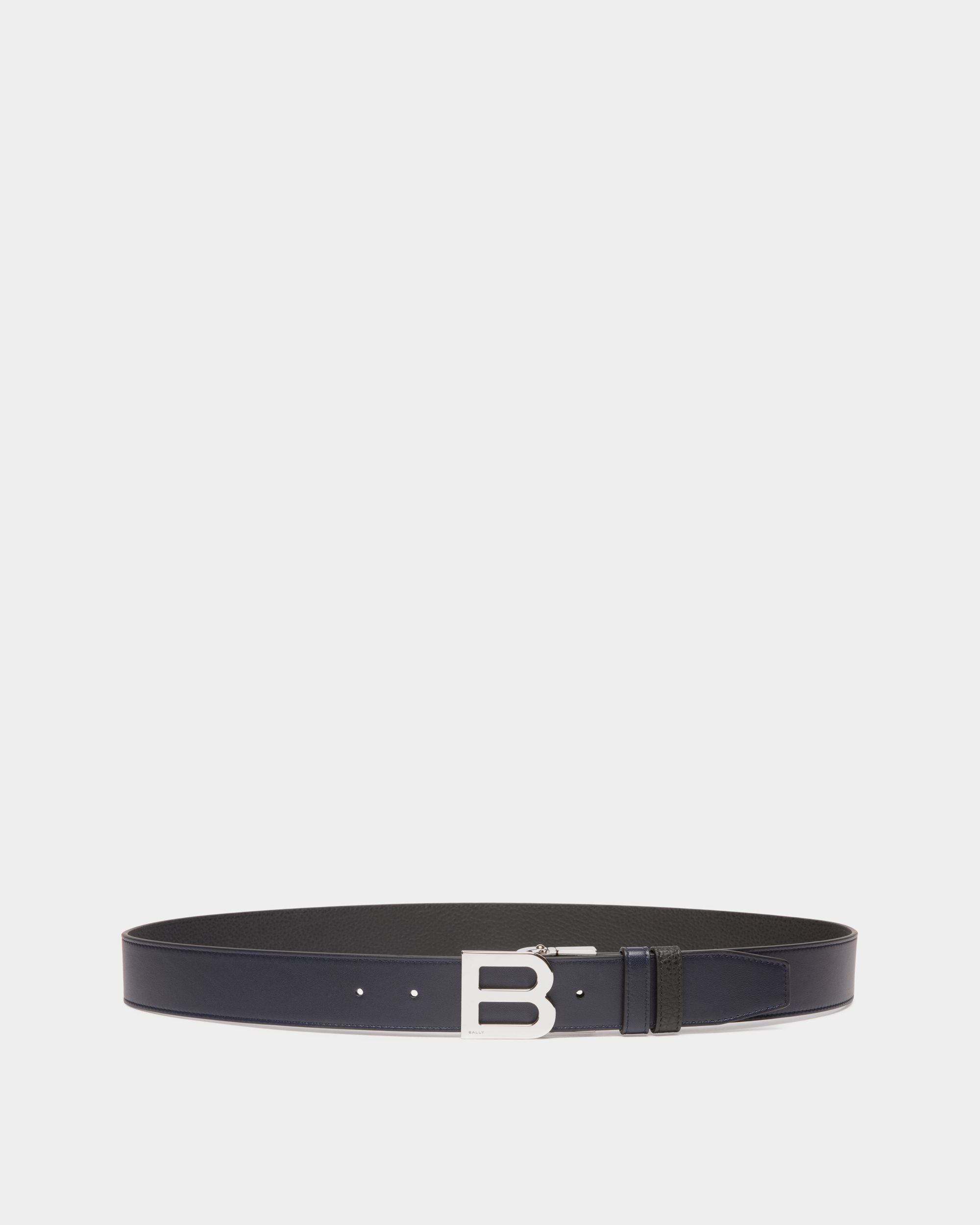 B Logo 35mm Reversible And Adjustable Belt in Navy Blue And Black Leather