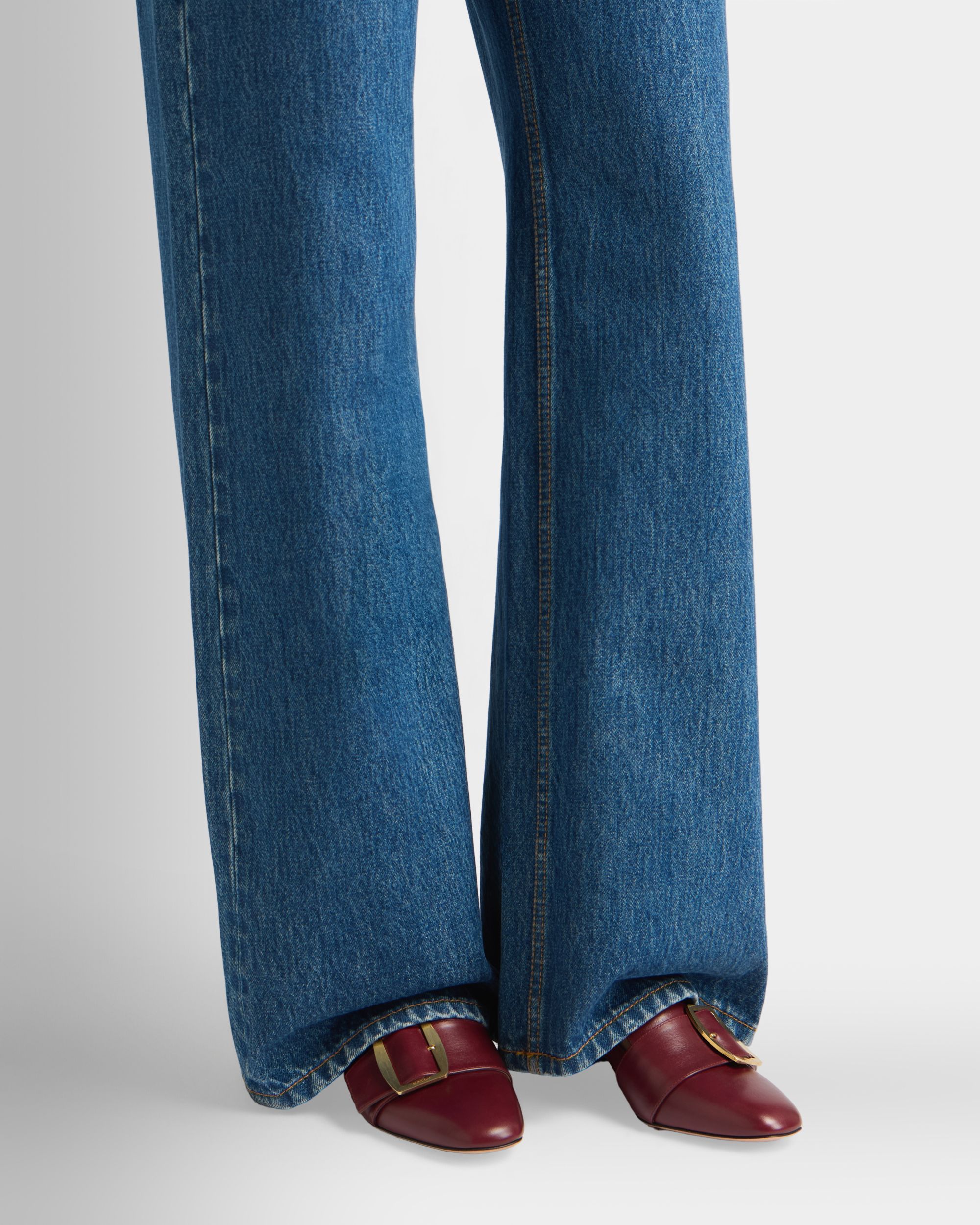 This Bally Boucle pump in Andorra leather is characterized by the large buckle at the front. a reinterpretation of an iconic Bally detail from the 1920s. To the back. the heel folds down for use as a mule.