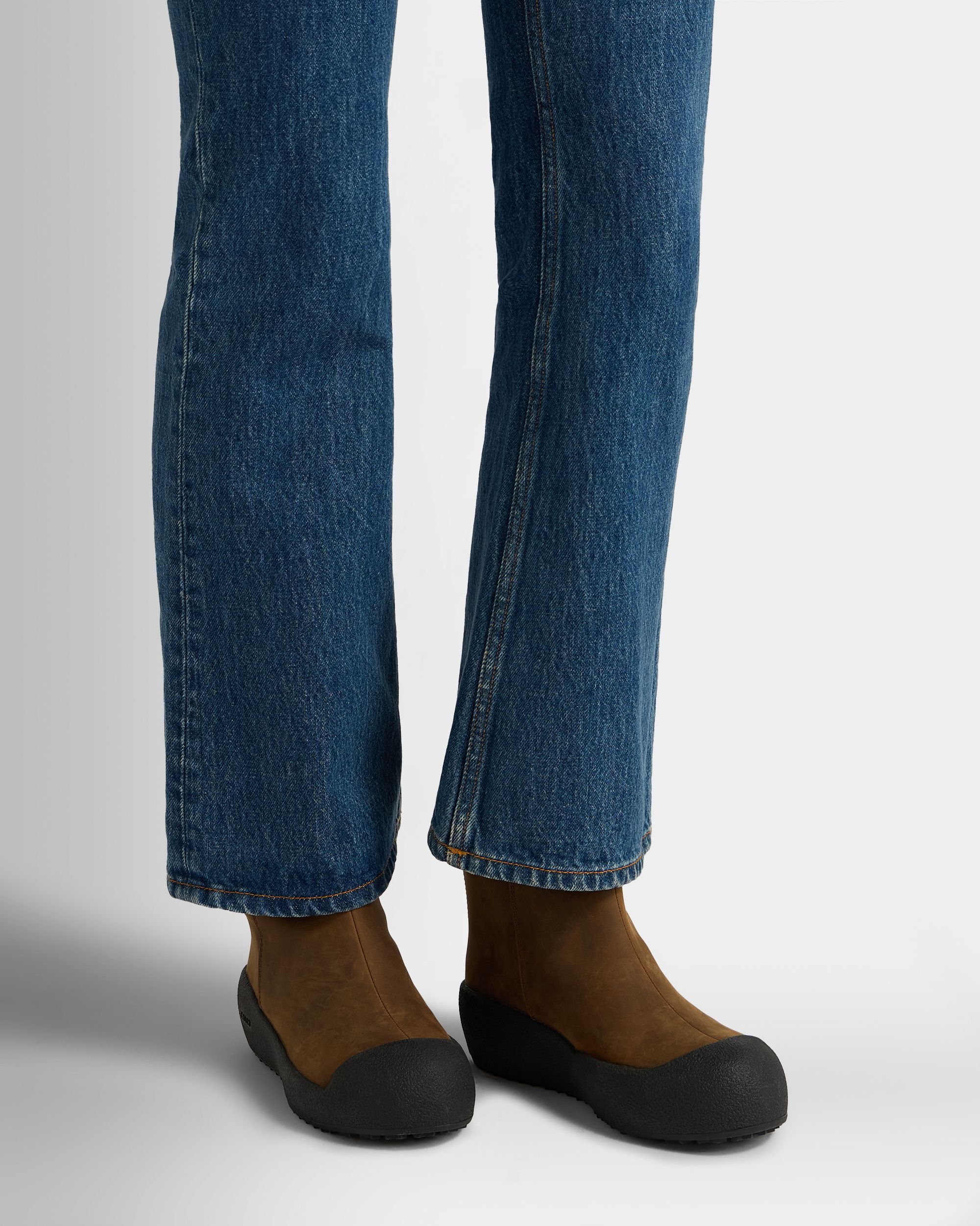This Bally Curling bootie is designed for all-terrain practicality. with warm fur lining and an insulated five-layer no-slip sole. The zipper at the back of the brown nubuck upper ensures easy on and off.