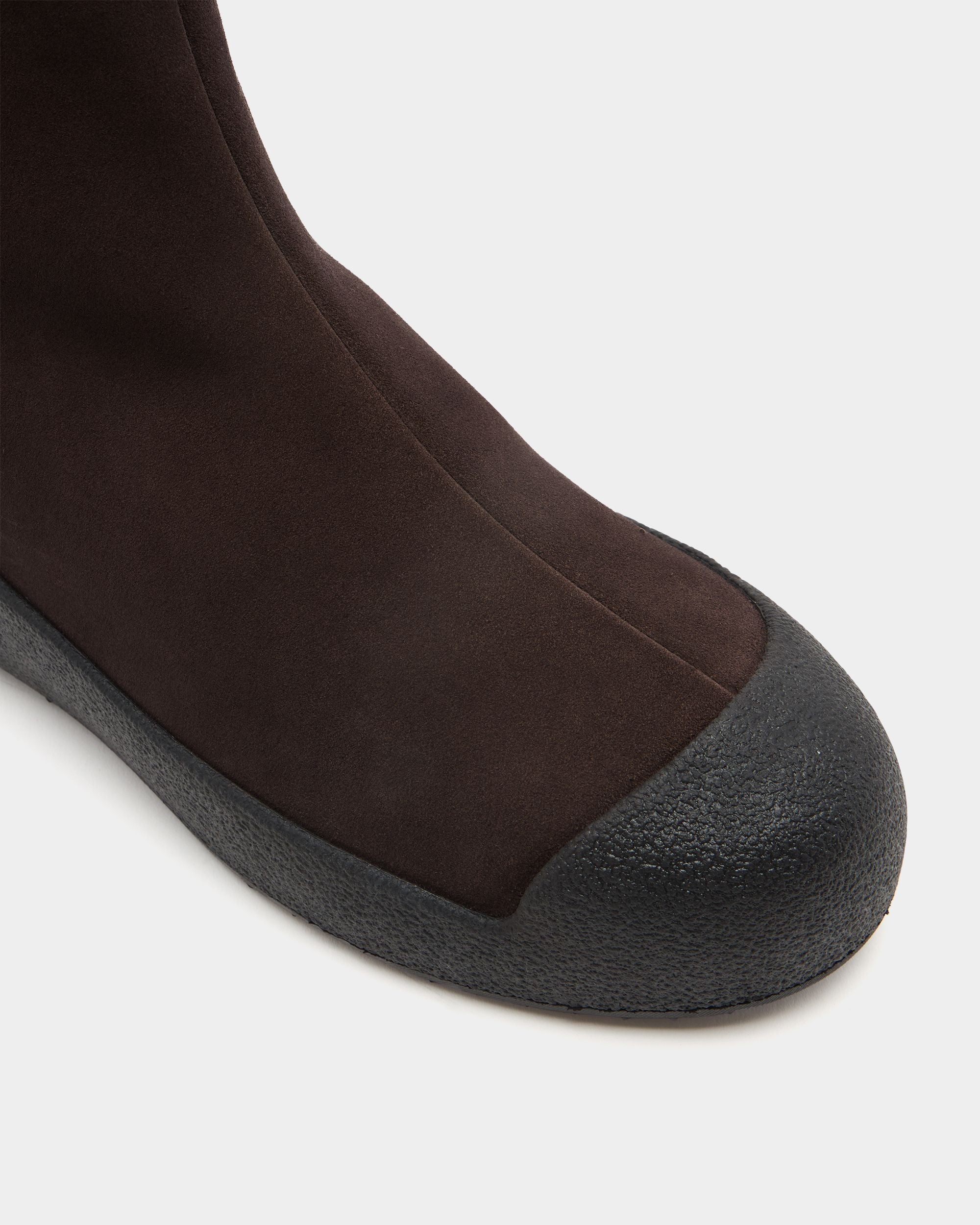 Bally Curling Bootie in Ebano Suede