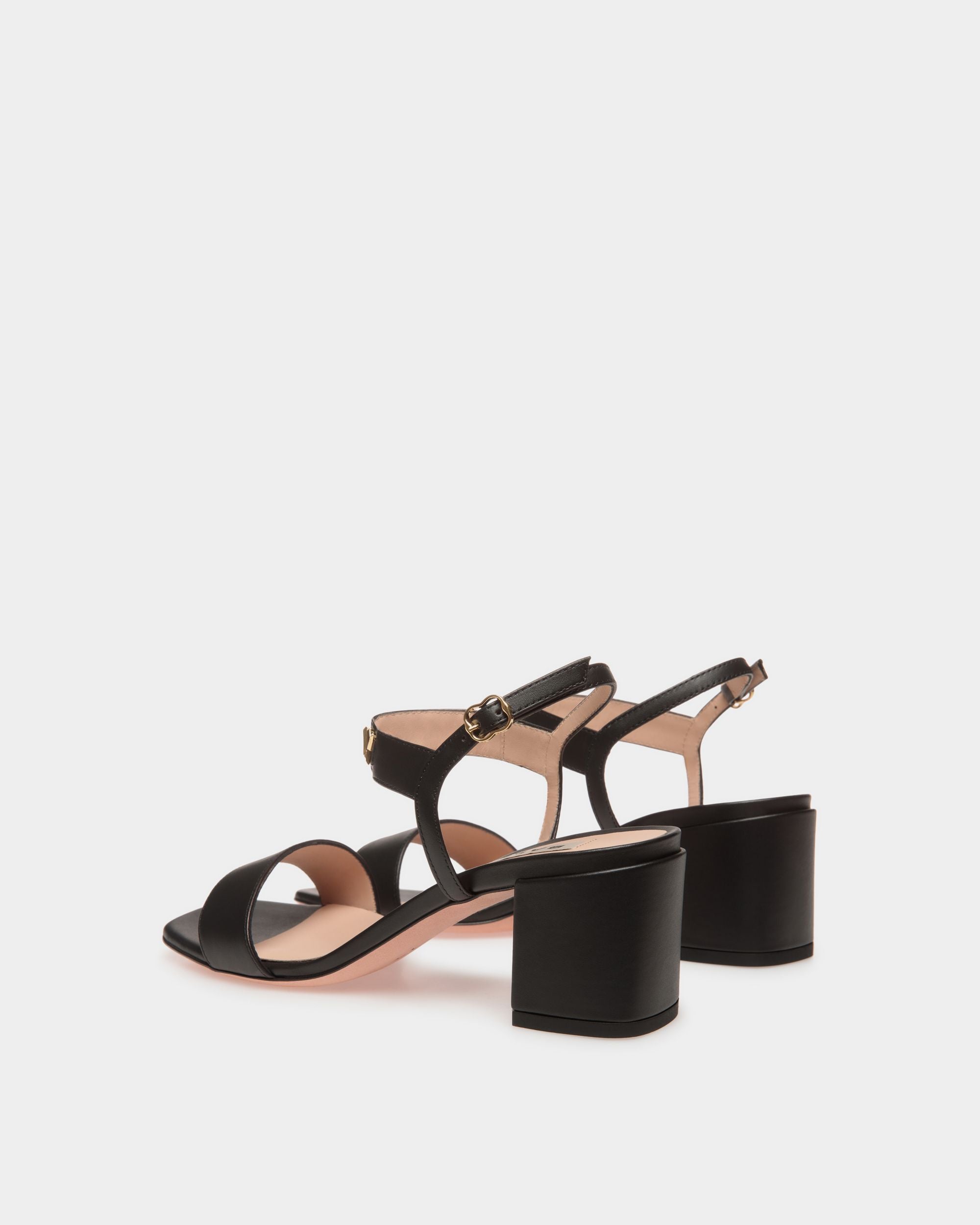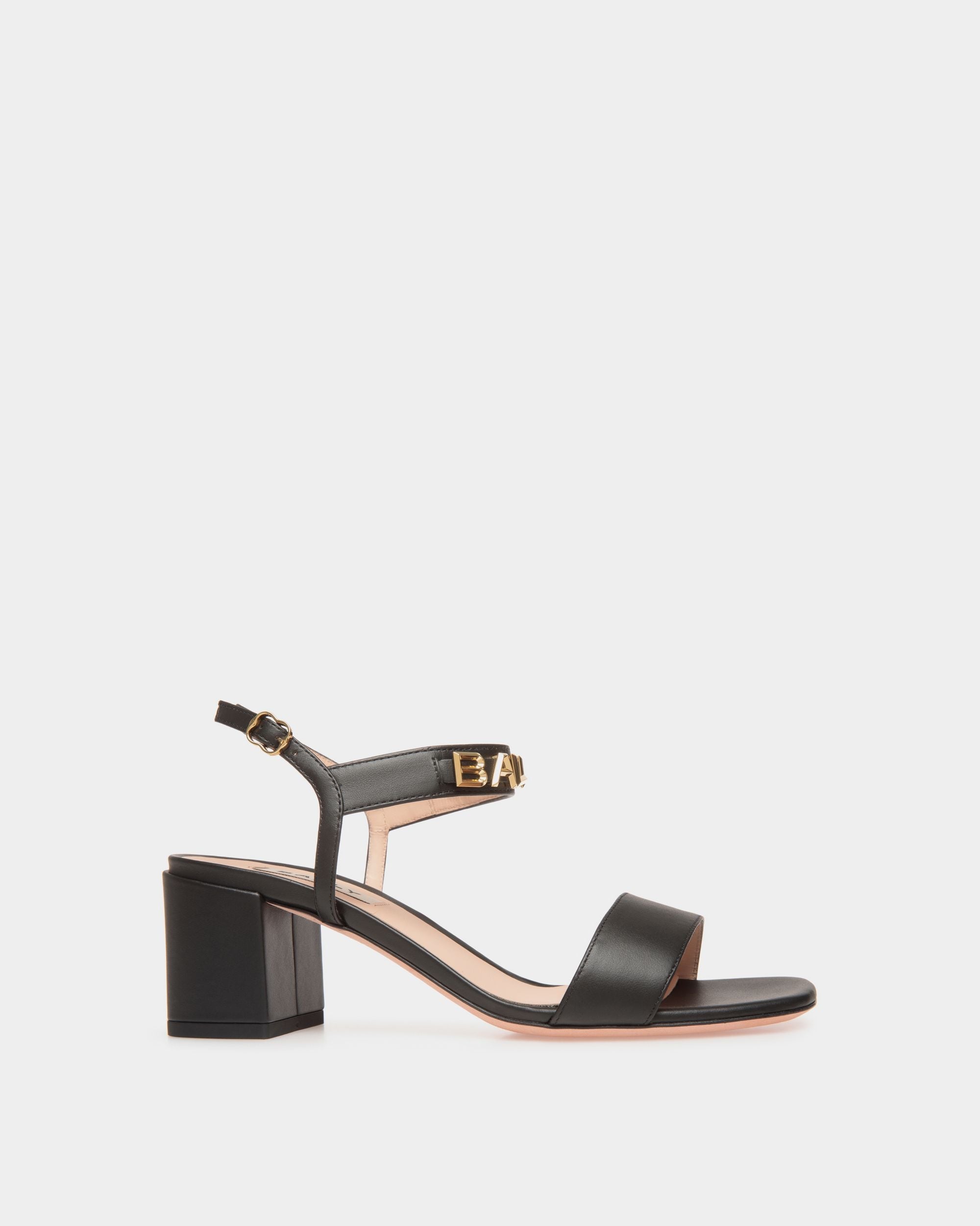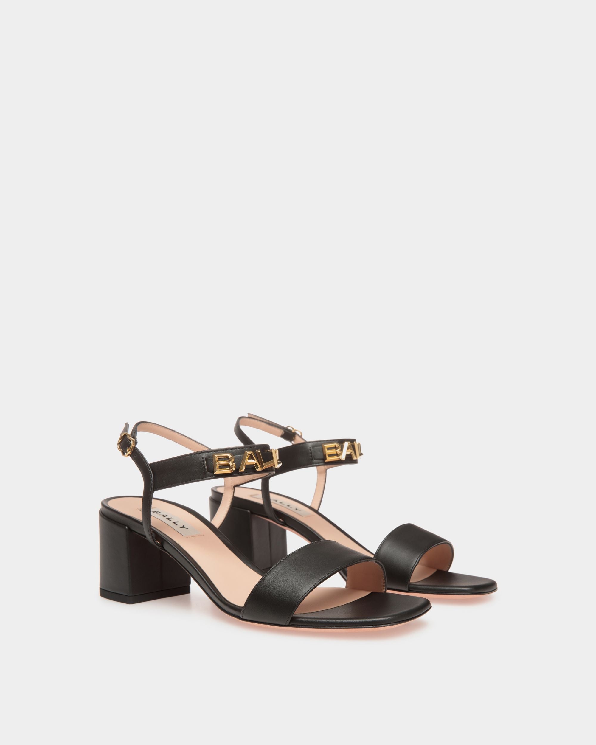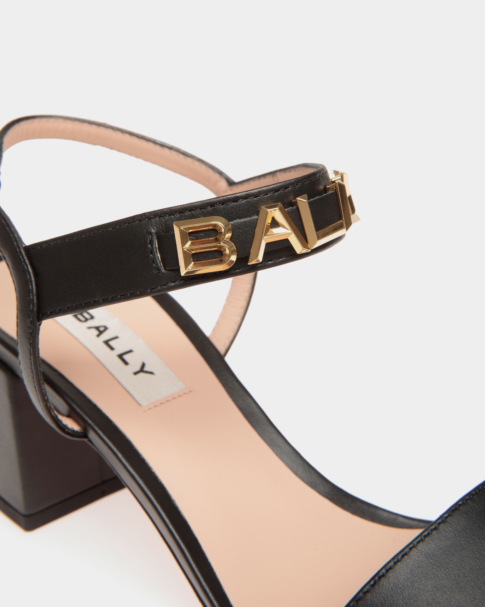 Crafted in premium black calfskin set onto a leather sole. the Bally Spell Heeled Sandal exudes elegance and sophistication. making it a perfect choice for those seeking a luxurious yet timeless footwear option. Gold-tone Bally Spell hardware elevates the look.