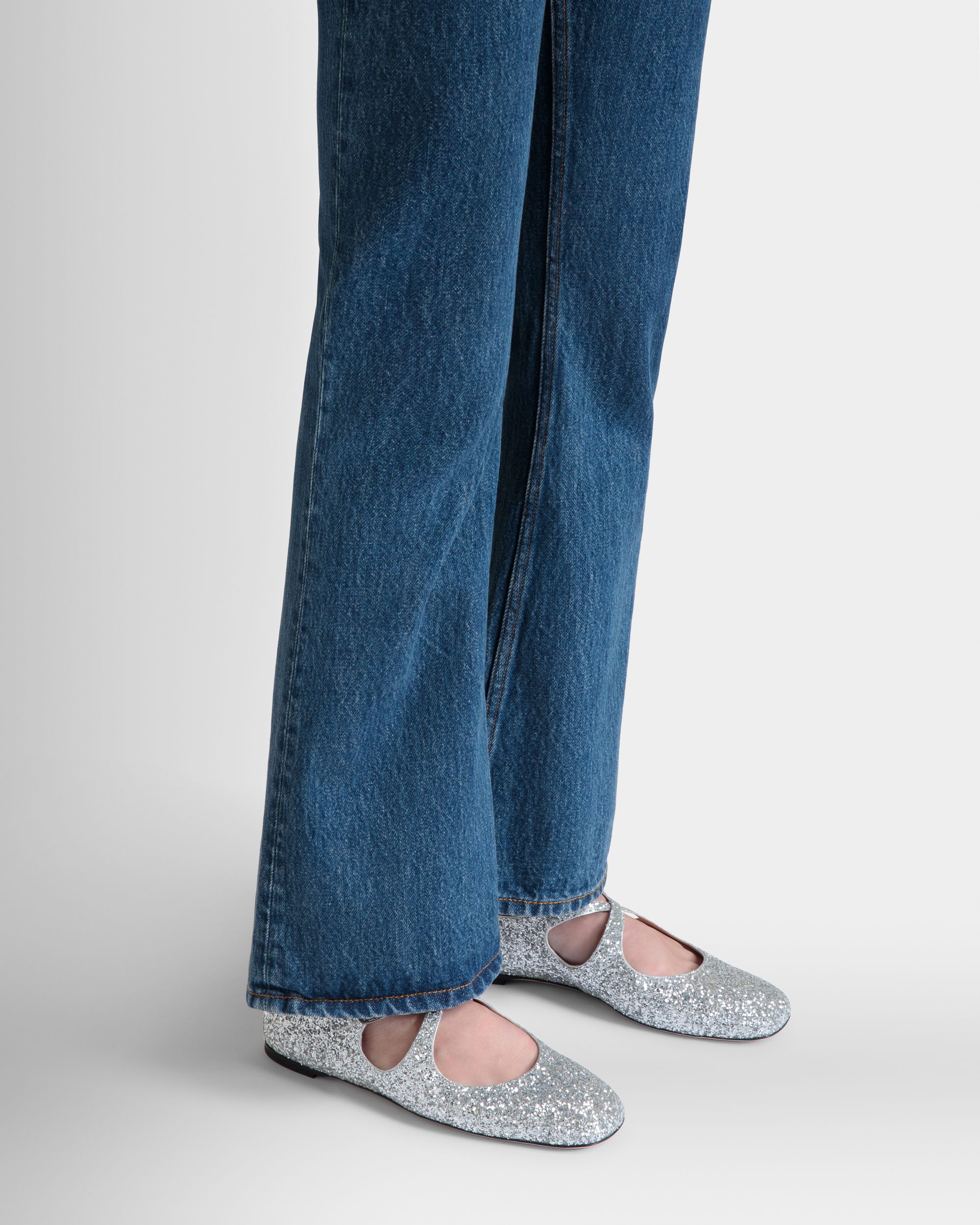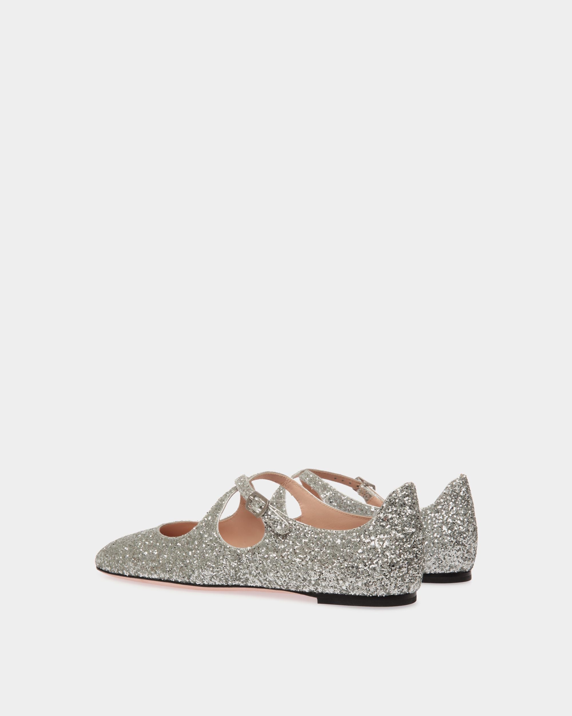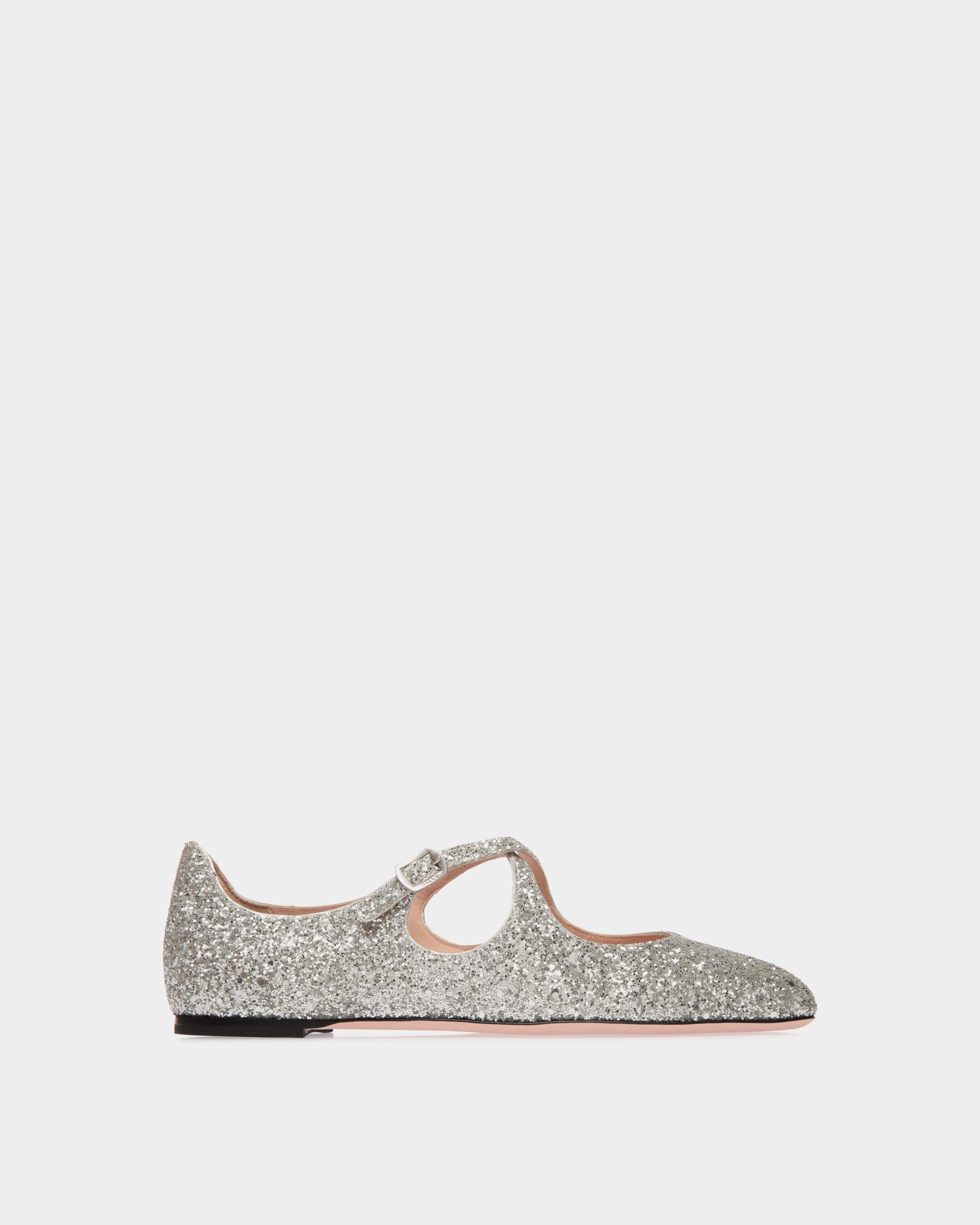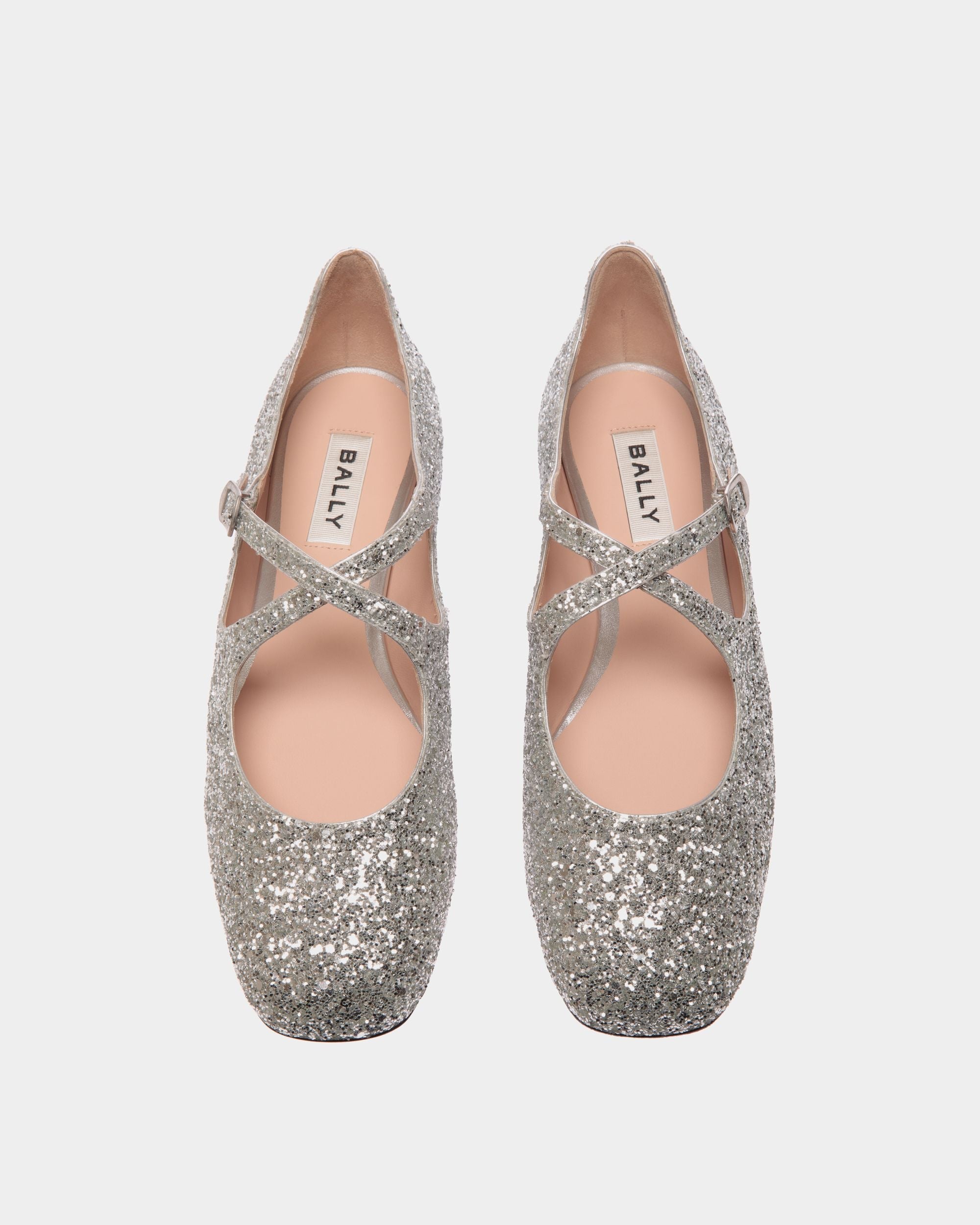Crafted with precision. the Mary Jane ballerina with criss-cross straps is reinvented with a glamorous touch of silver glitter.