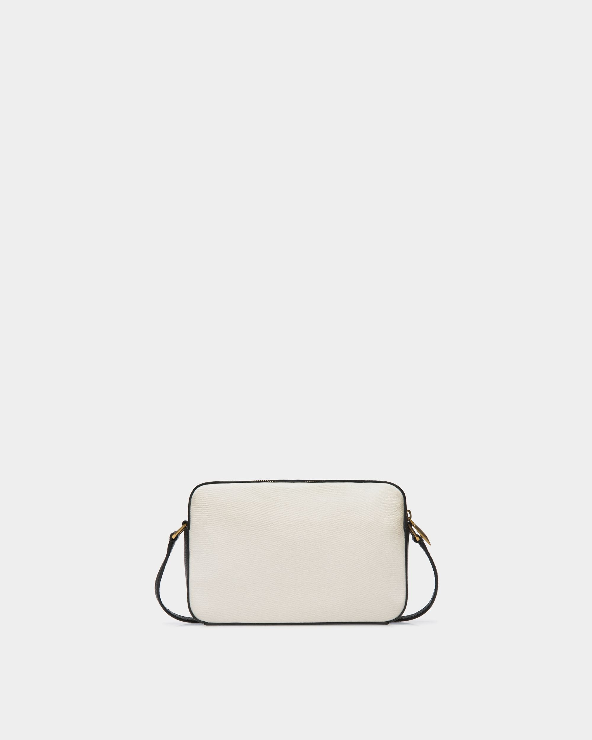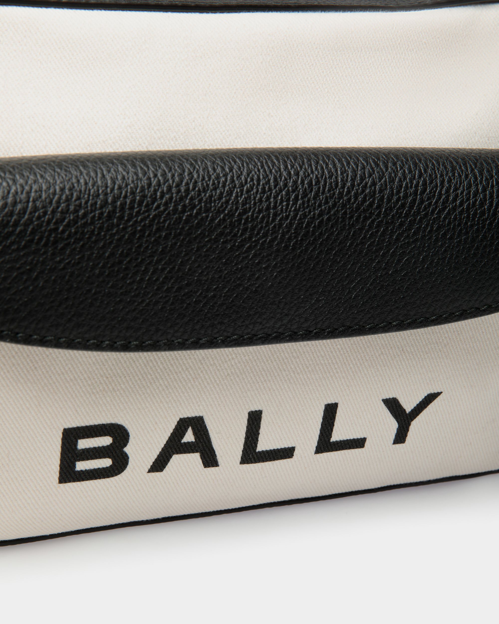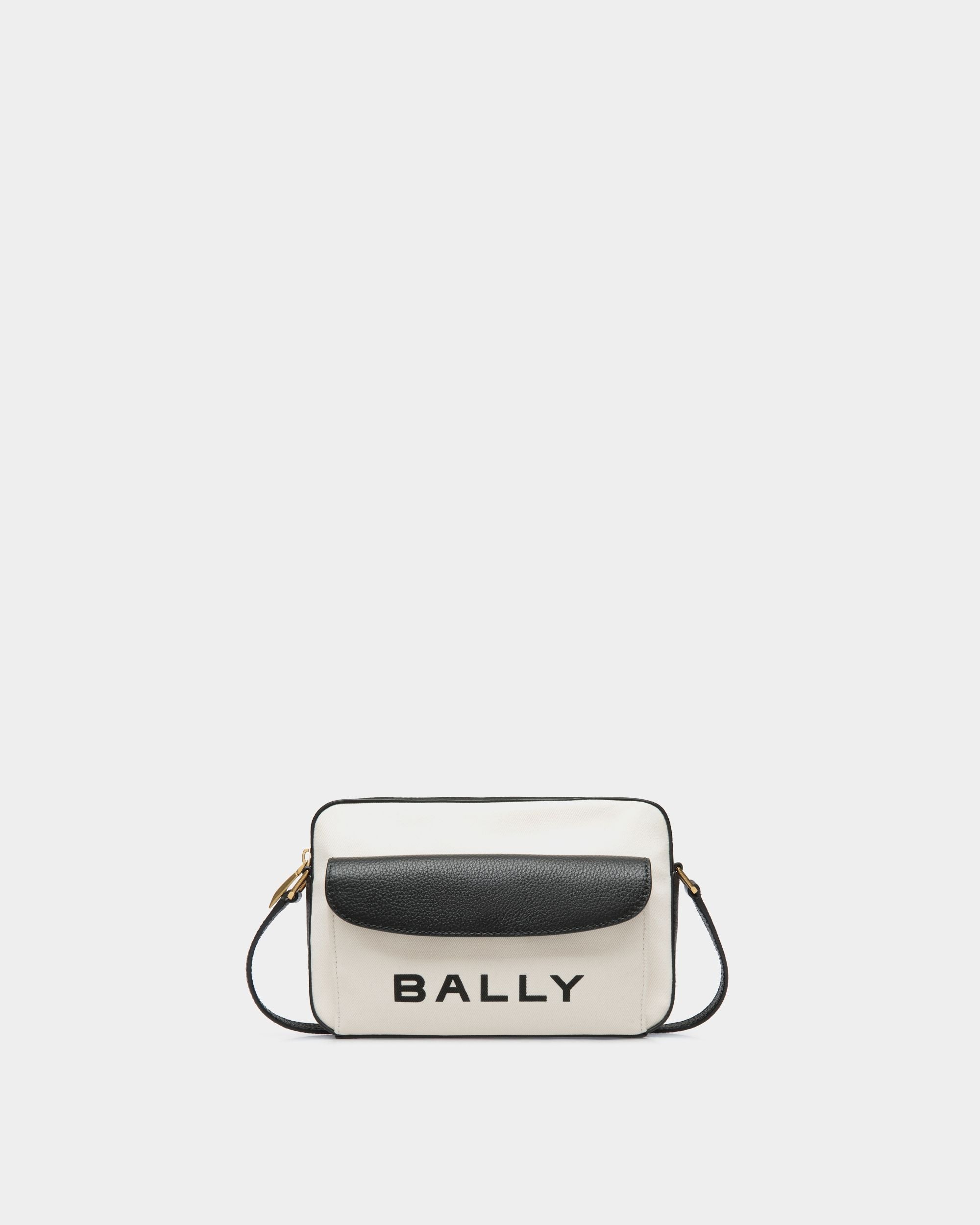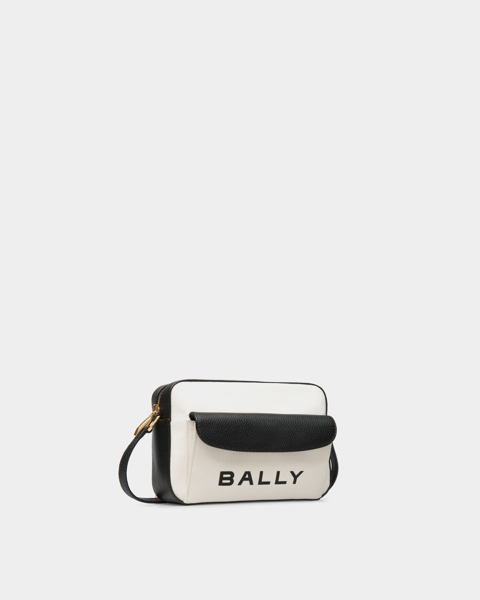 Bar Crossbody Bag In White Fabric And Black Leather