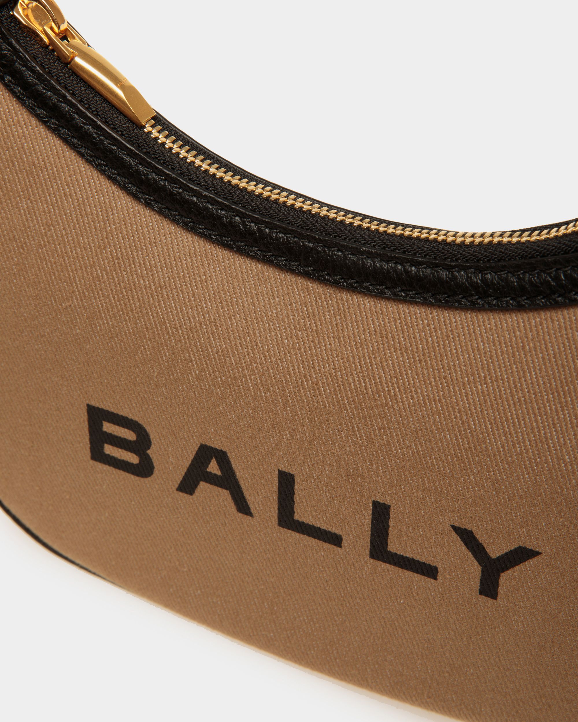 The Bar crossbody bag in sand-hue canvas and black leather is a versatile accessory with a modern twist. Crafted with attention to detail. it features a compact size and adjustable strap for effortless style on the go.