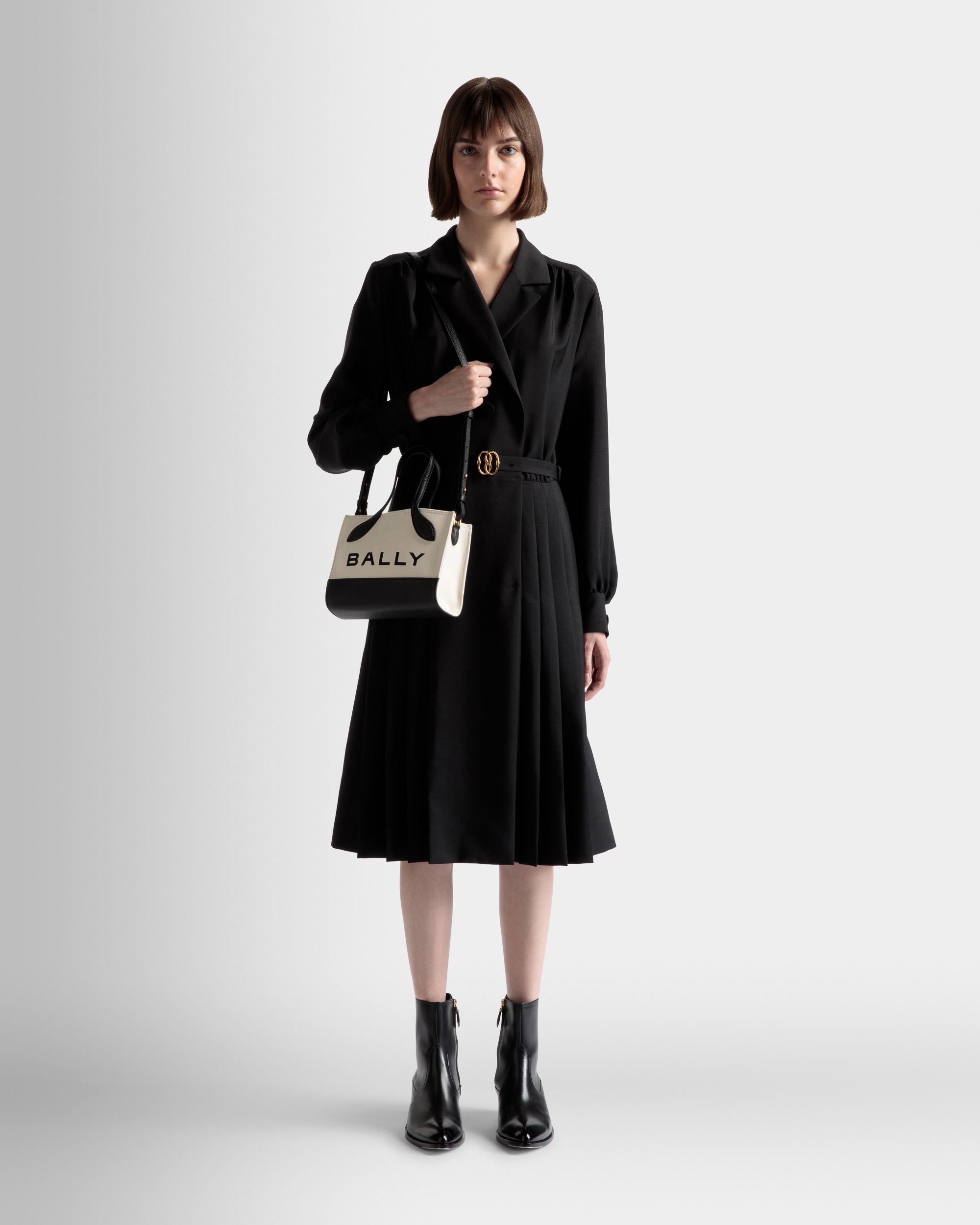 Seen here in a natural hue. the Bar Keep On Minibag features top handles and a shoulder strap for your choice of transportation. It’s enriched with a black Bally logo on the front. as well as a bold black base.