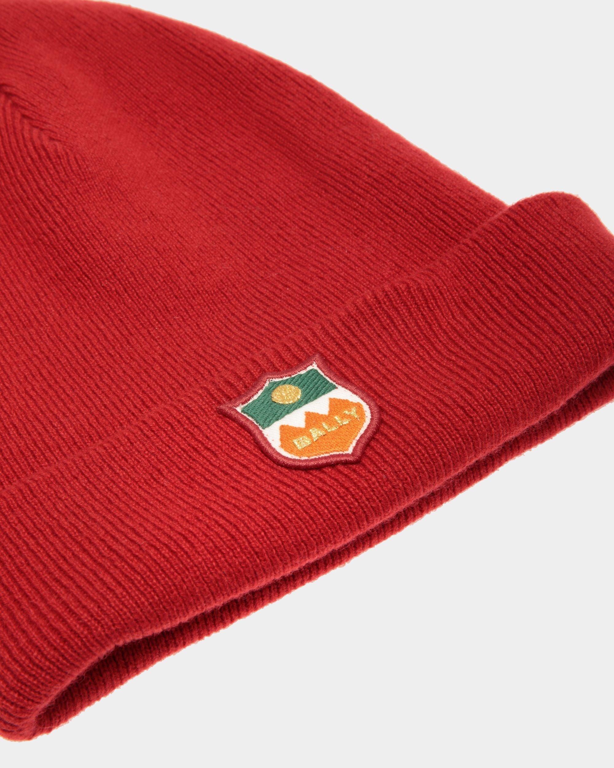 Stay cozy and stylish with this beanie featuring a coat-of-arms detail. Made from luxurious. soft cashmere. its classic design has been updated with a vibrant red hue for an interesting pop of color.
