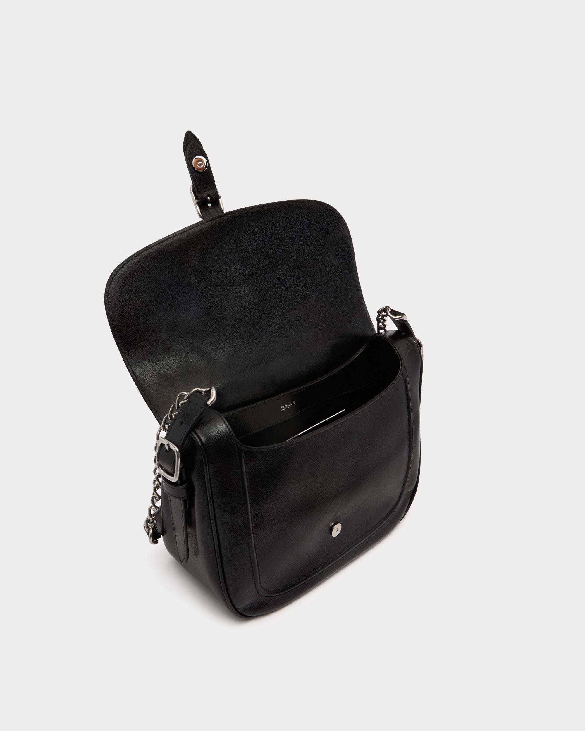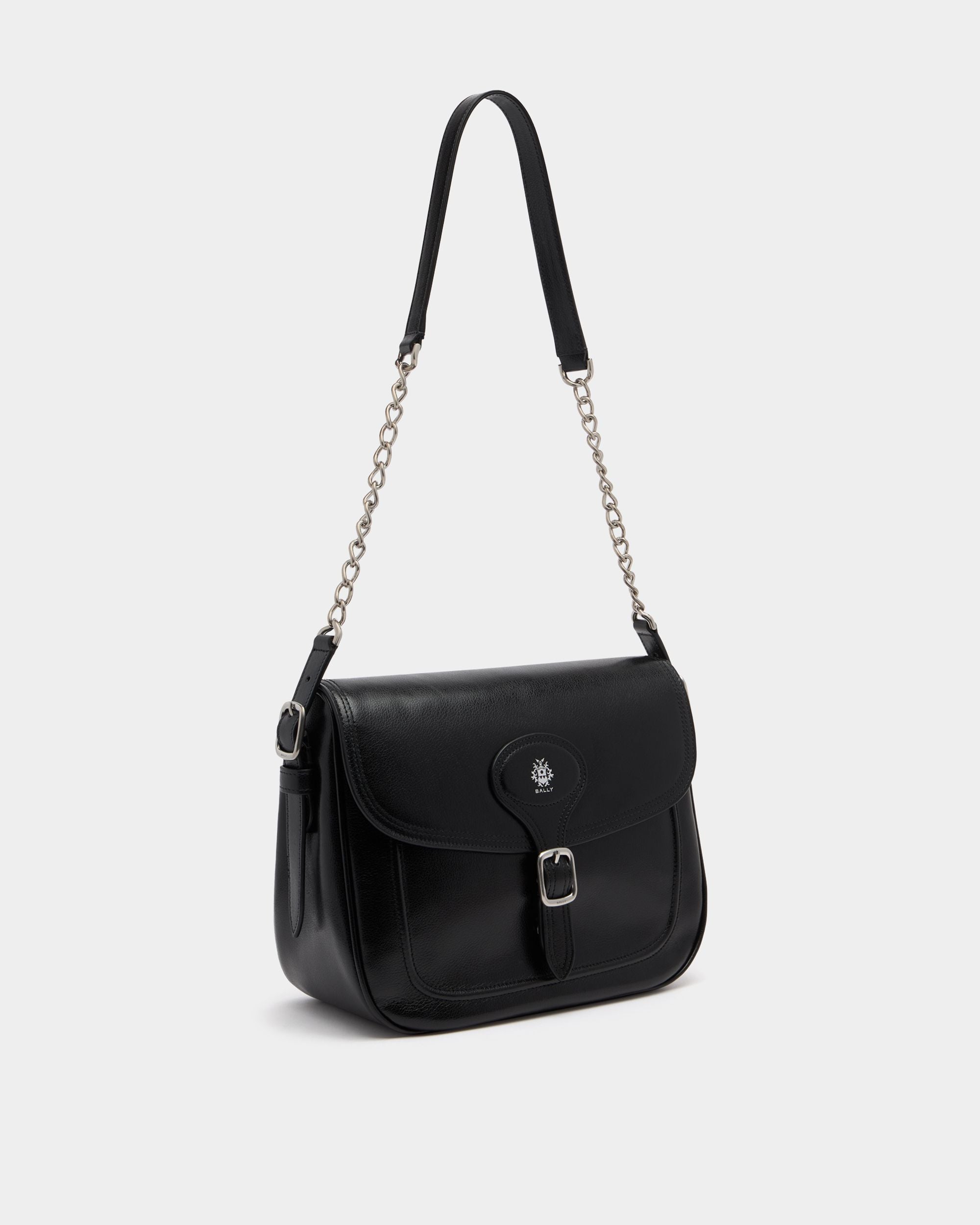 This Beckett crossbody bag has a softly structured silhouette in black calfskin with a natural fine-grain finish. The strap with a section in palladium-hue metal chain adds a chic note.
