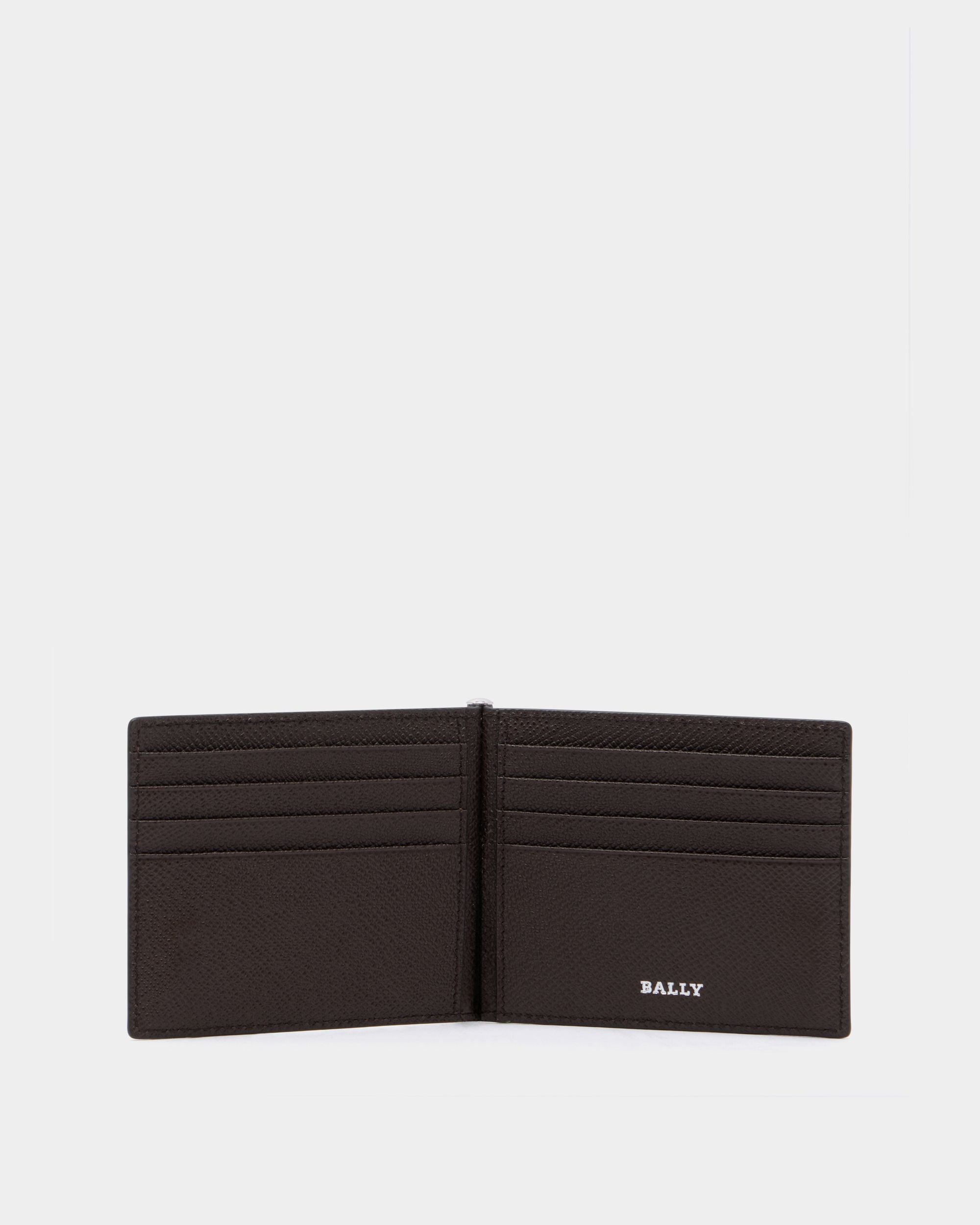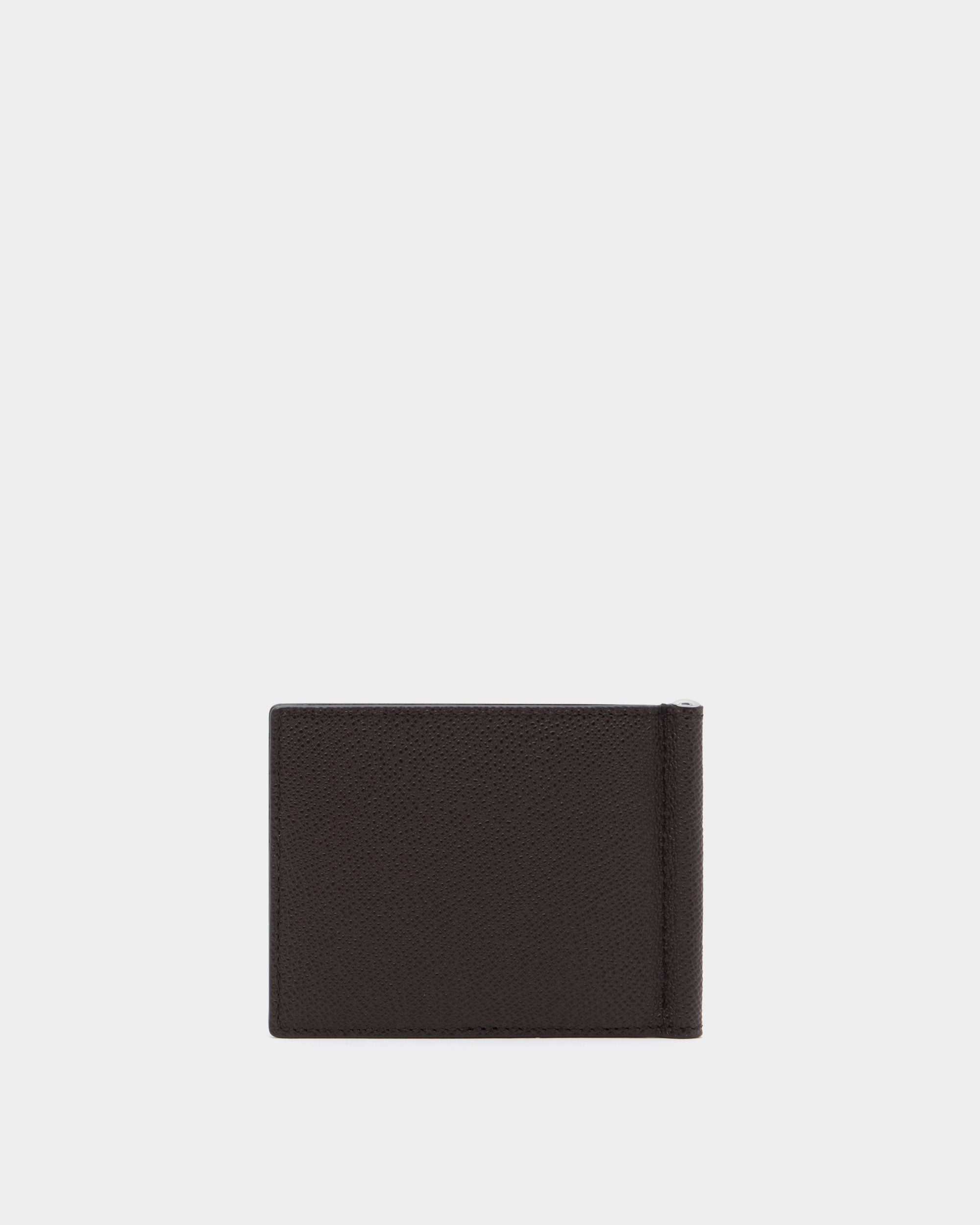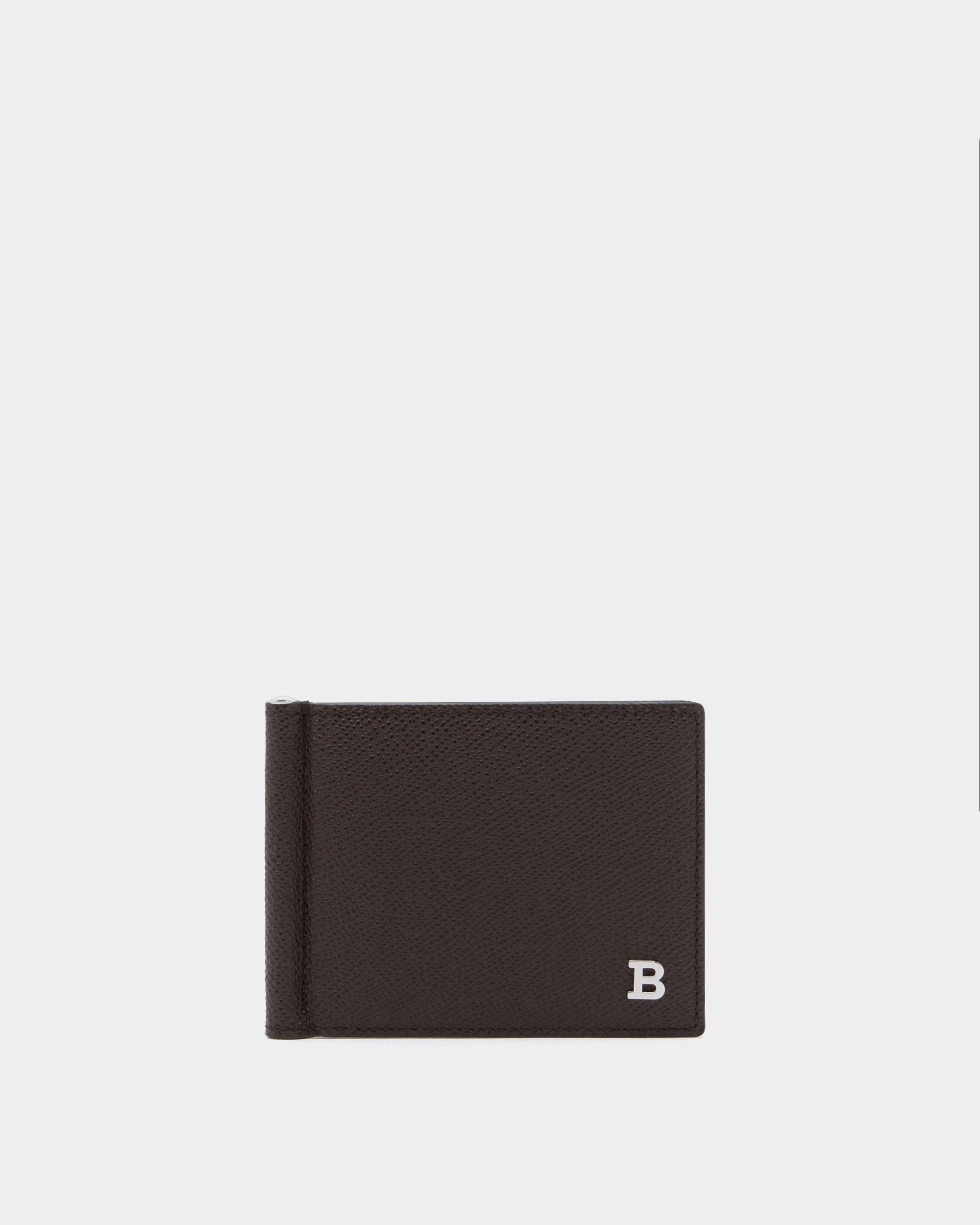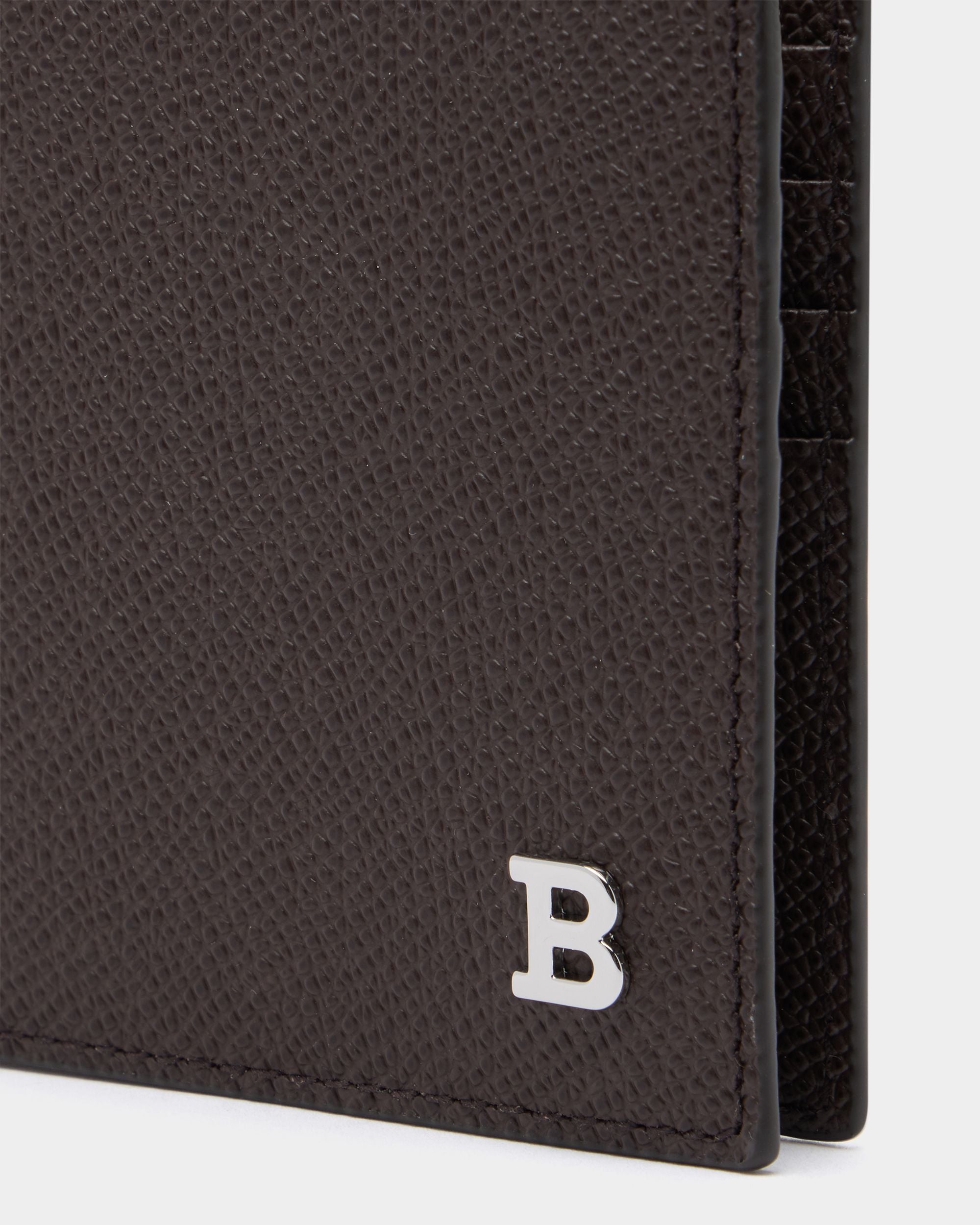 This wallet features a bifold design crafted in Coffee leather with grained embossing. A B Bold detail in metal finishes the front.