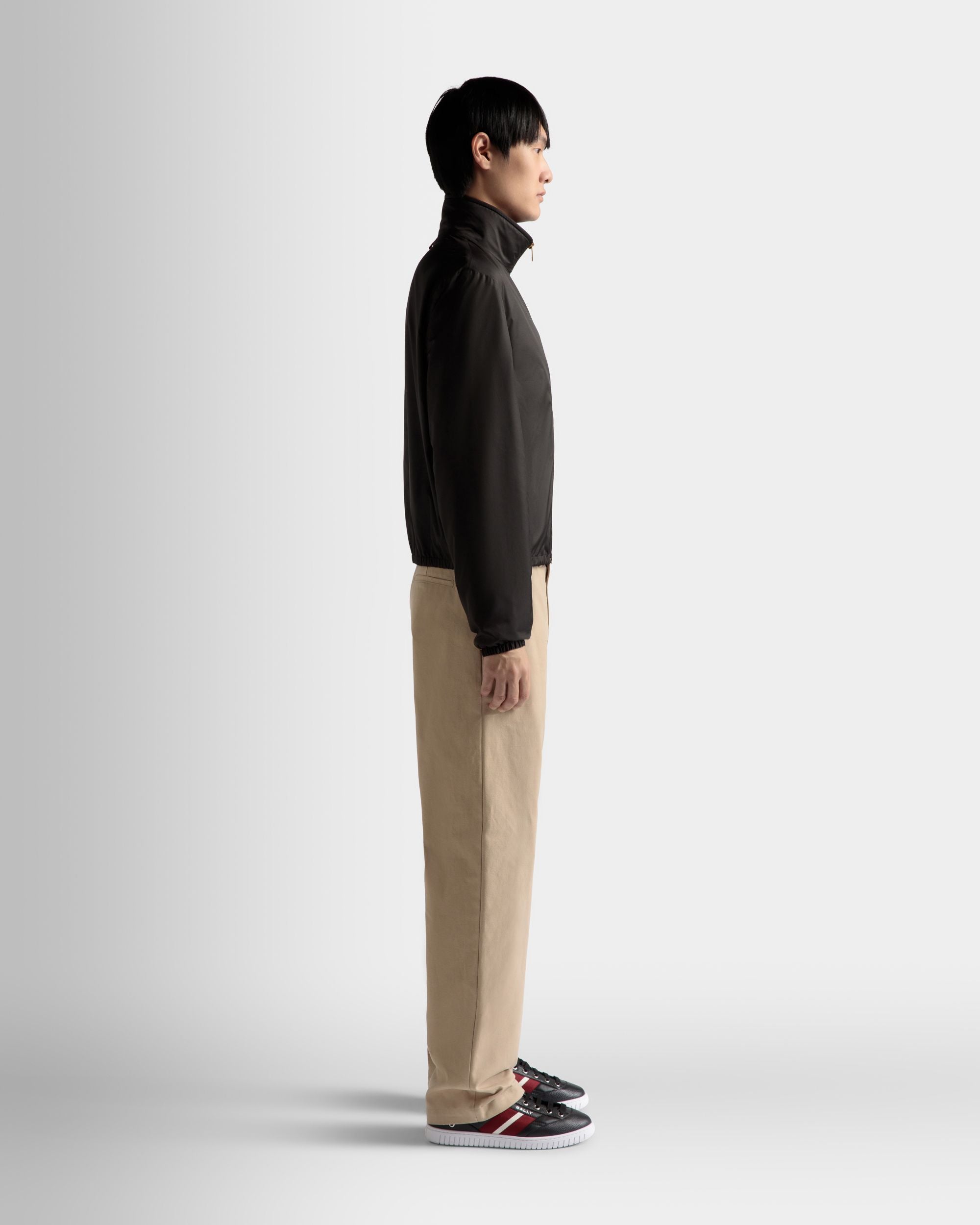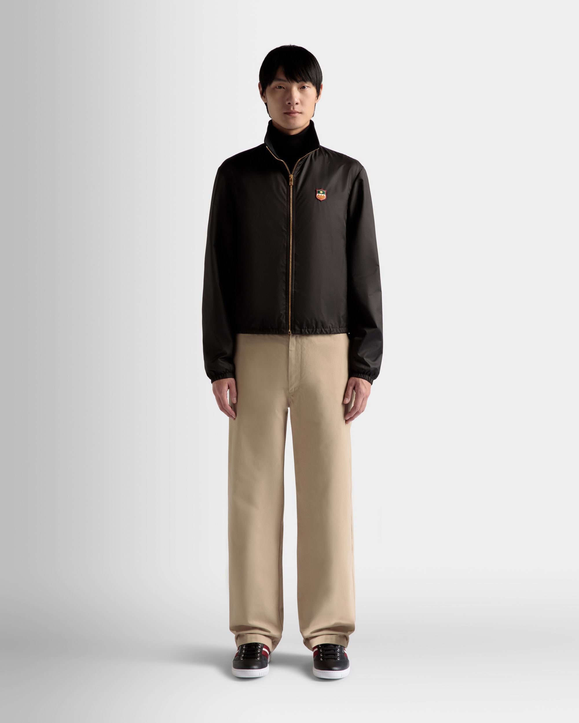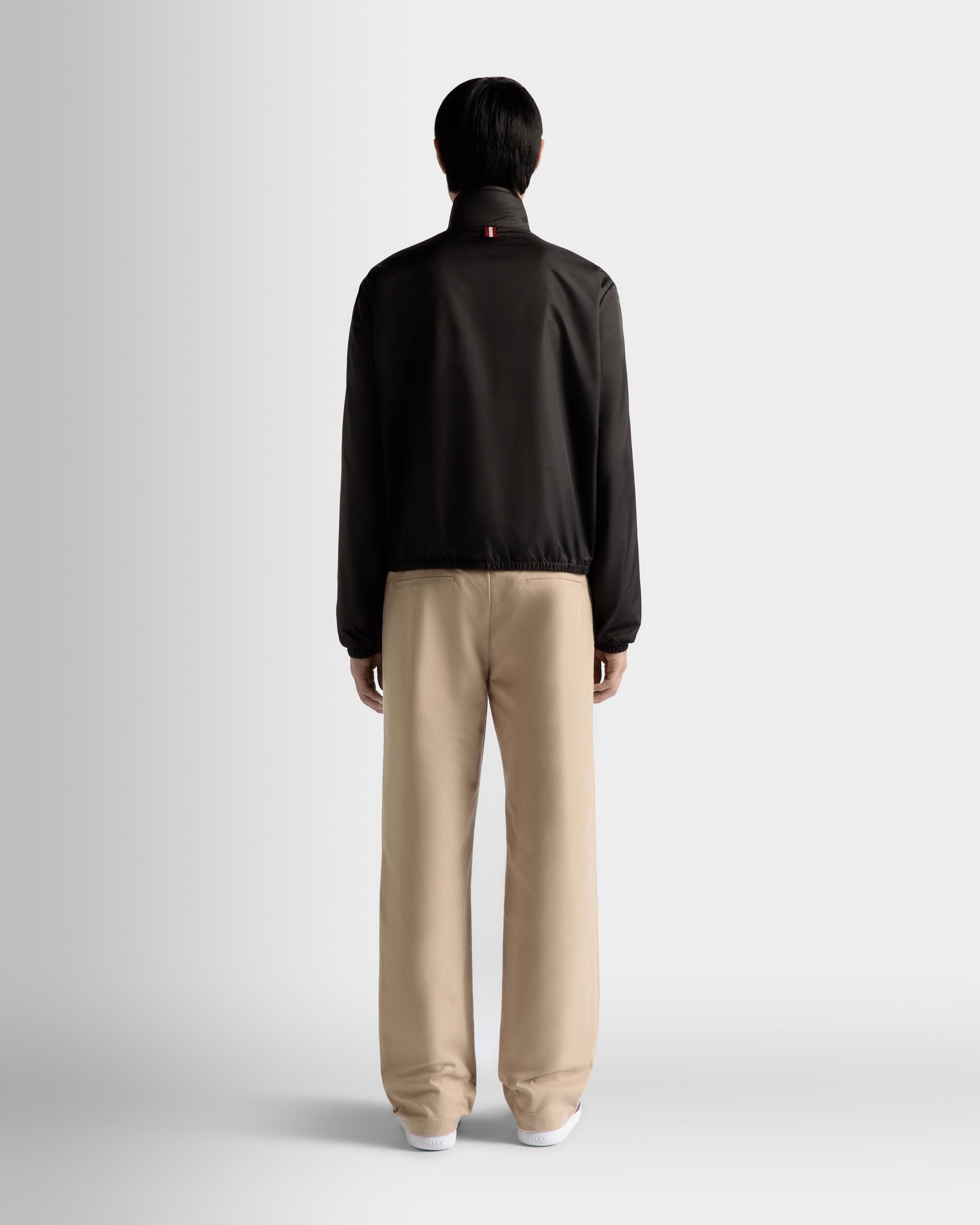 A sleek. versatile outerwear piece. this lightweight jacket is crafted from high-quality nylon fabric. Its blouson silhouette is secured by covered elastic at the cuffs and lower hem. a guarantee of warmth.