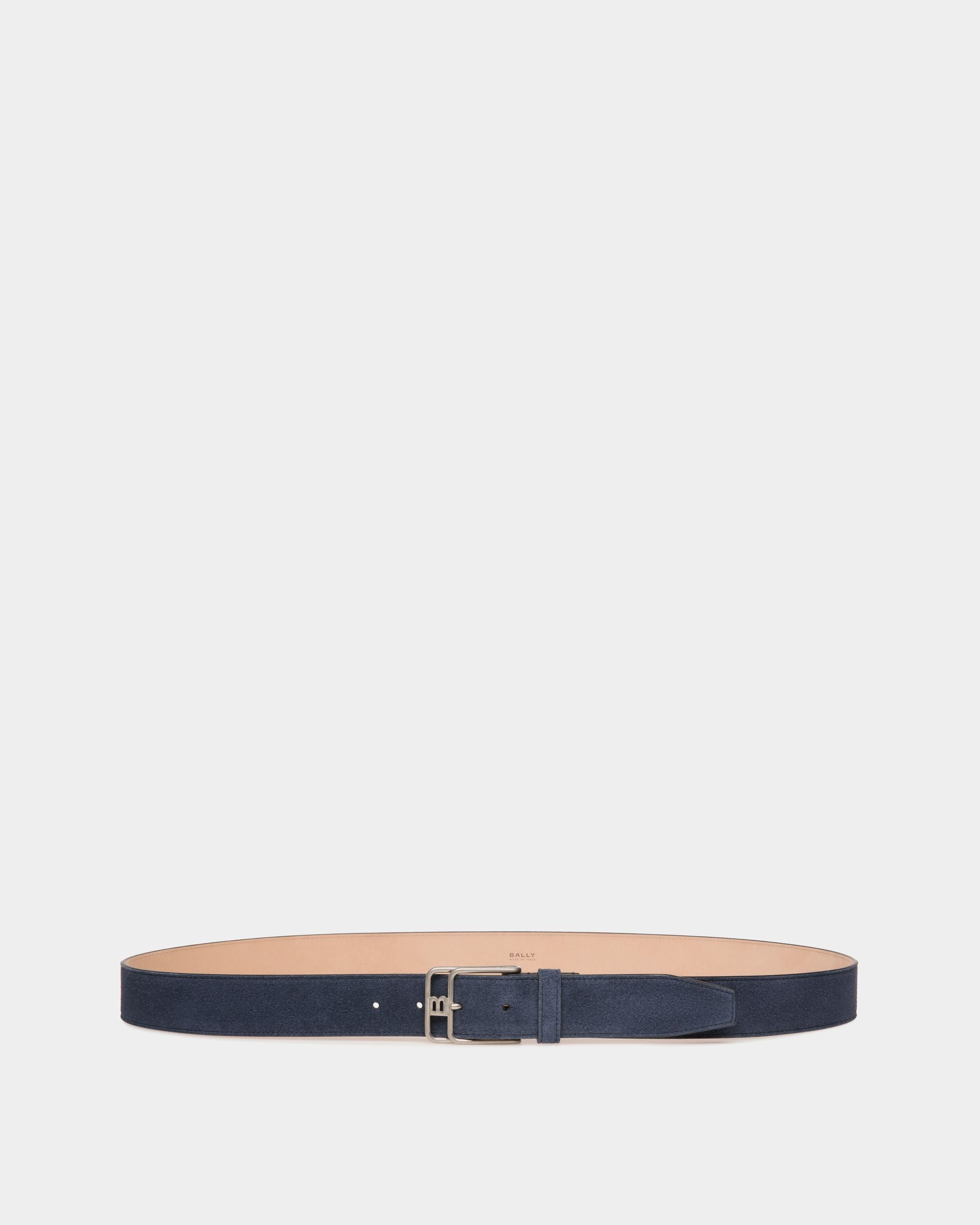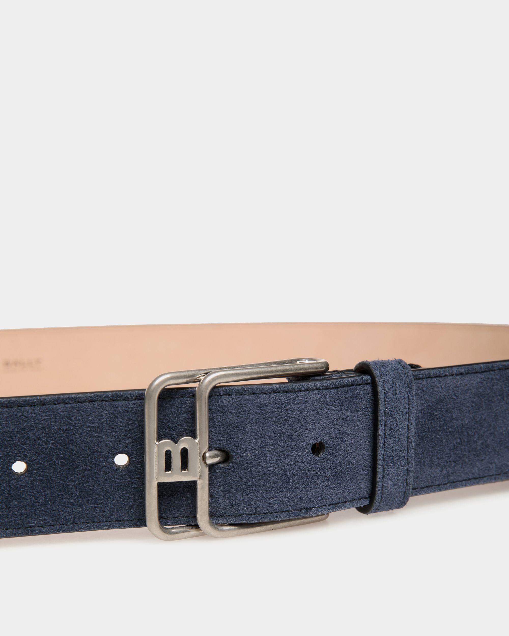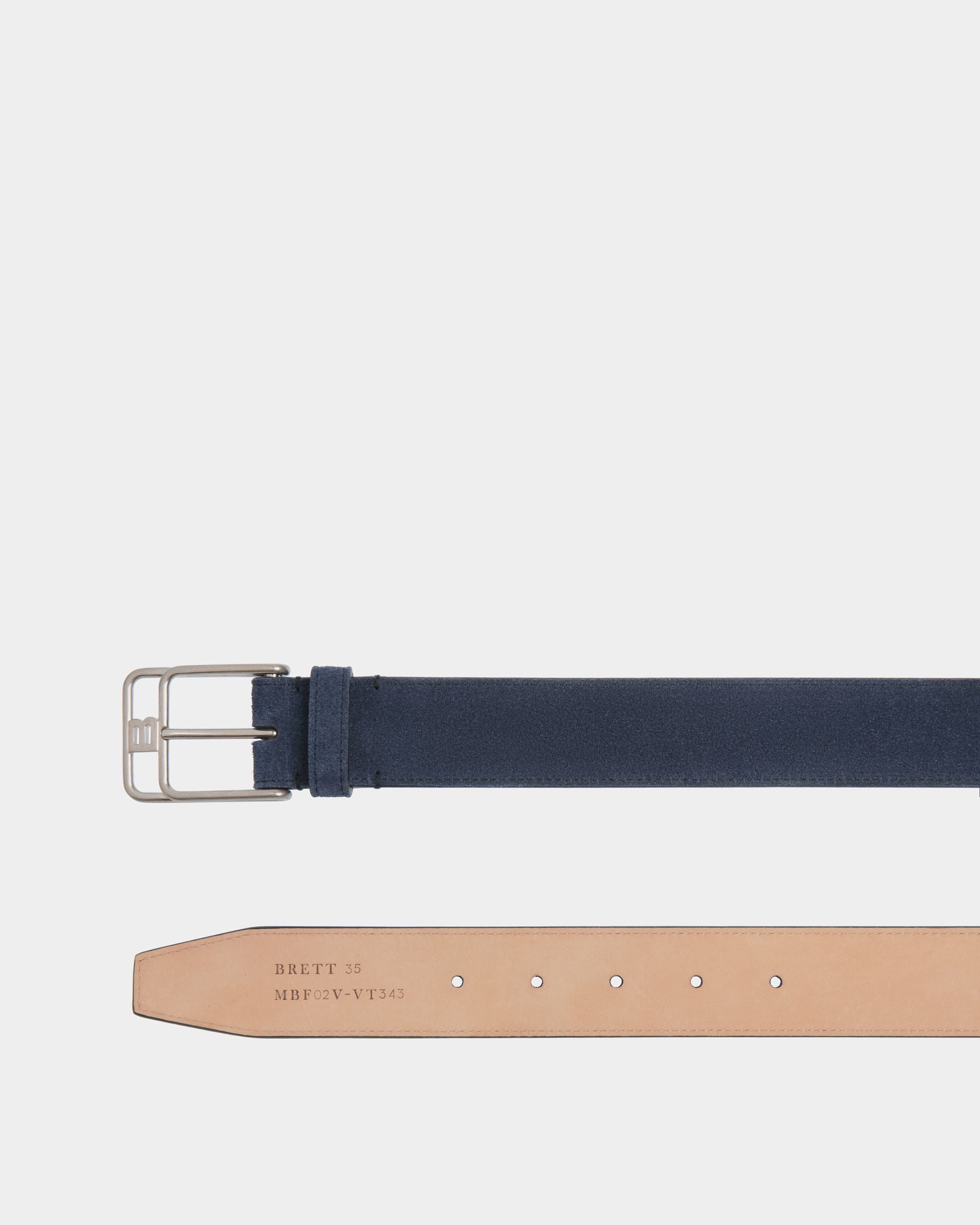 In navy blue suede. the Brett 35 mm belt features a B positioned between the two parallel elements of the palladium-hue metal buckle.