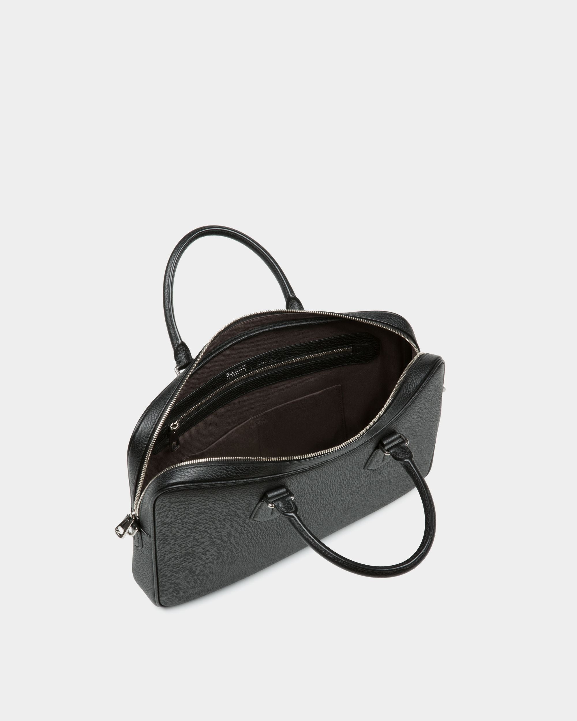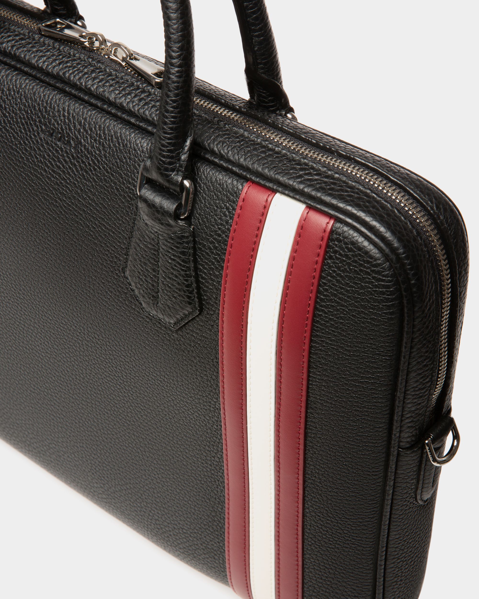This briefcase is made from durable grained leather. A refined Bally Ribbon finishes the front.