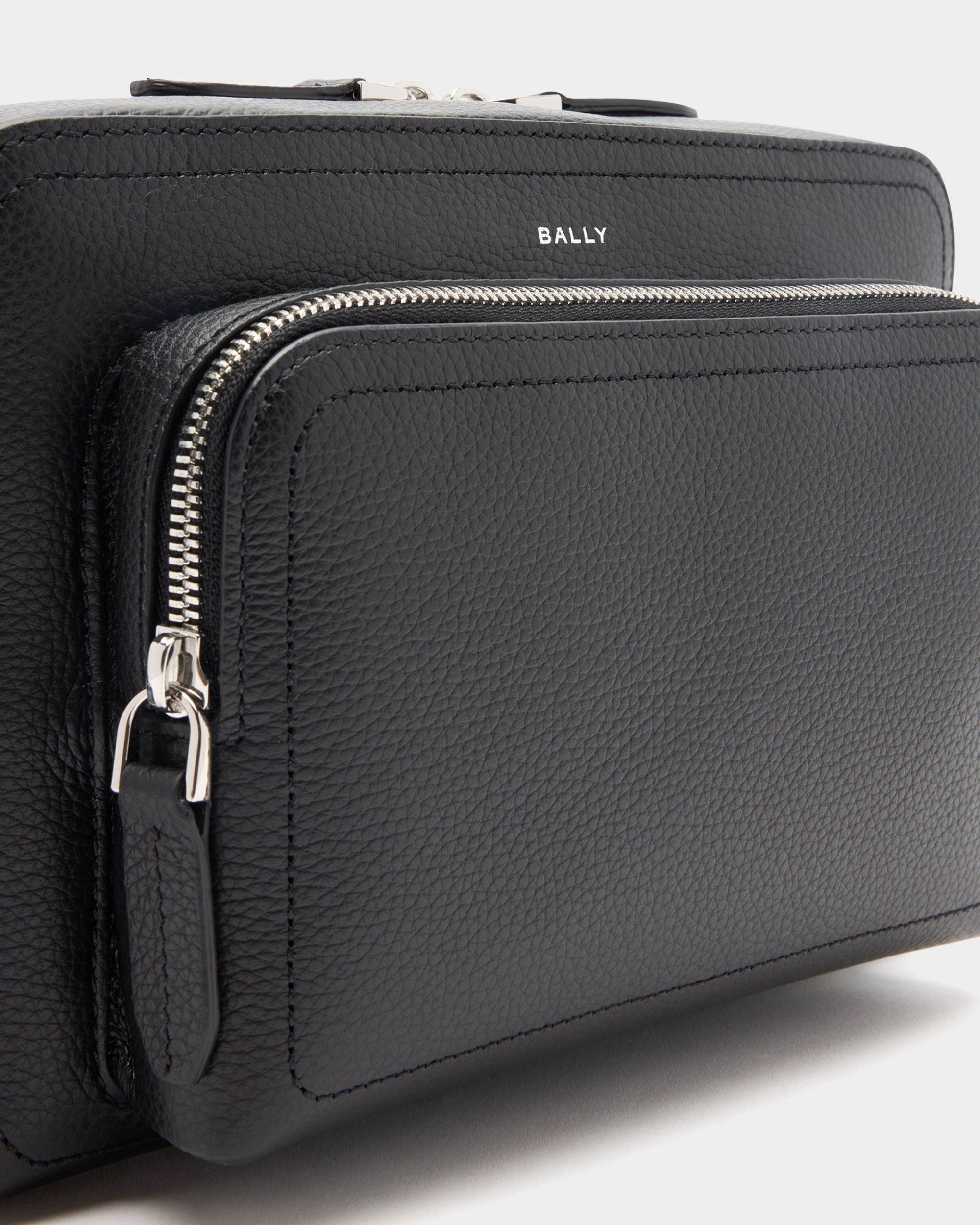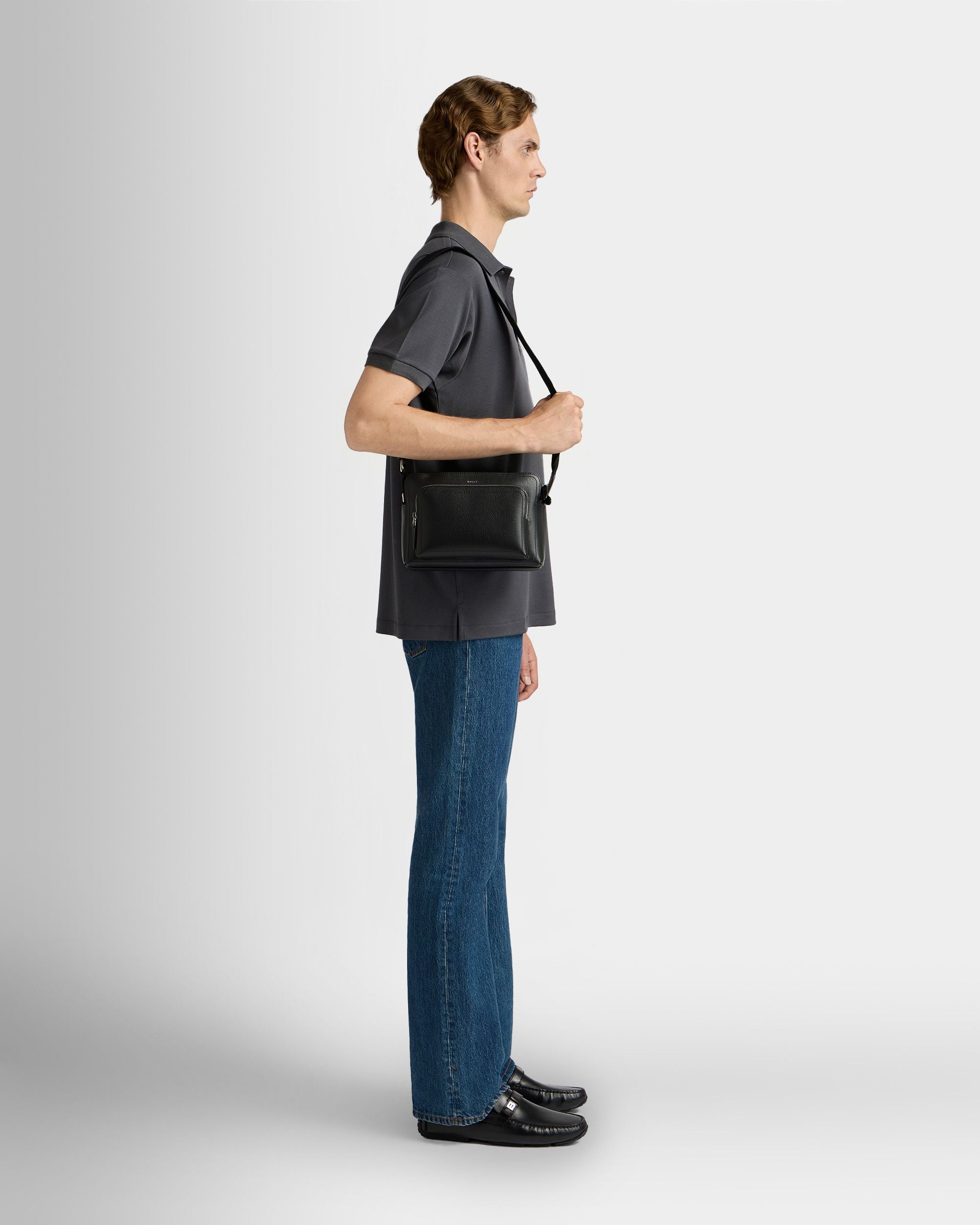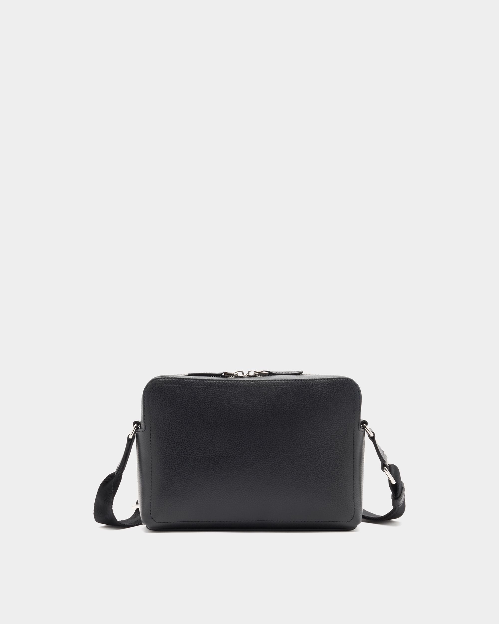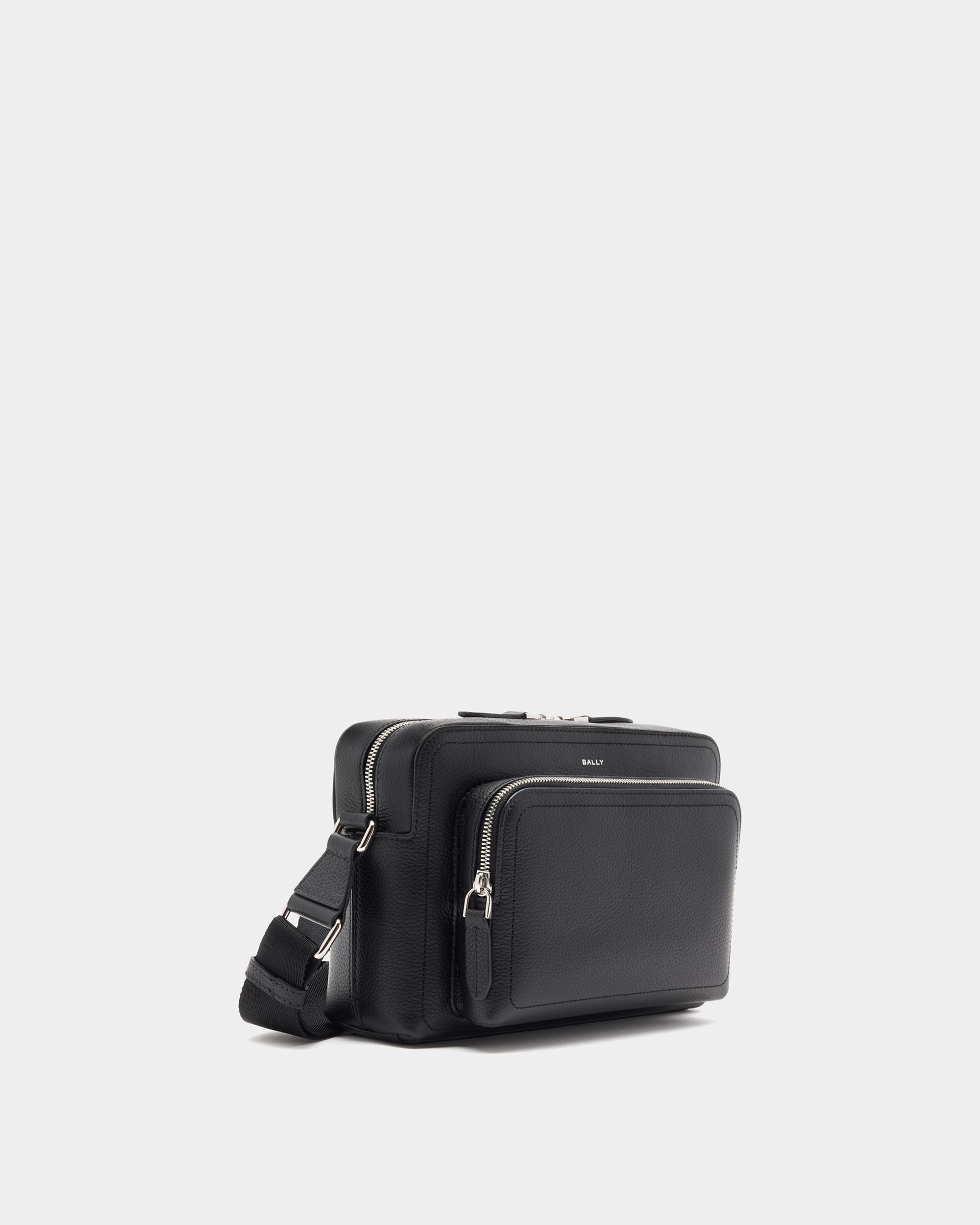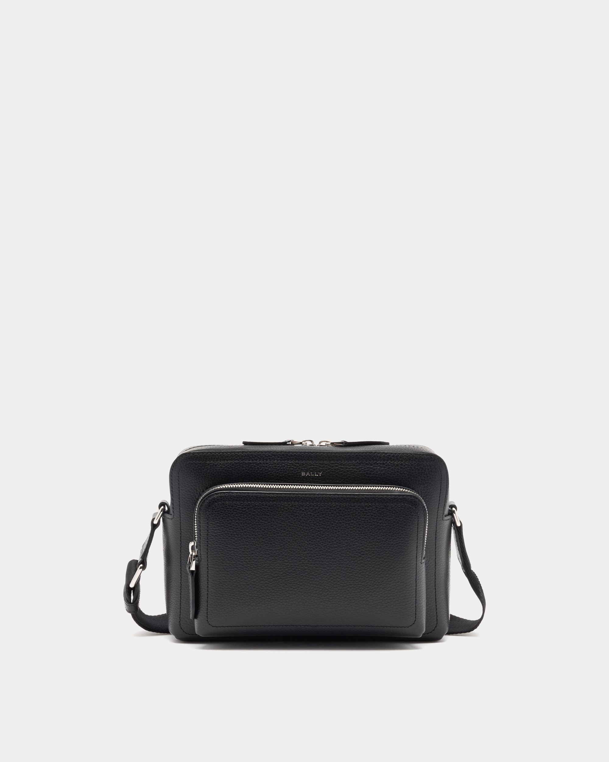 This Capitol crossbody bag has a rectangular silhouette crafted from black grained leather. A smaller pocket is featured on the front. embellished with the Bally logo in foil.