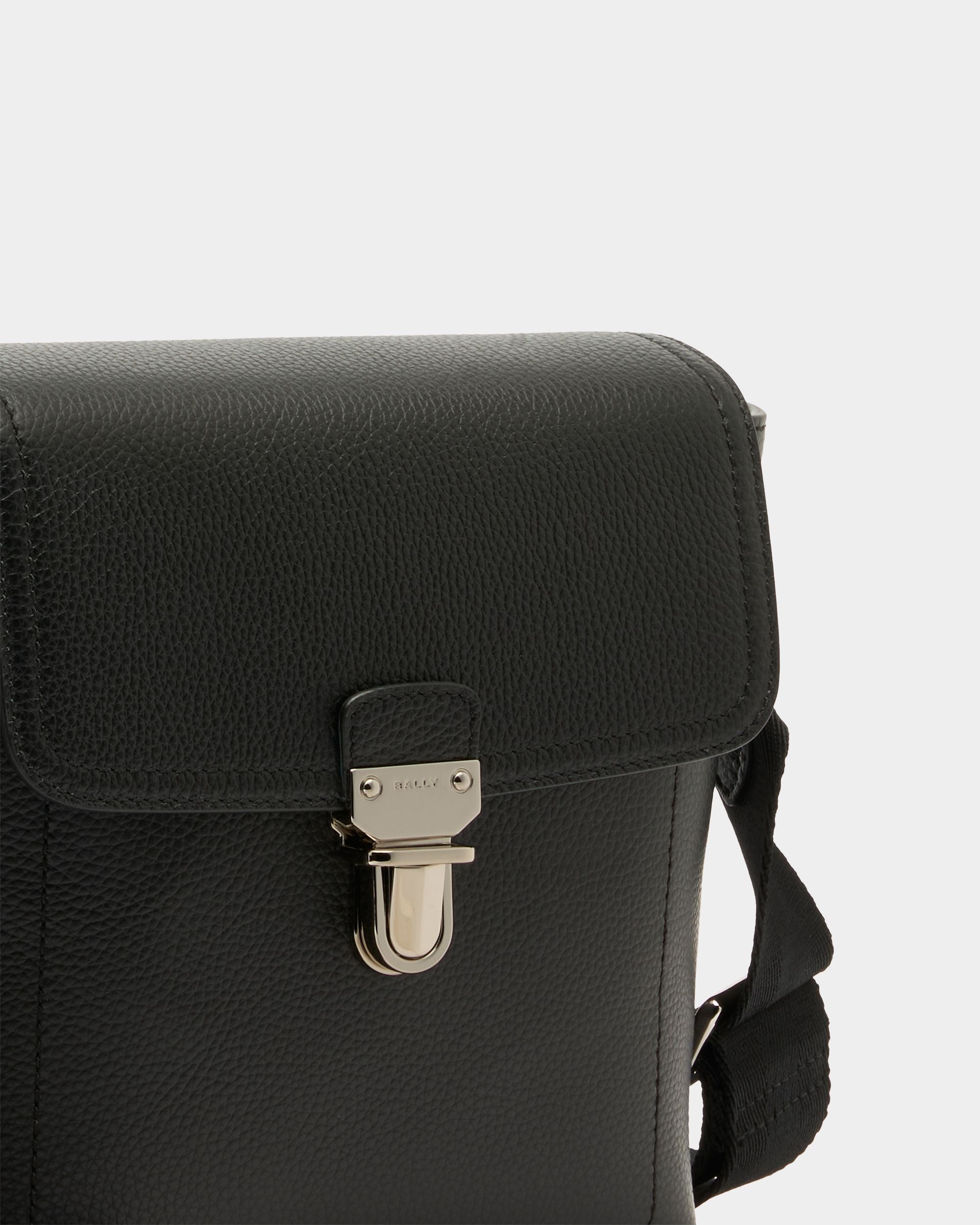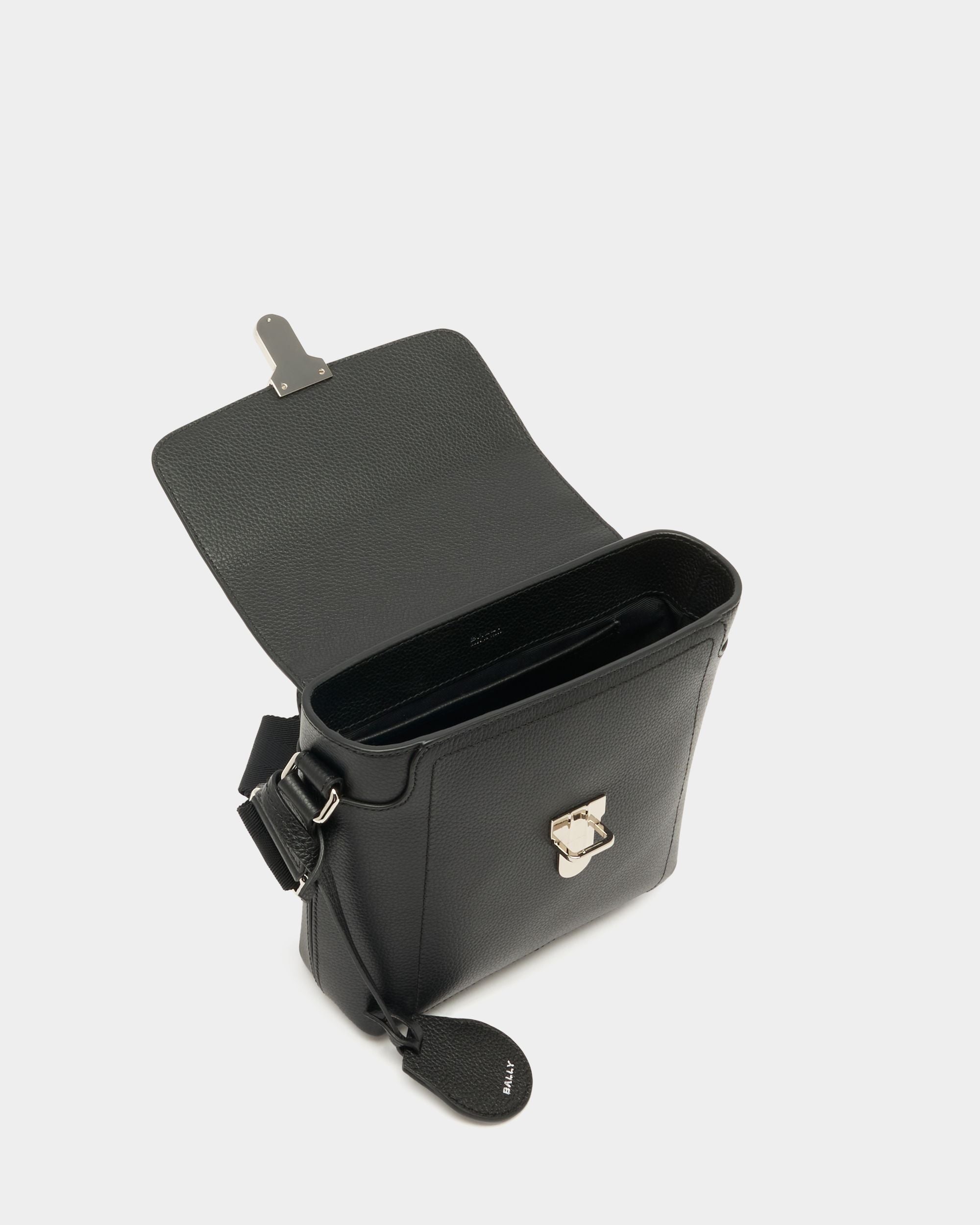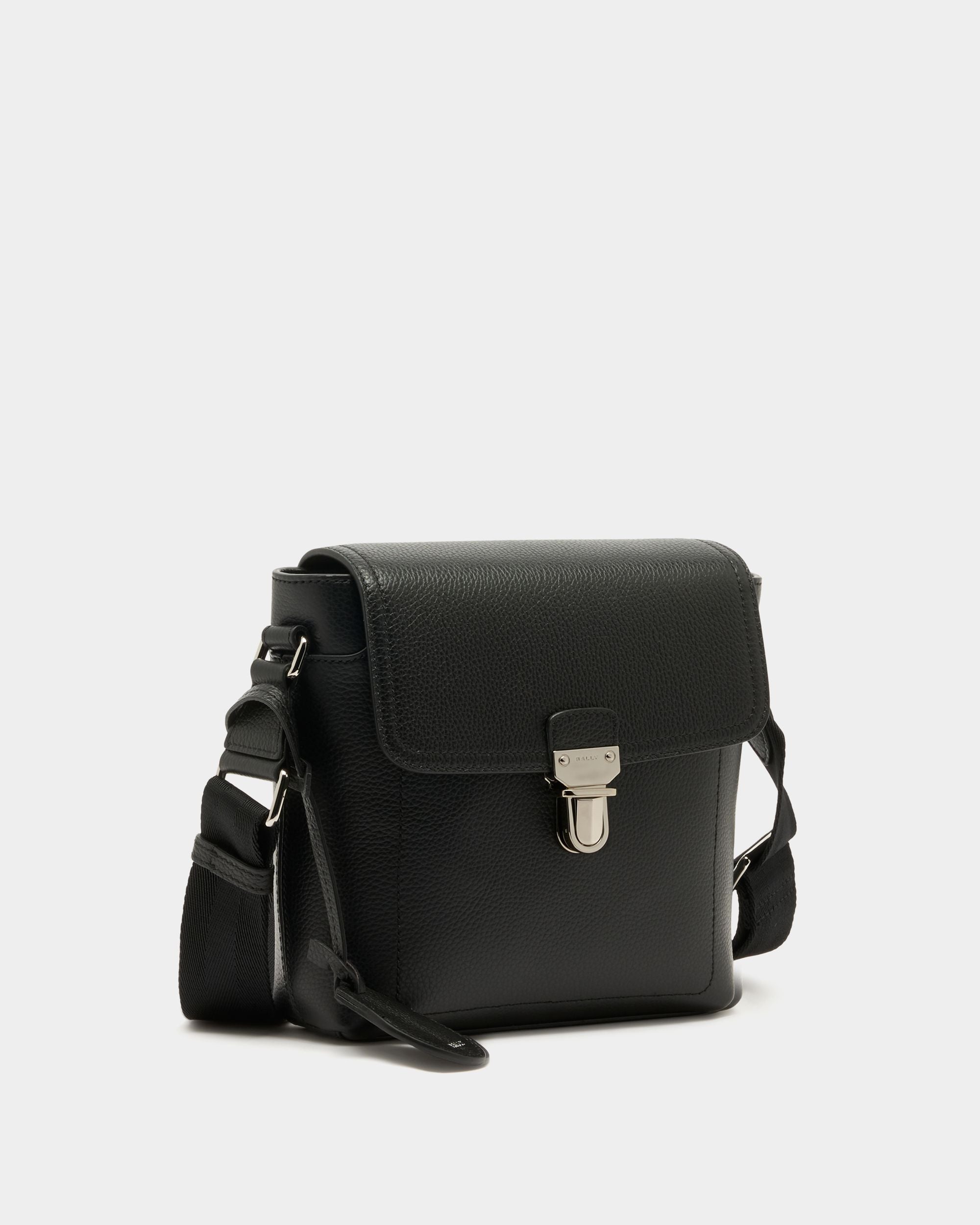 This Capitol crossbody bag in black grained leather is designed for versatility. Its compact silhouette is closed with a flap and a metal clasp engraved with the Bally logo. One external pocket and one internal pocket keep essentials organized.