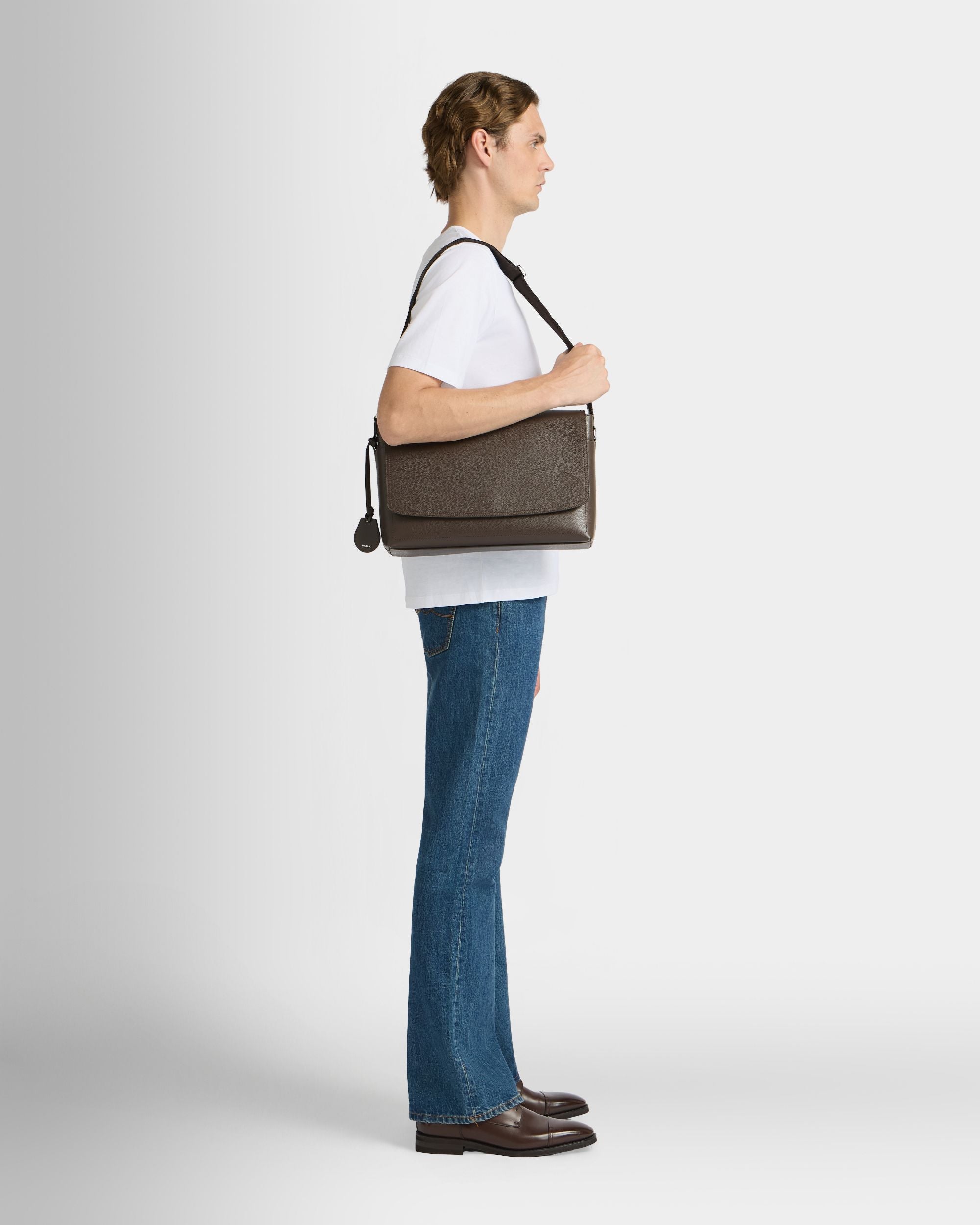 This Capitol crossbody bag in Ebano grained leather is made for on-the-go refinement. complete with multiple pockets and room for a 13 laptop. Finished with a Bally logo in silver-tone foil on the flap closure.