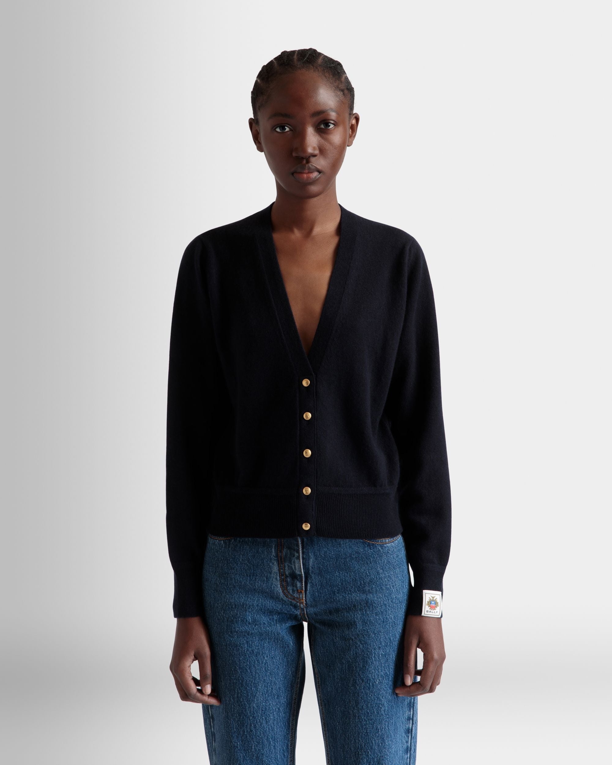 Cardigan In Navy Blue Cashmere