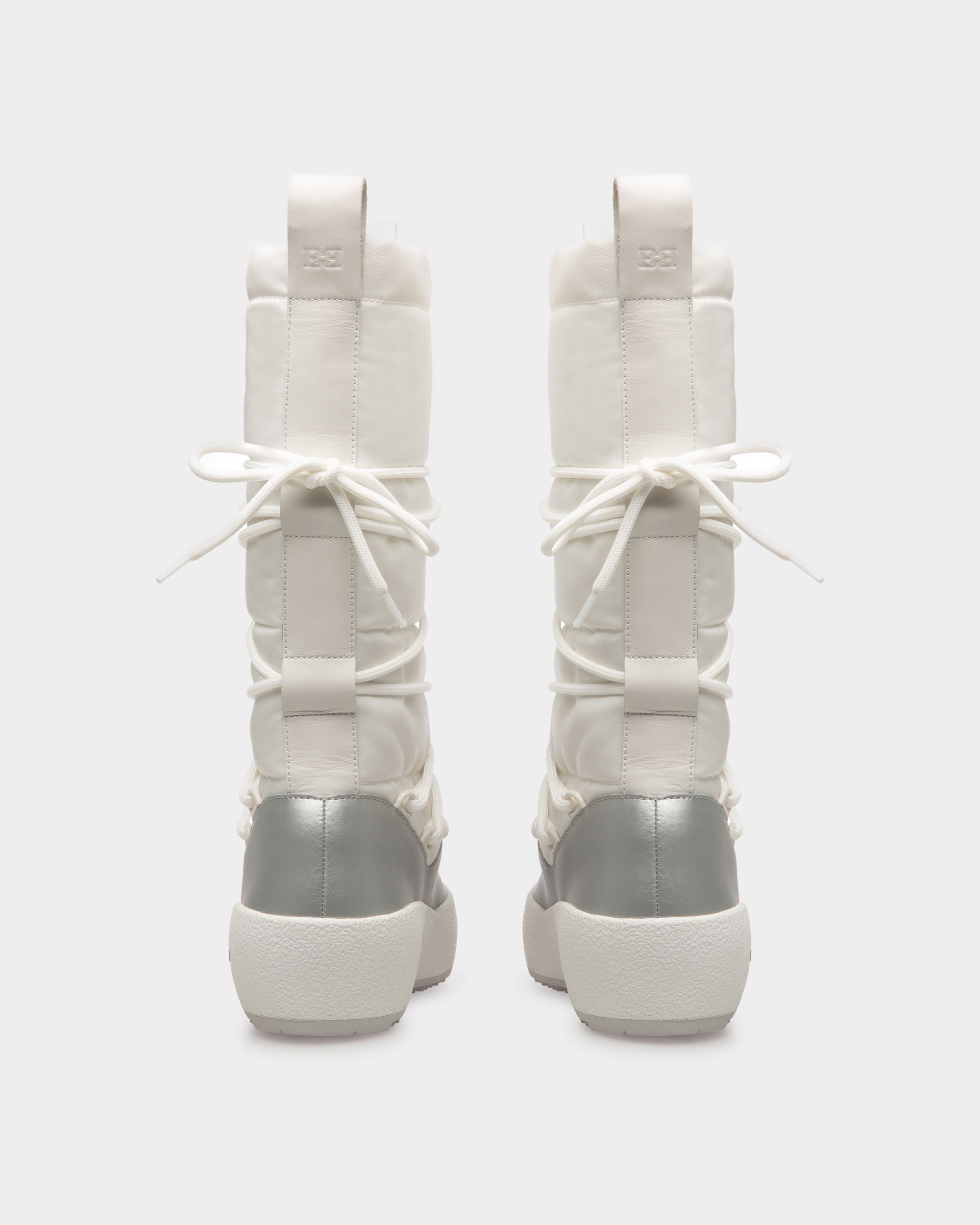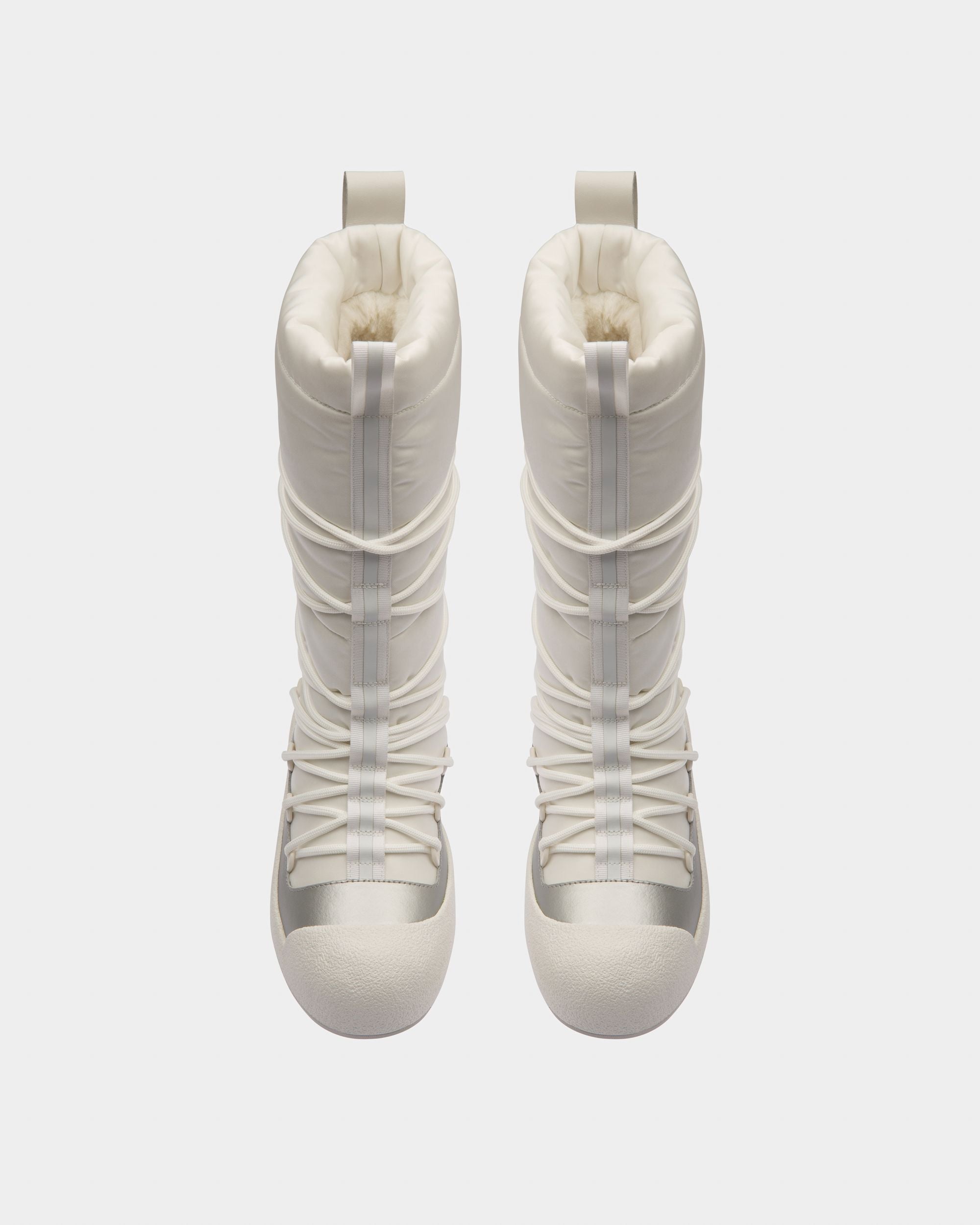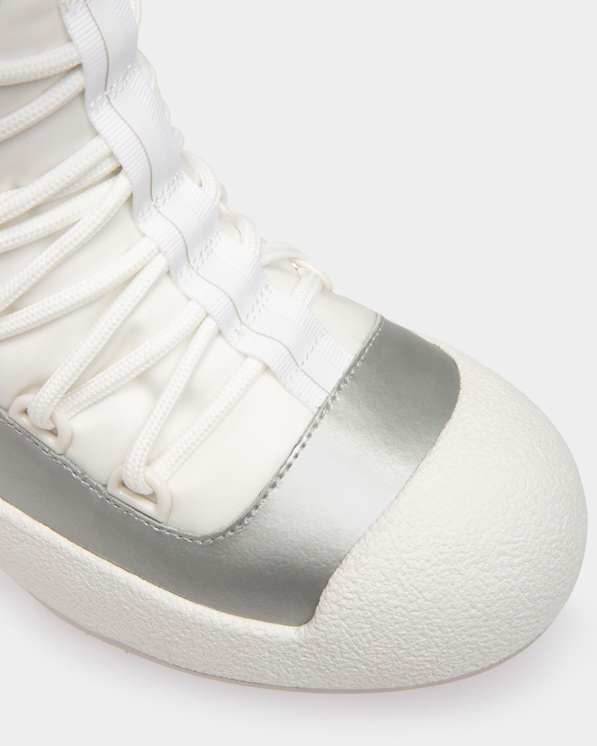 Cathye Recycled Nylon & Leather Boots In White & Silver