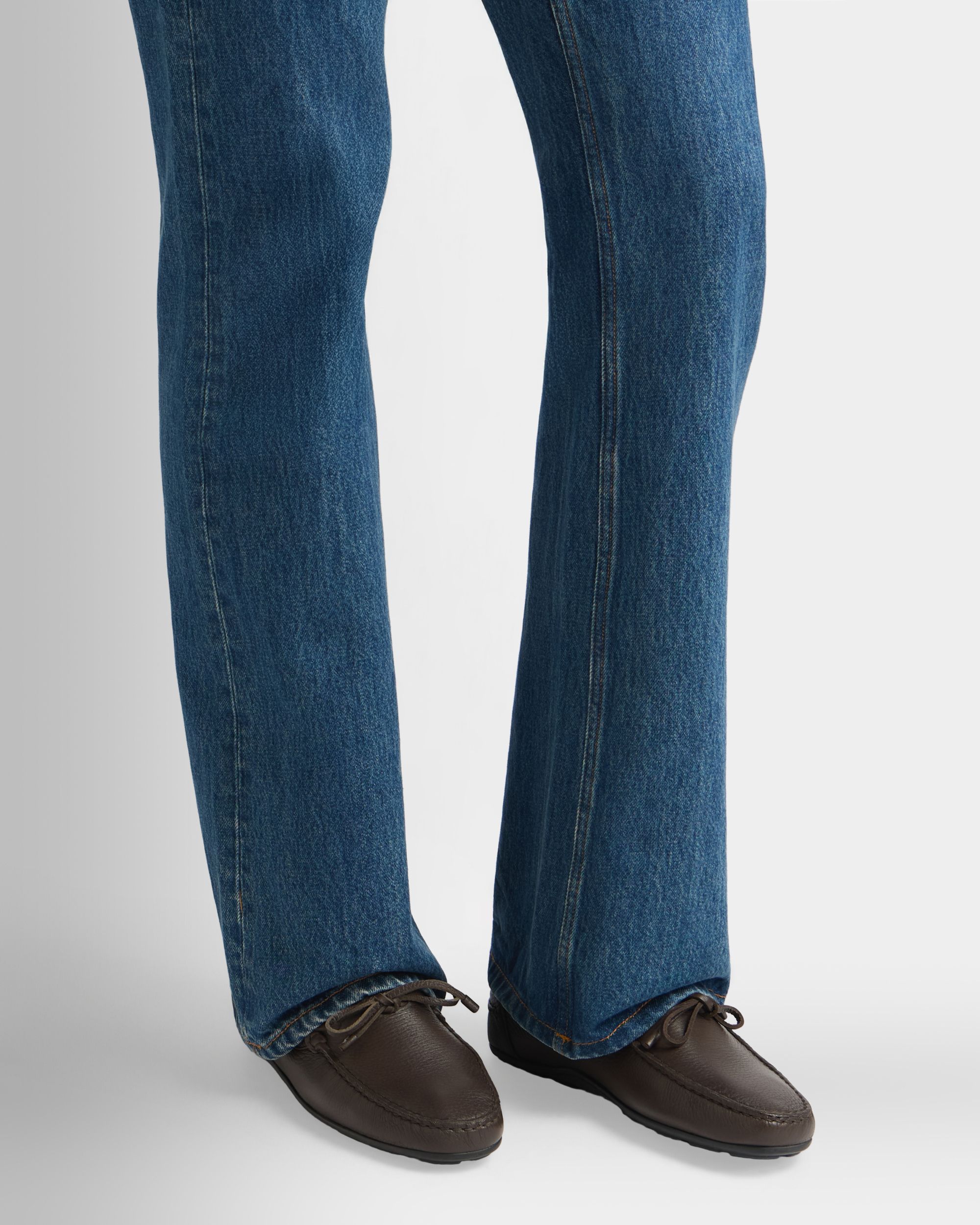 The Clay driver unites the style of a boat shoe with the flexible rubber sole of a driving loafer. In Ebano brown deer leather. moccasin construction ensures all-day comfort.