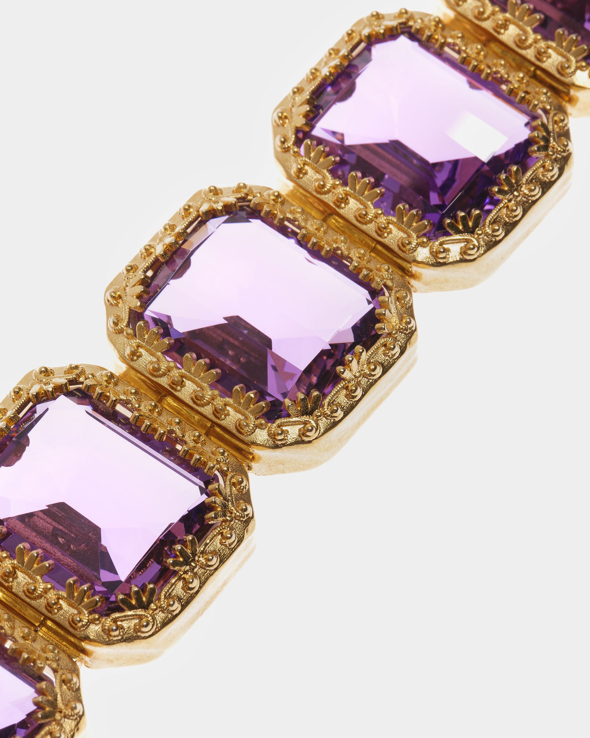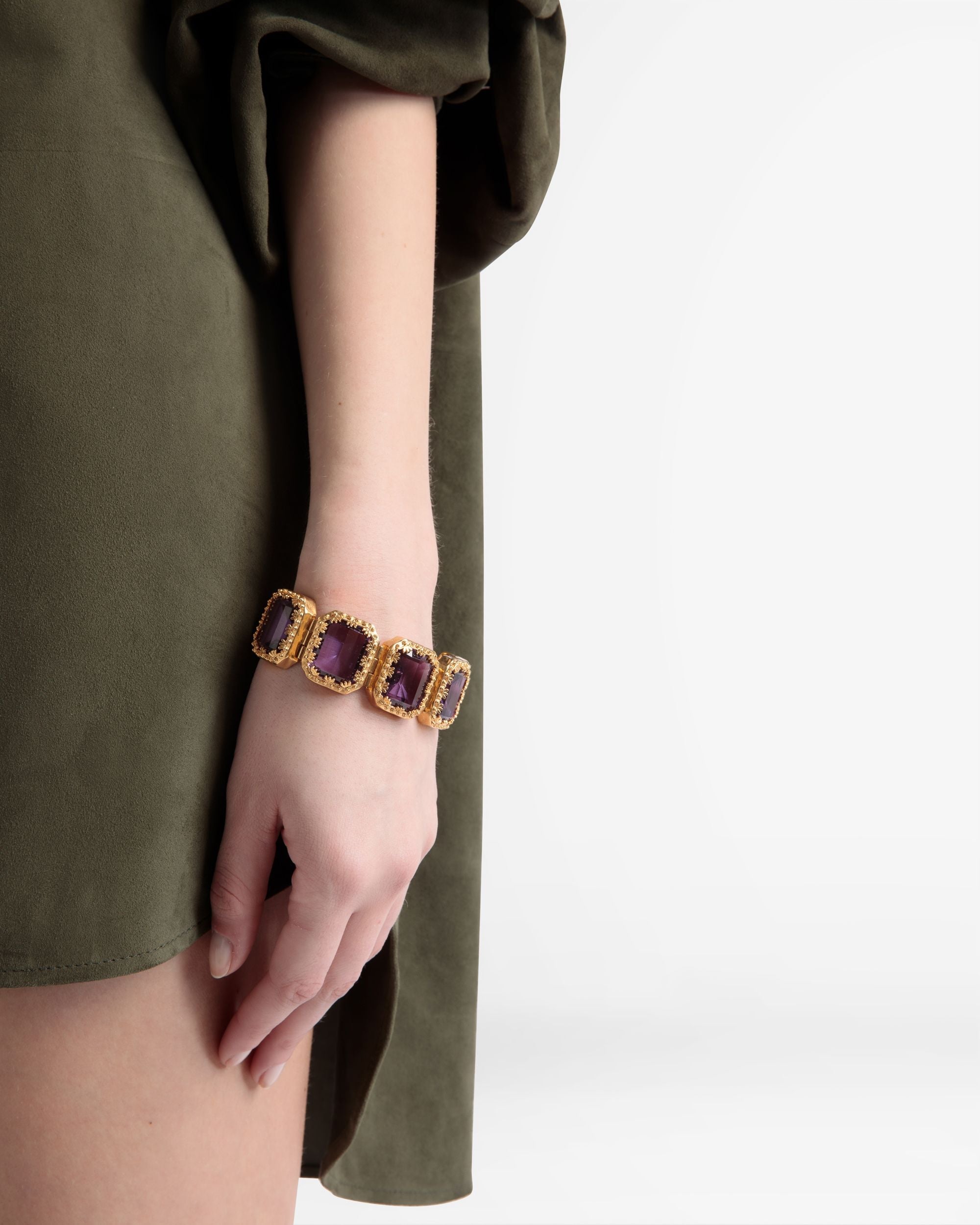 An eye-catching design. This bracelet showcases uniformly-set octagon-cut stones that have been outlined with yellow gold tone claw details.