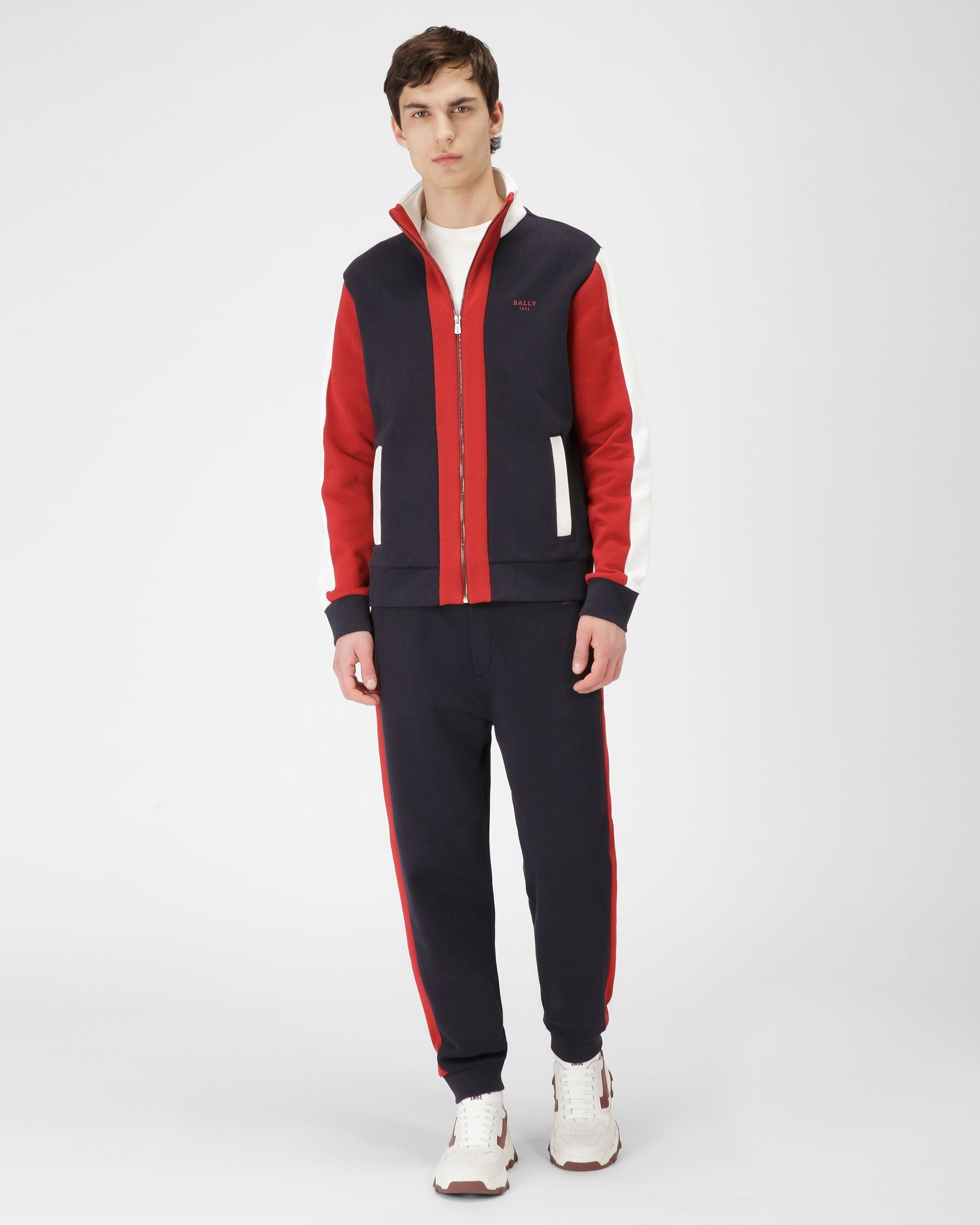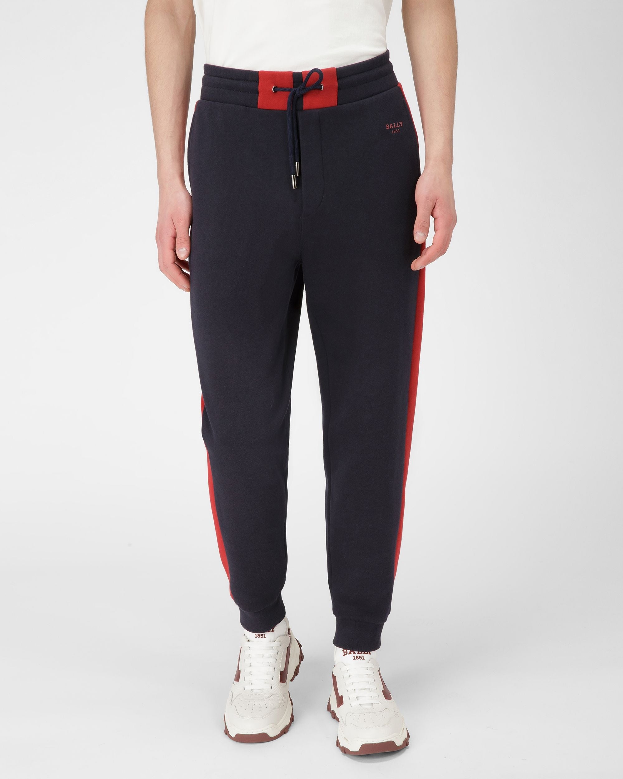 Designed for comfort. these pants are cut from a naturally stretchy fleece cotton blend. and fasten with a drawstring waist. Contrast stripe details add an elevated touch.