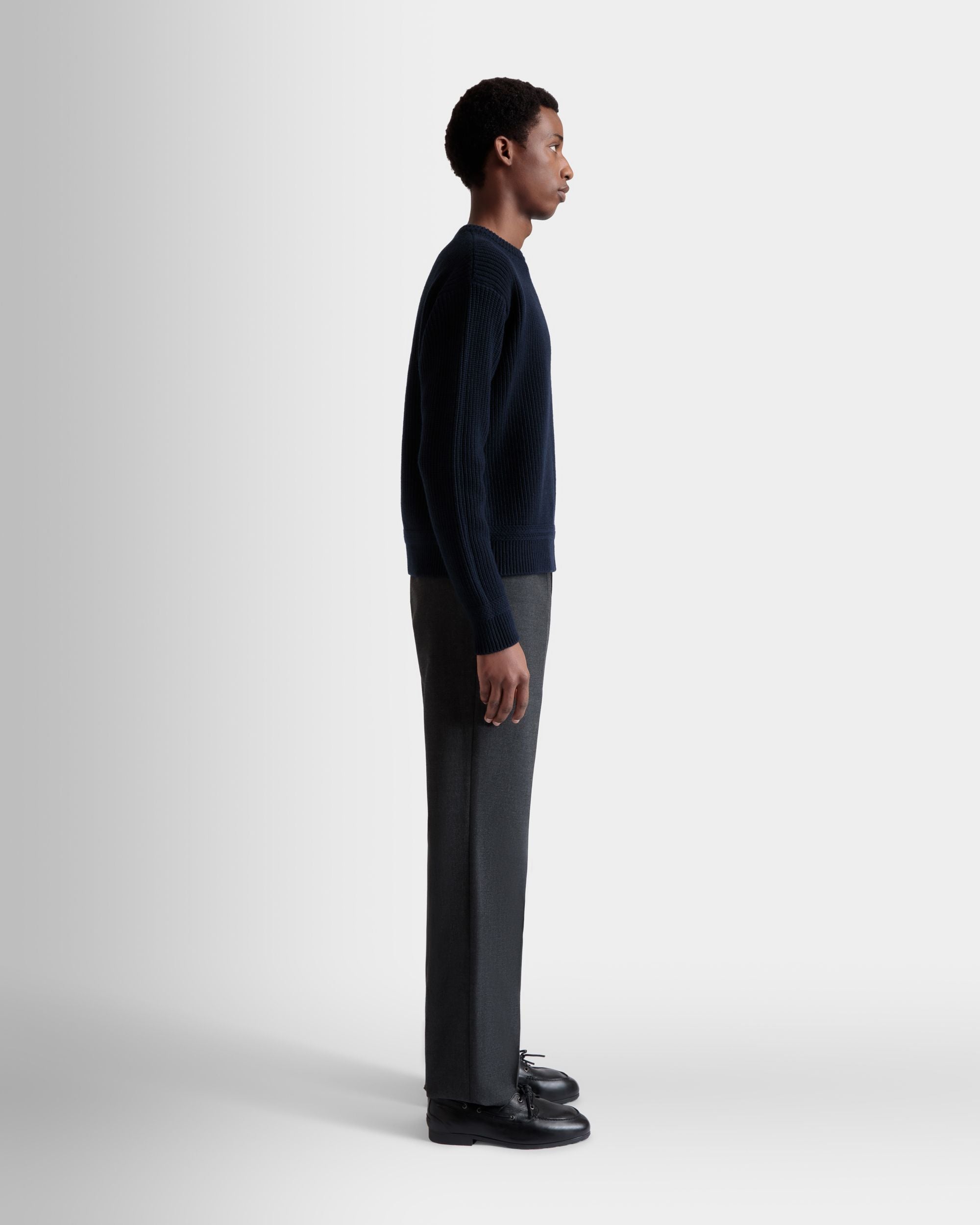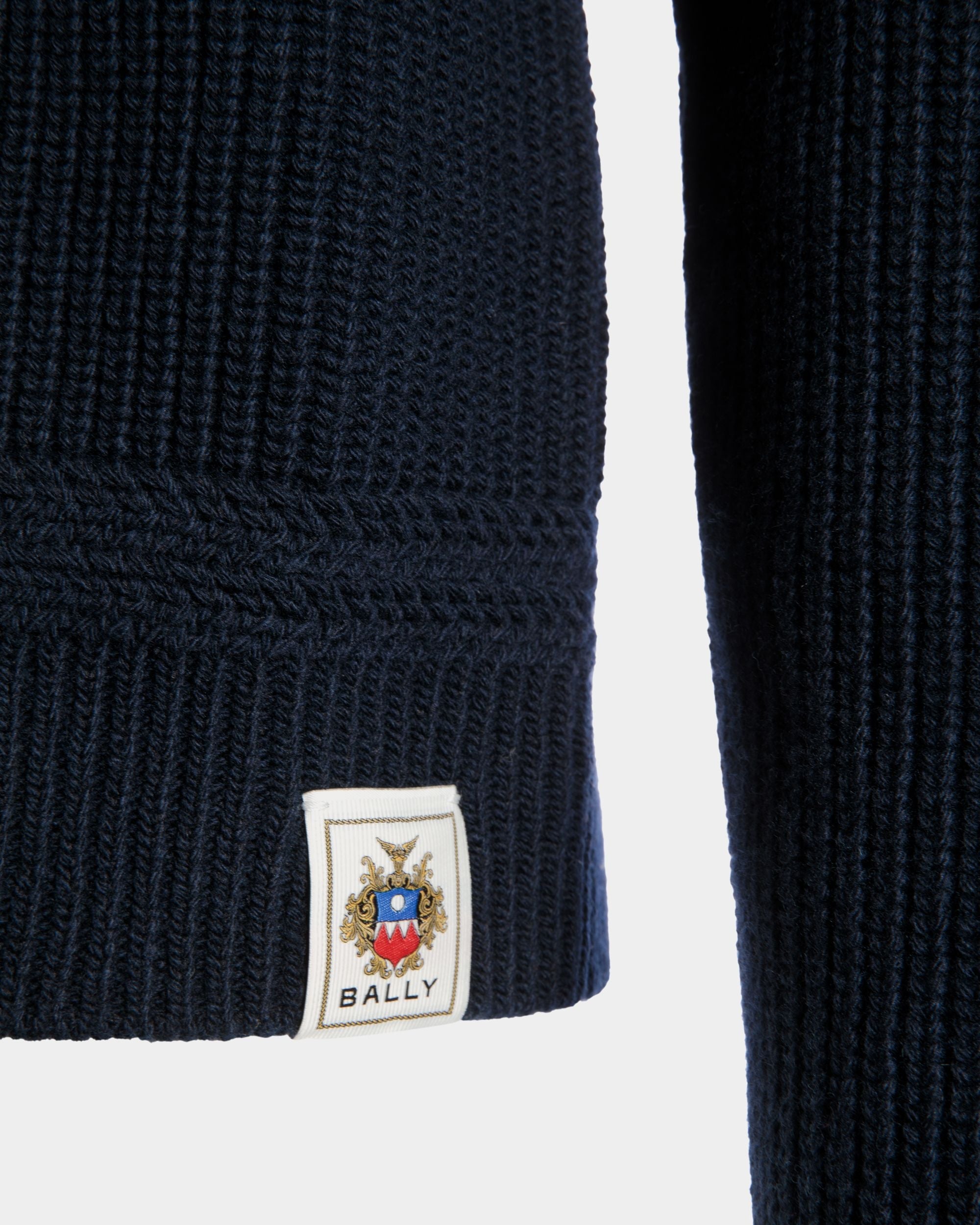 Crewneck Sweater With Bally Crest Logo in Navy Blue Wool