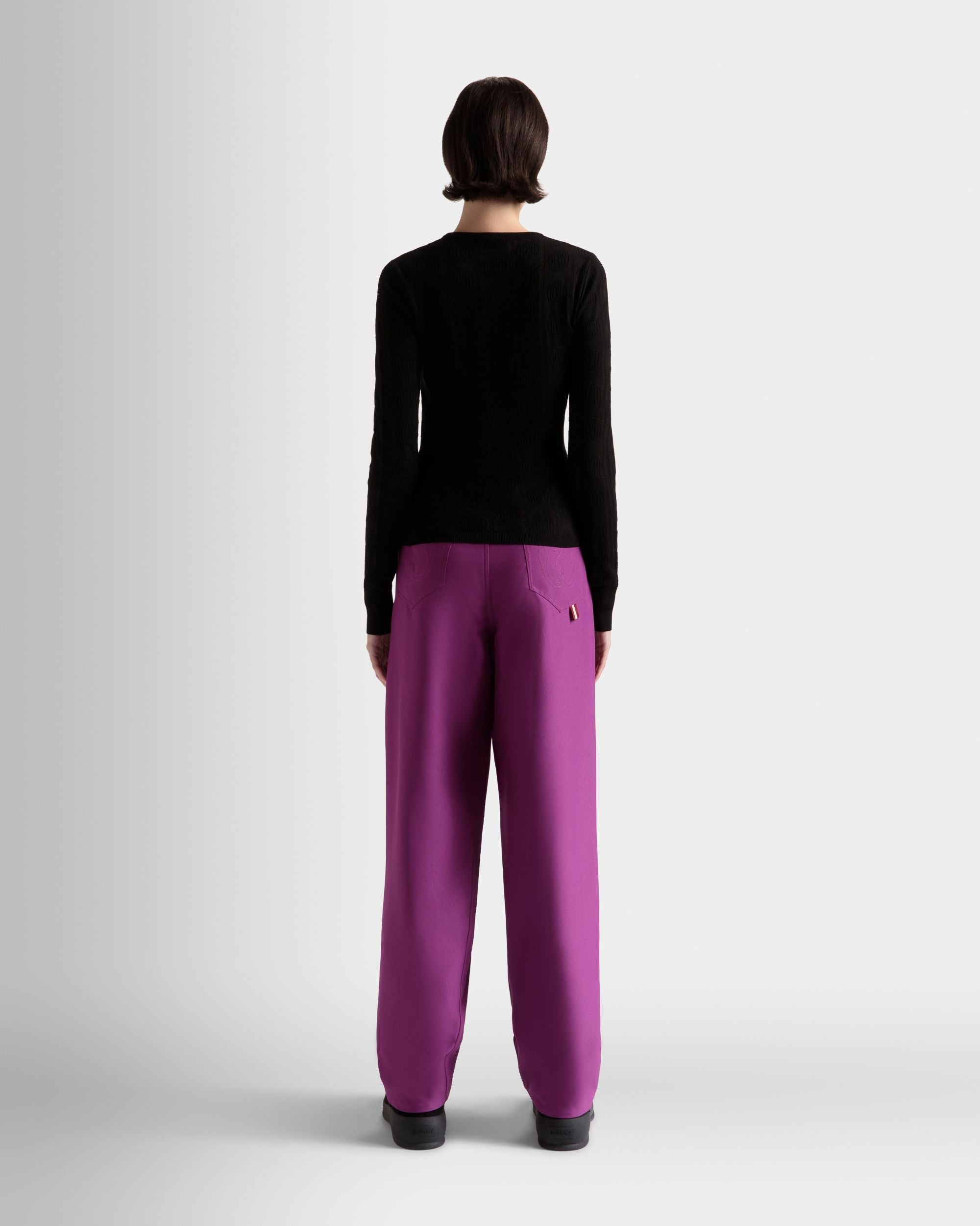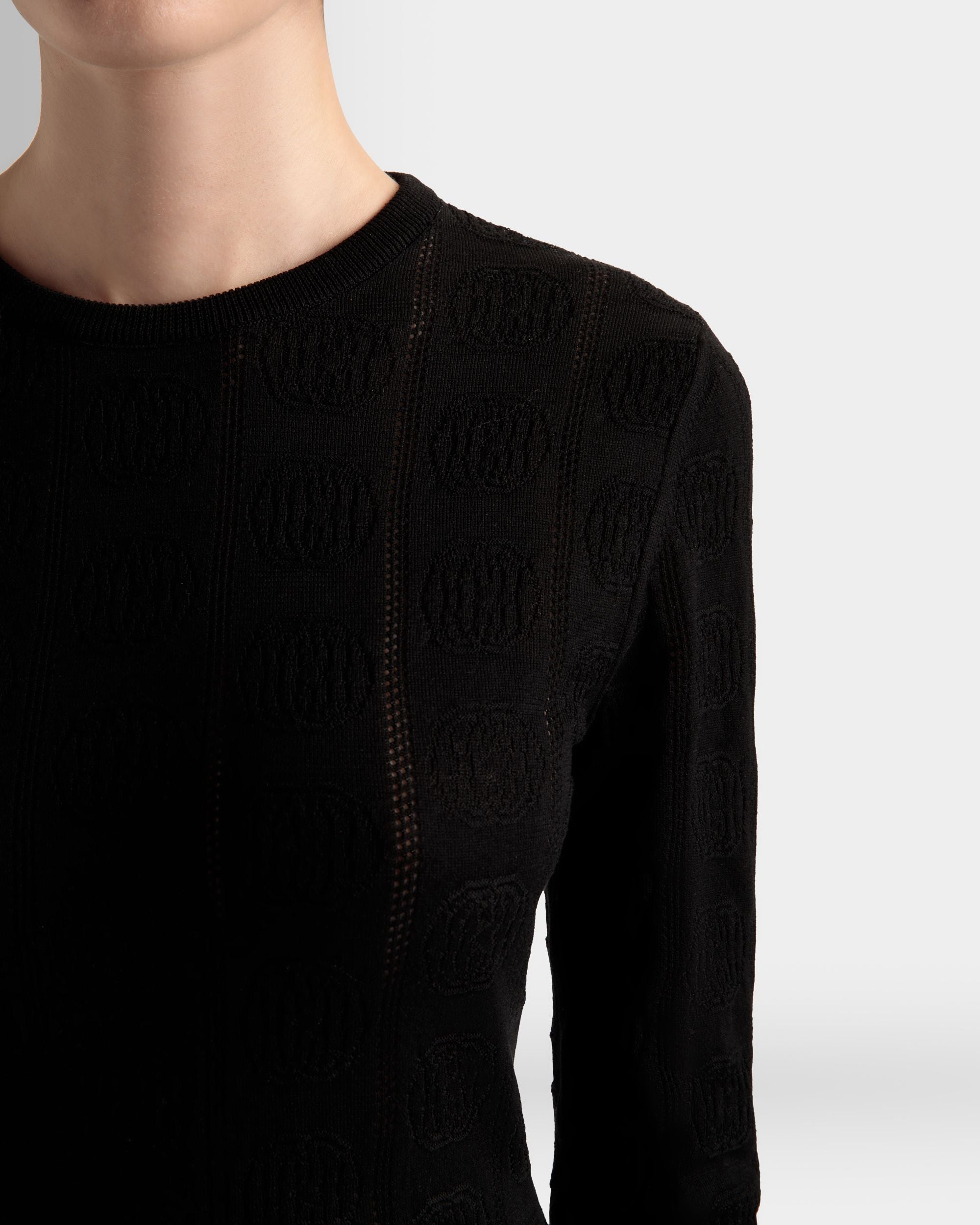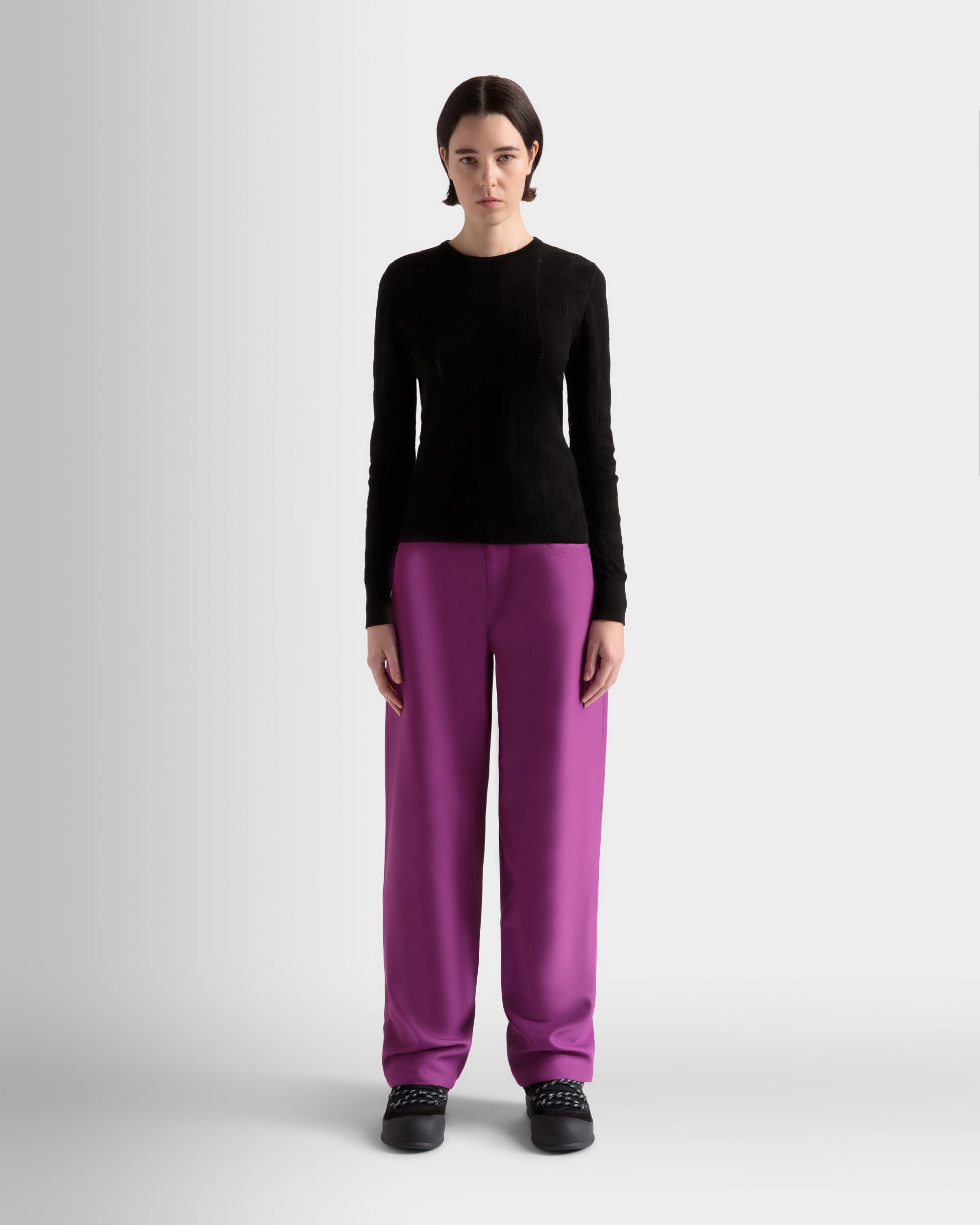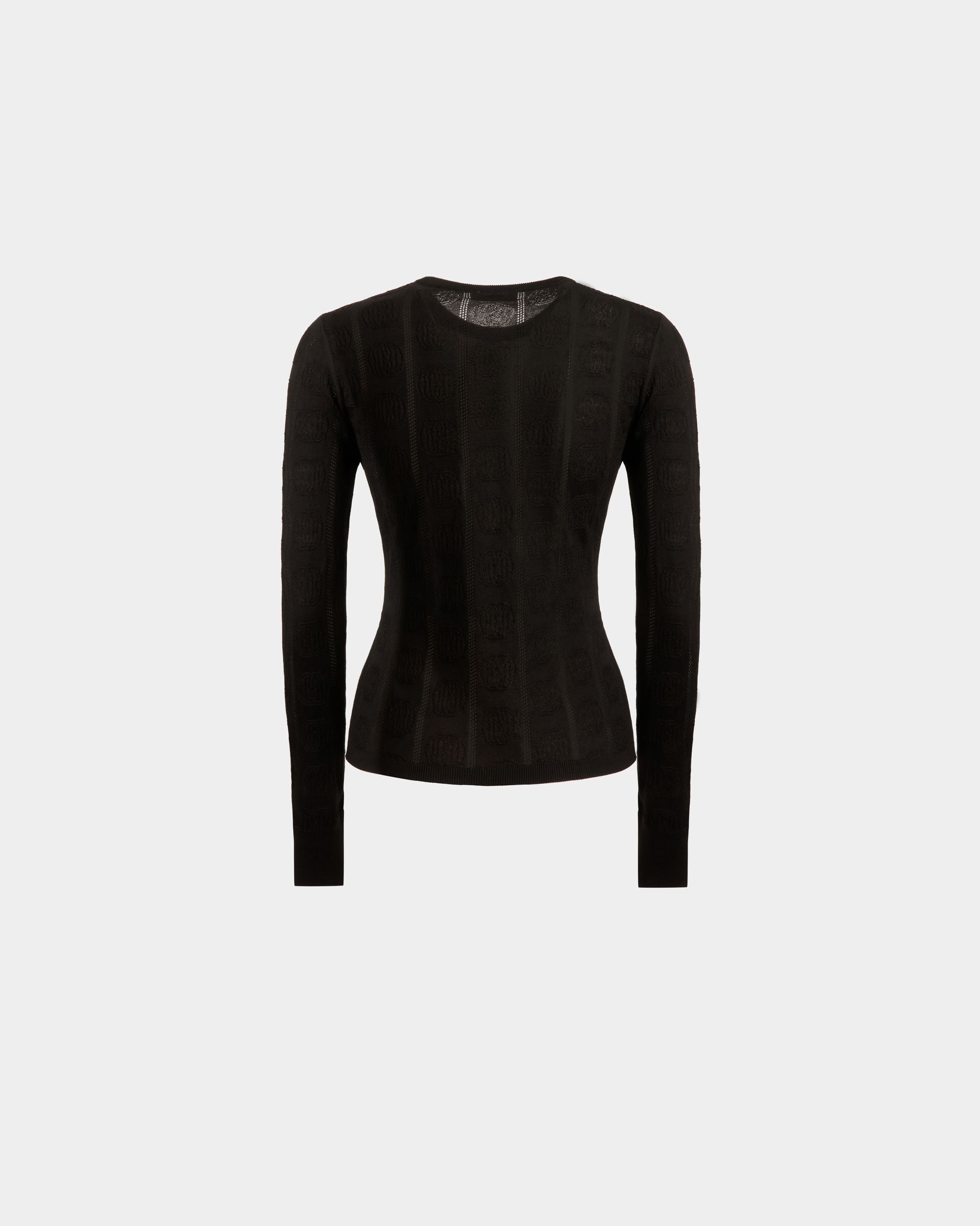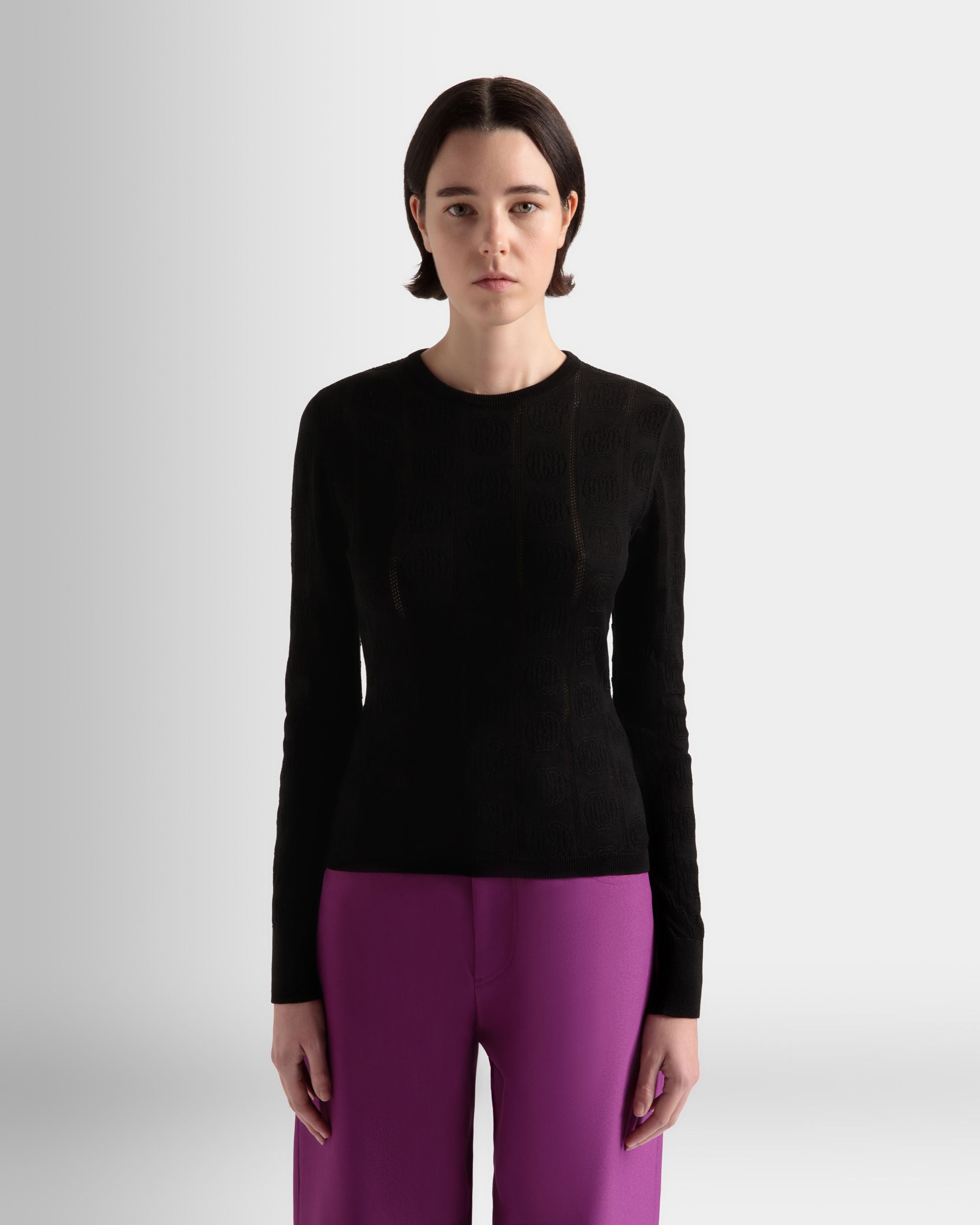 Here in black. this crewneck long-sleeve top is crafted from a luxurious silk and cotton blend. offering a soft and smooth feel against the skin. Its classic design and versatile color make it a timeless addition to any wardrobe.