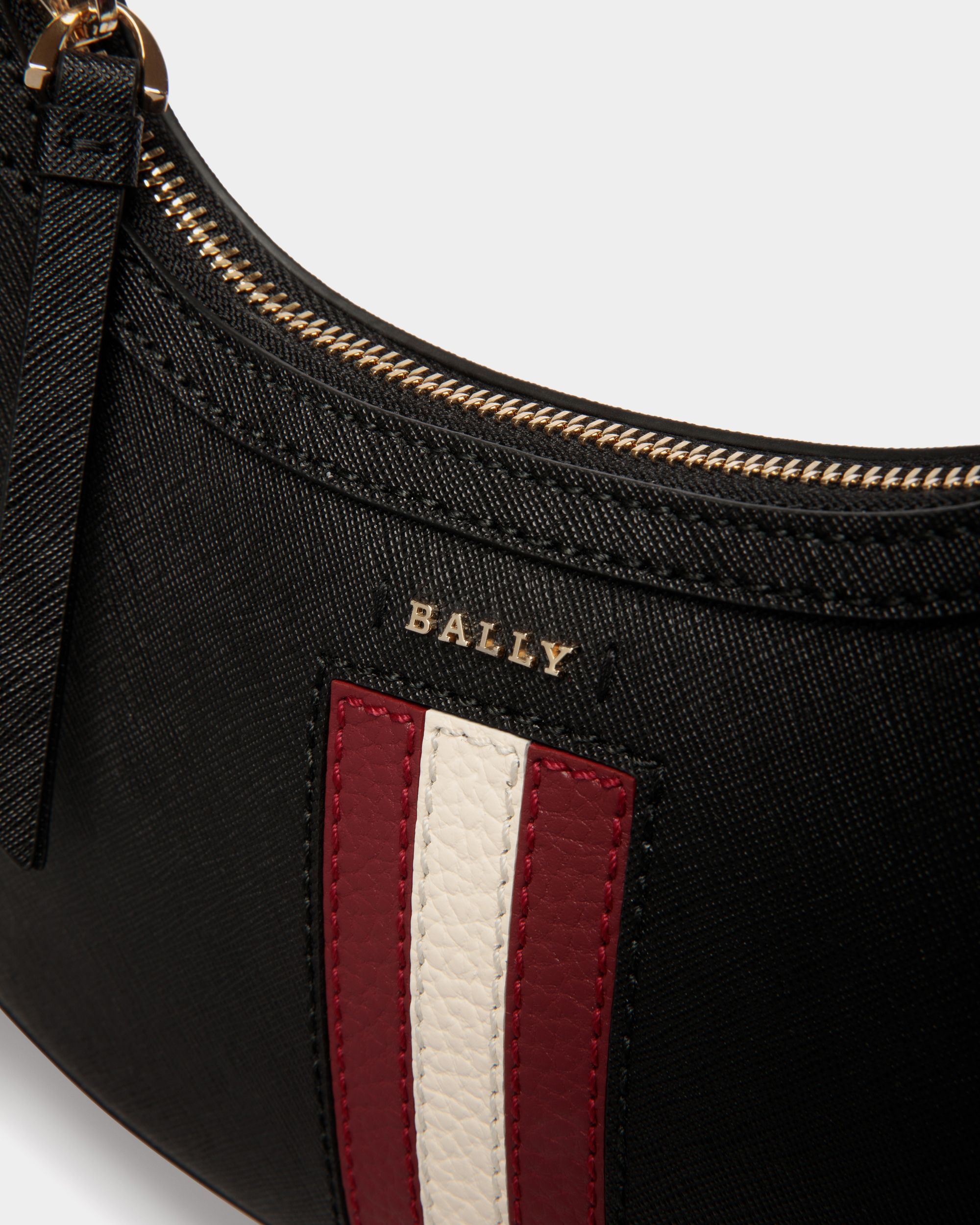 This cross-body bag is made from embossed leather. It is finished with a Bally Ribbon detail on the front.