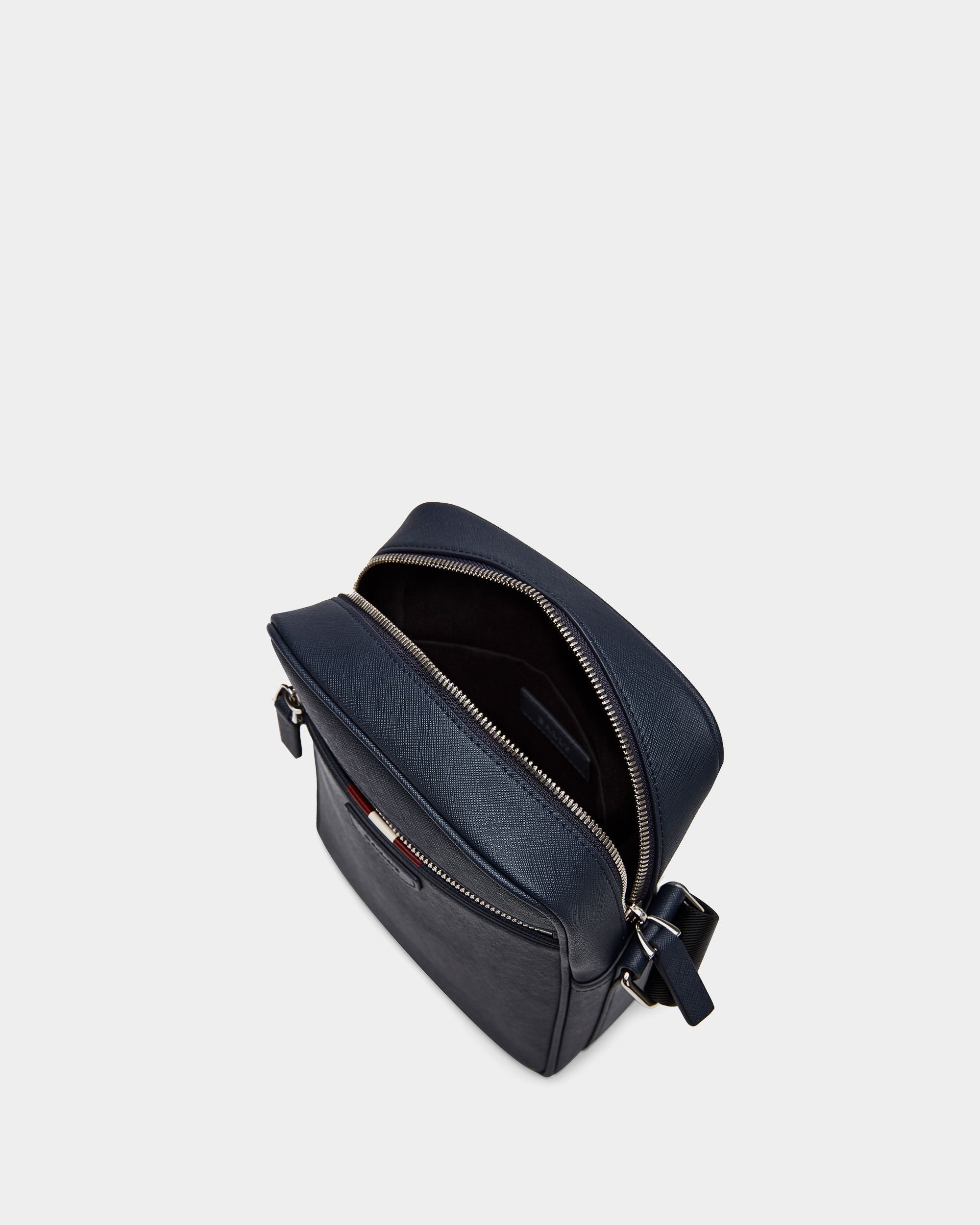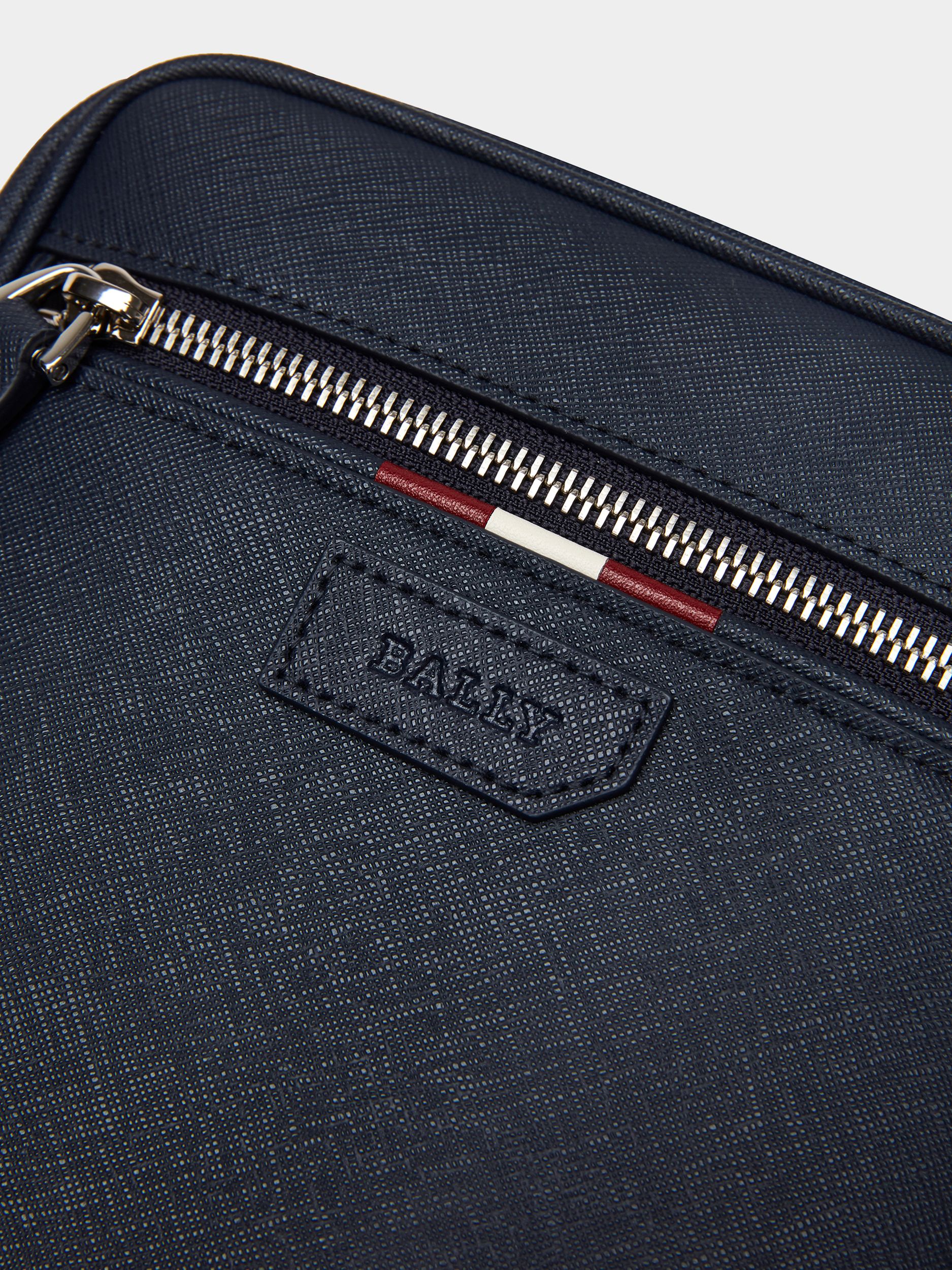 This cross-body bag is made from grained leather. It is finished with a Bally Ribbon detail on the front.