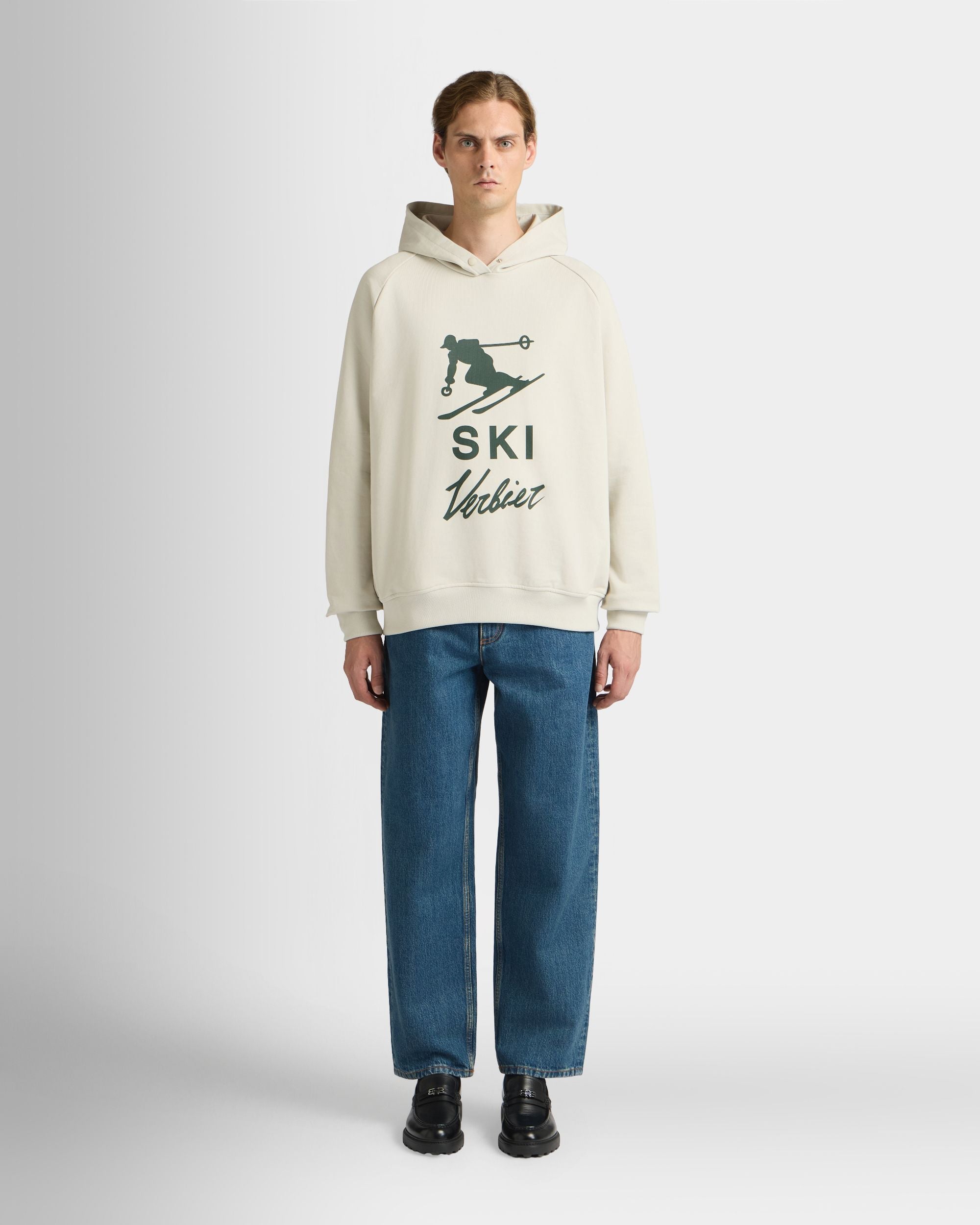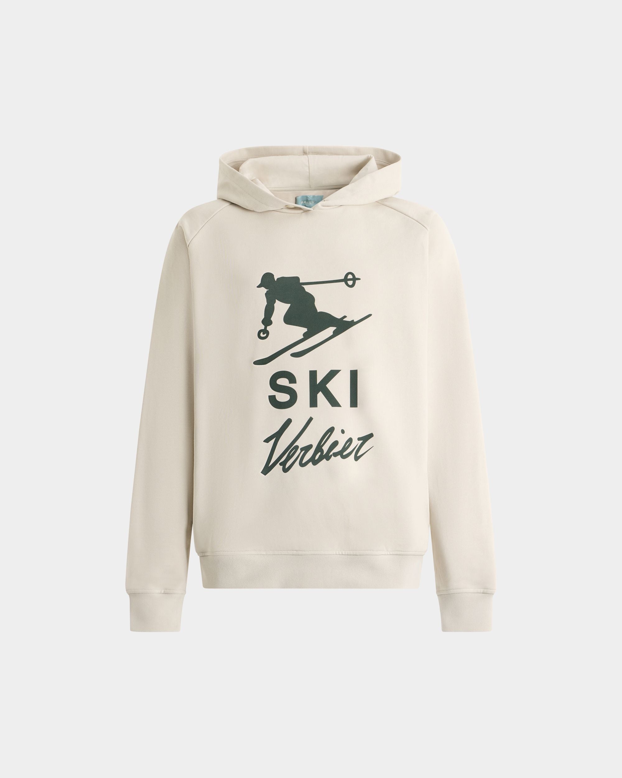 Curling Collection Hoodie in Grey Cotton with a Ski Verbier Print