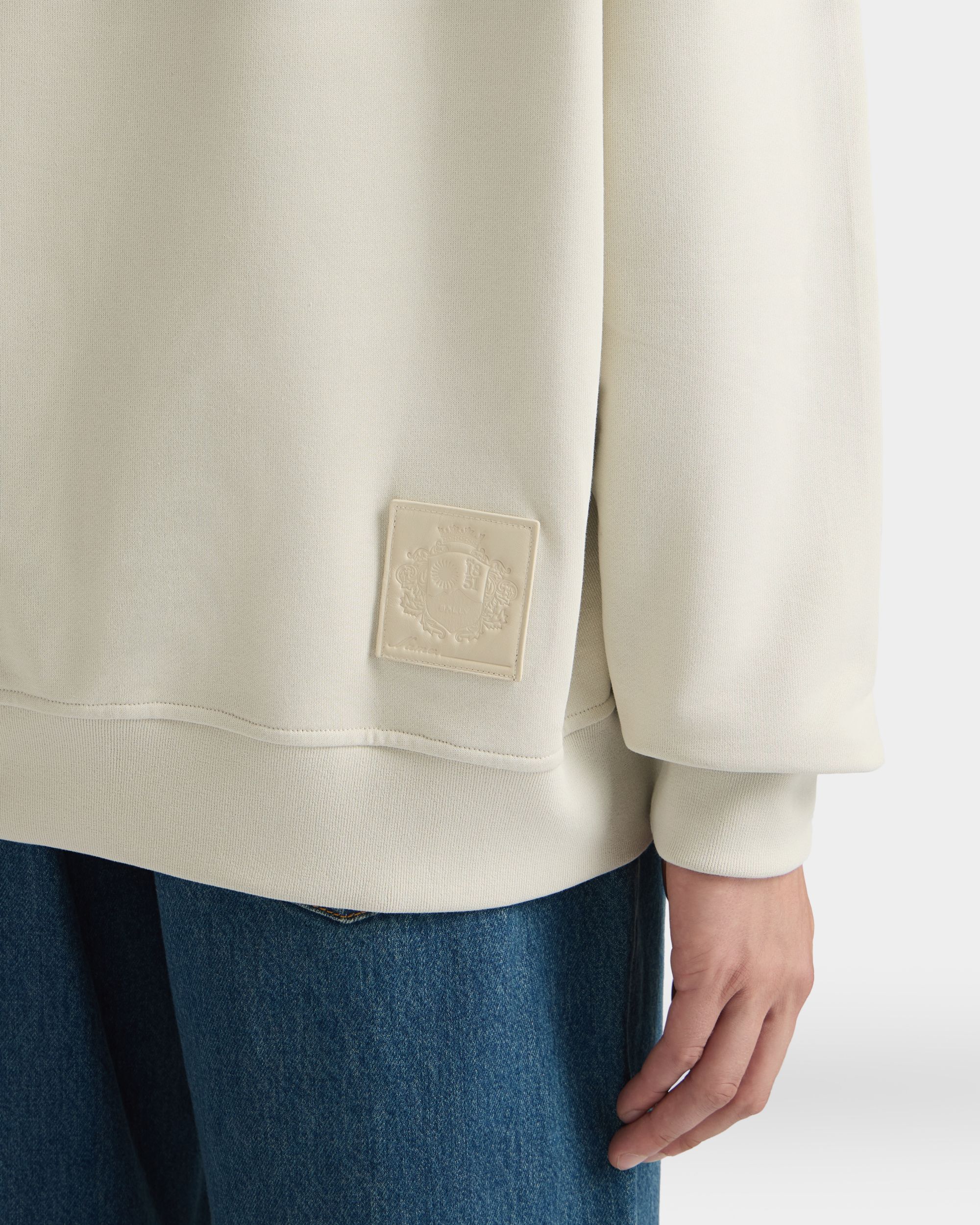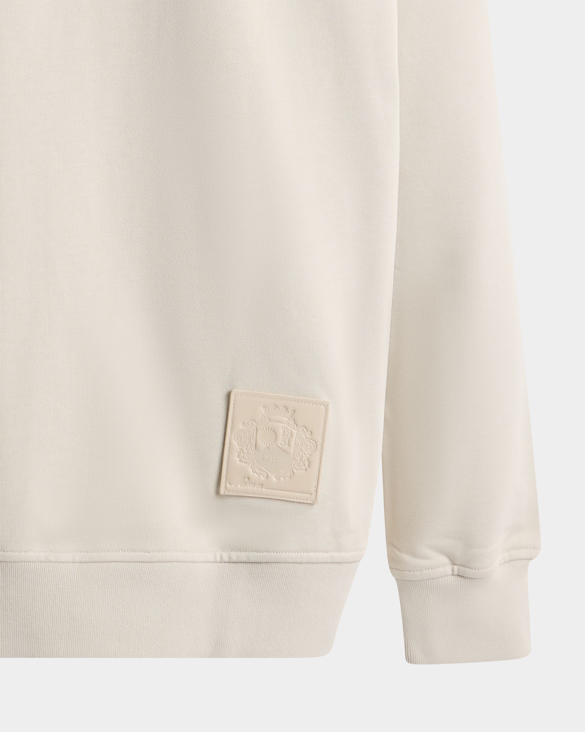 The front of this light grey sweatshirt in knit cotton is finished by a Ski Verbier print in green.