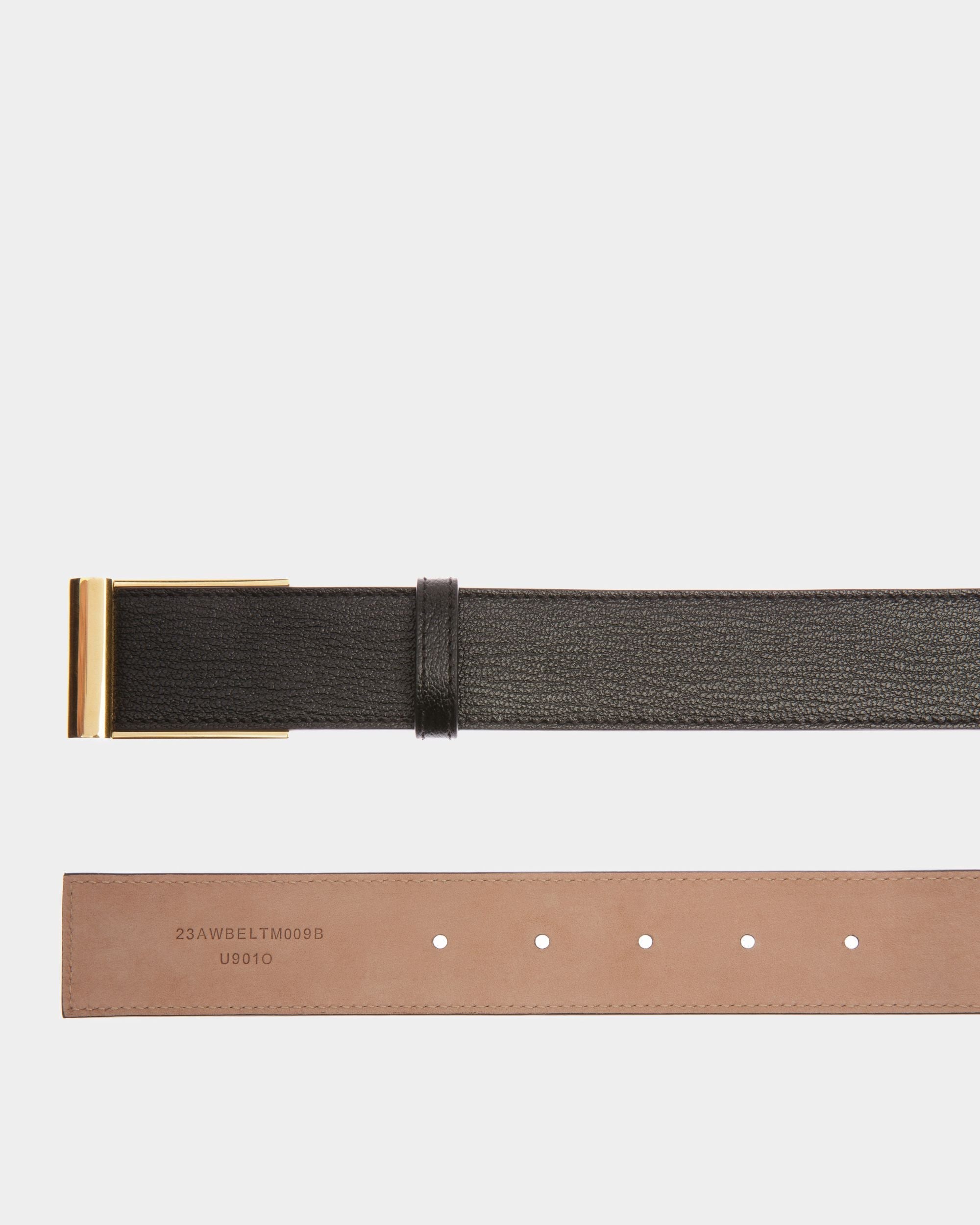 The Outline 35 belt is crafted in embossed black calf leather and features a golden buckle. The classic accessory will pair perfectly with all pants.