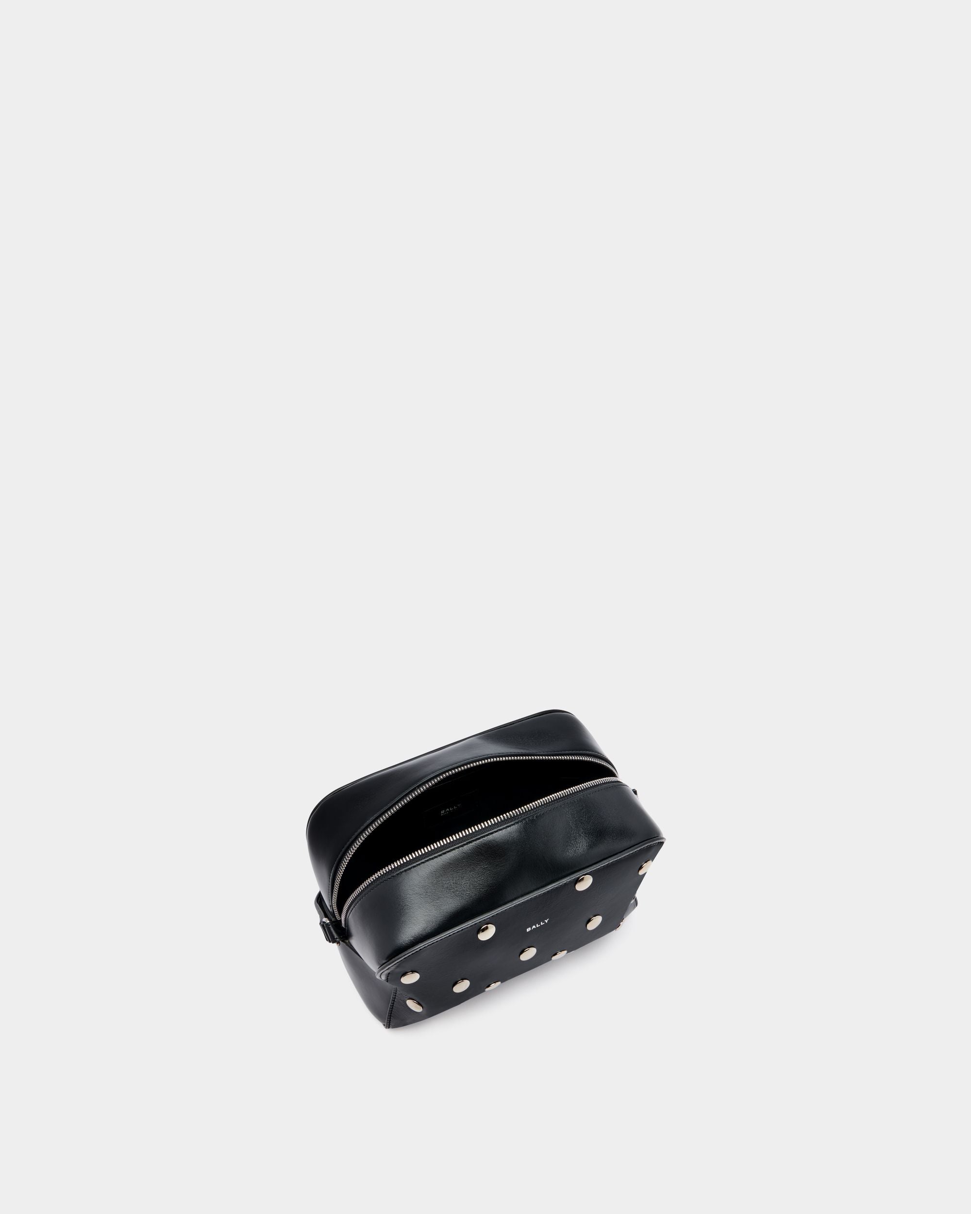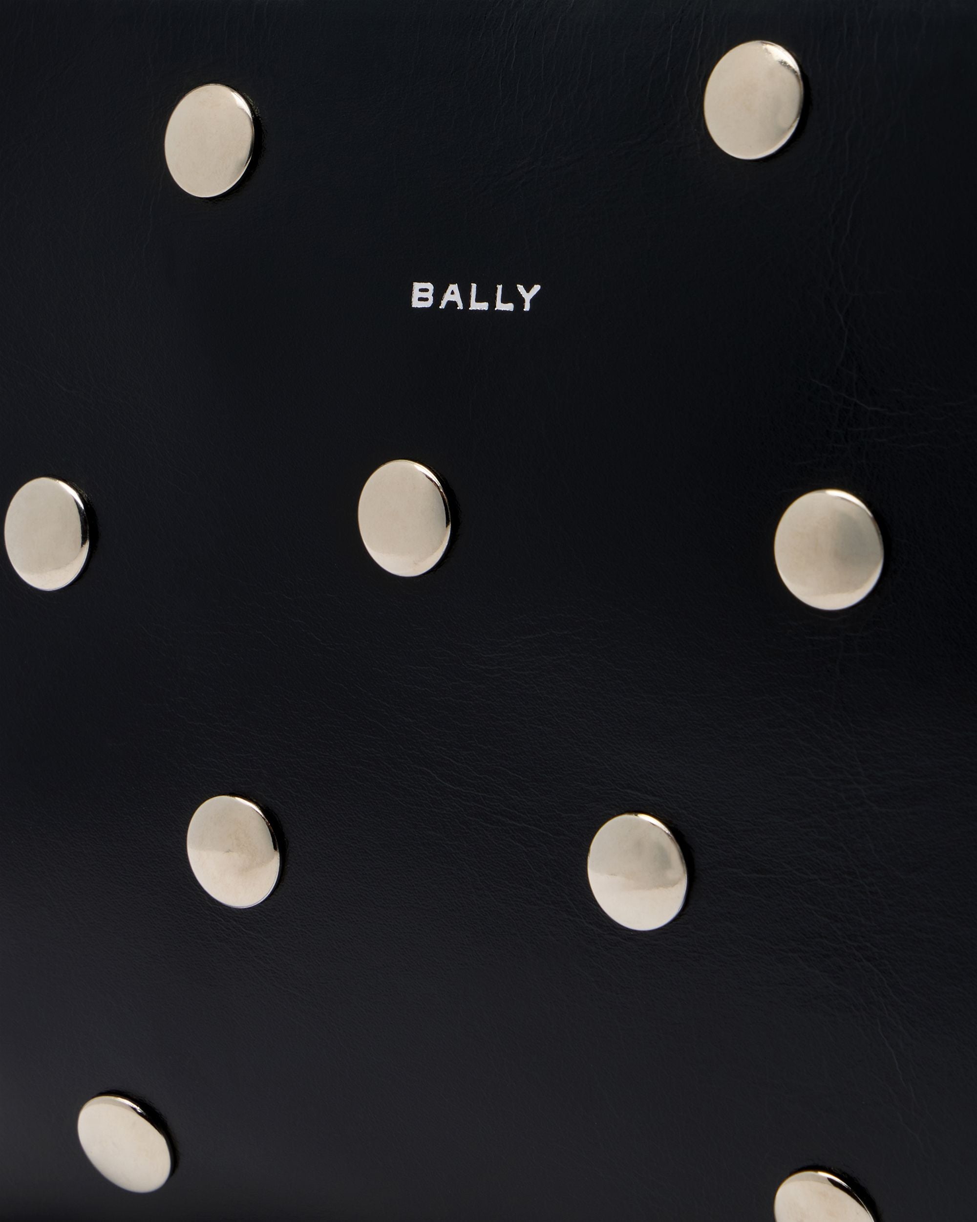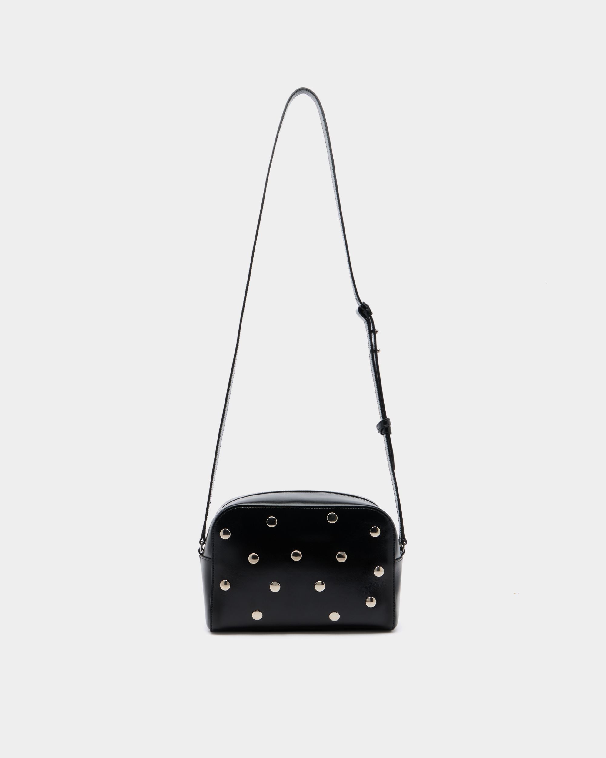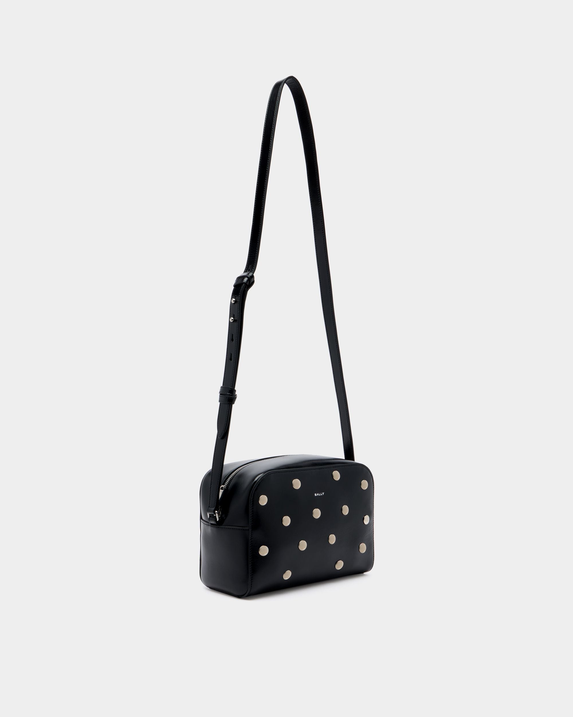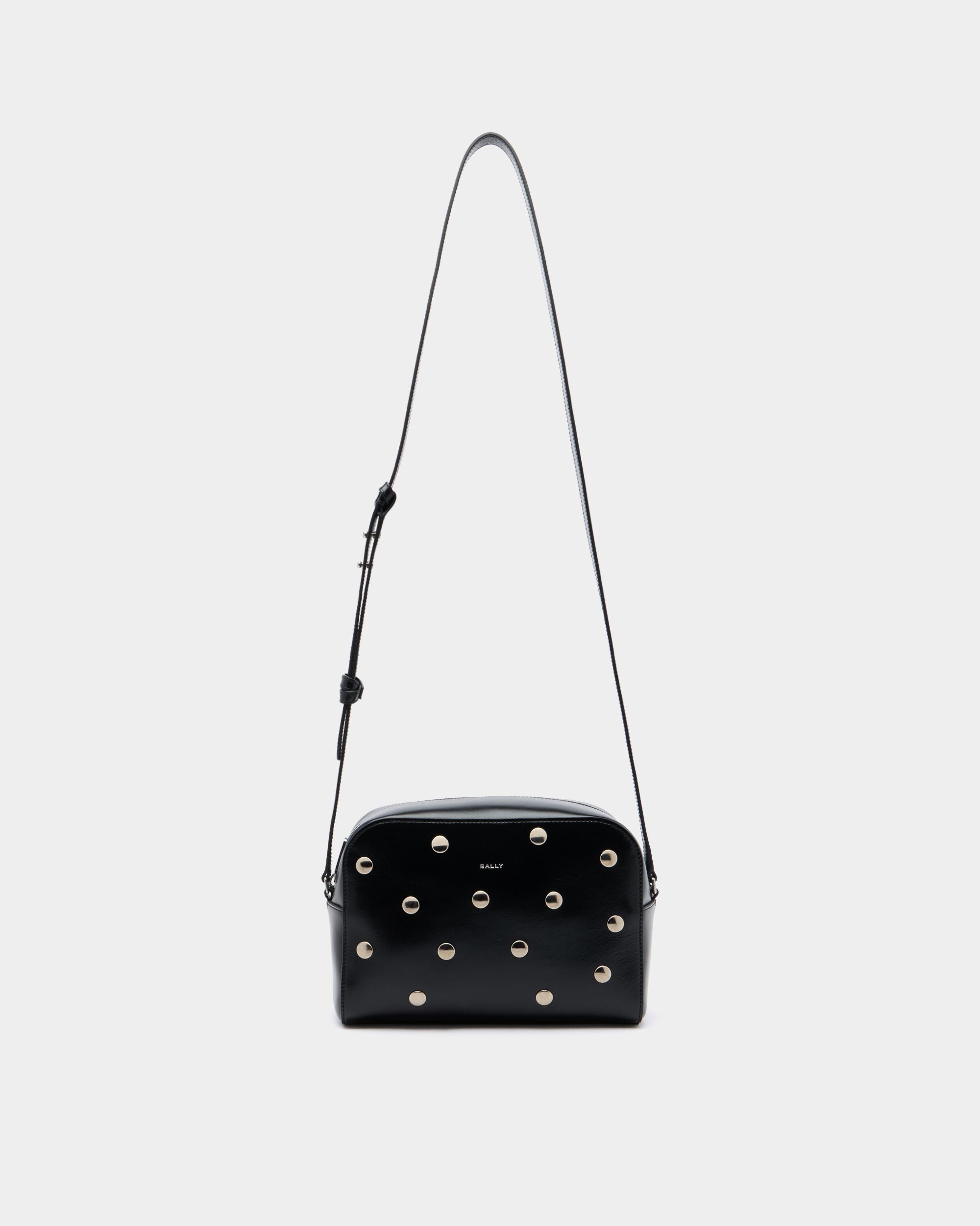 This Easy Bally crossbody bag in black leather is decorated by palladium-hue metal studs for a bold touch.