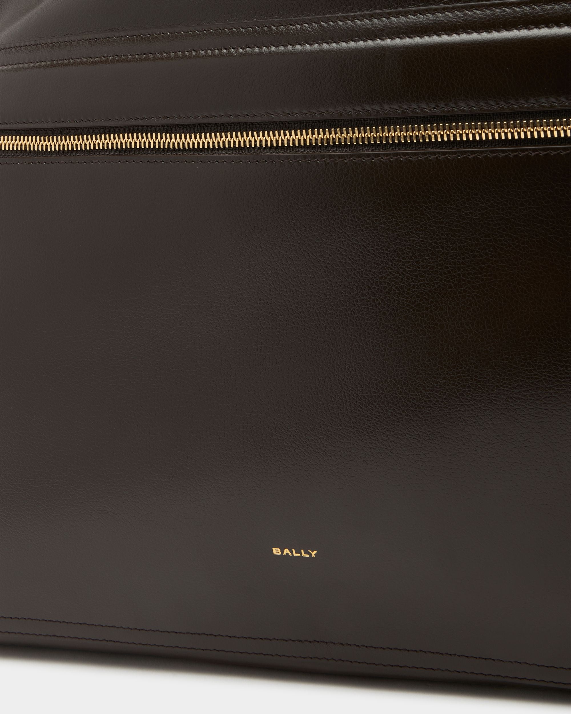 Easy Bally foldable tote bag in Ebano-hue calfskin. The simple silhouette of this bag ensures its versatility. carried by the top two handles when extended or folded into a more compact shoulder option as desired.