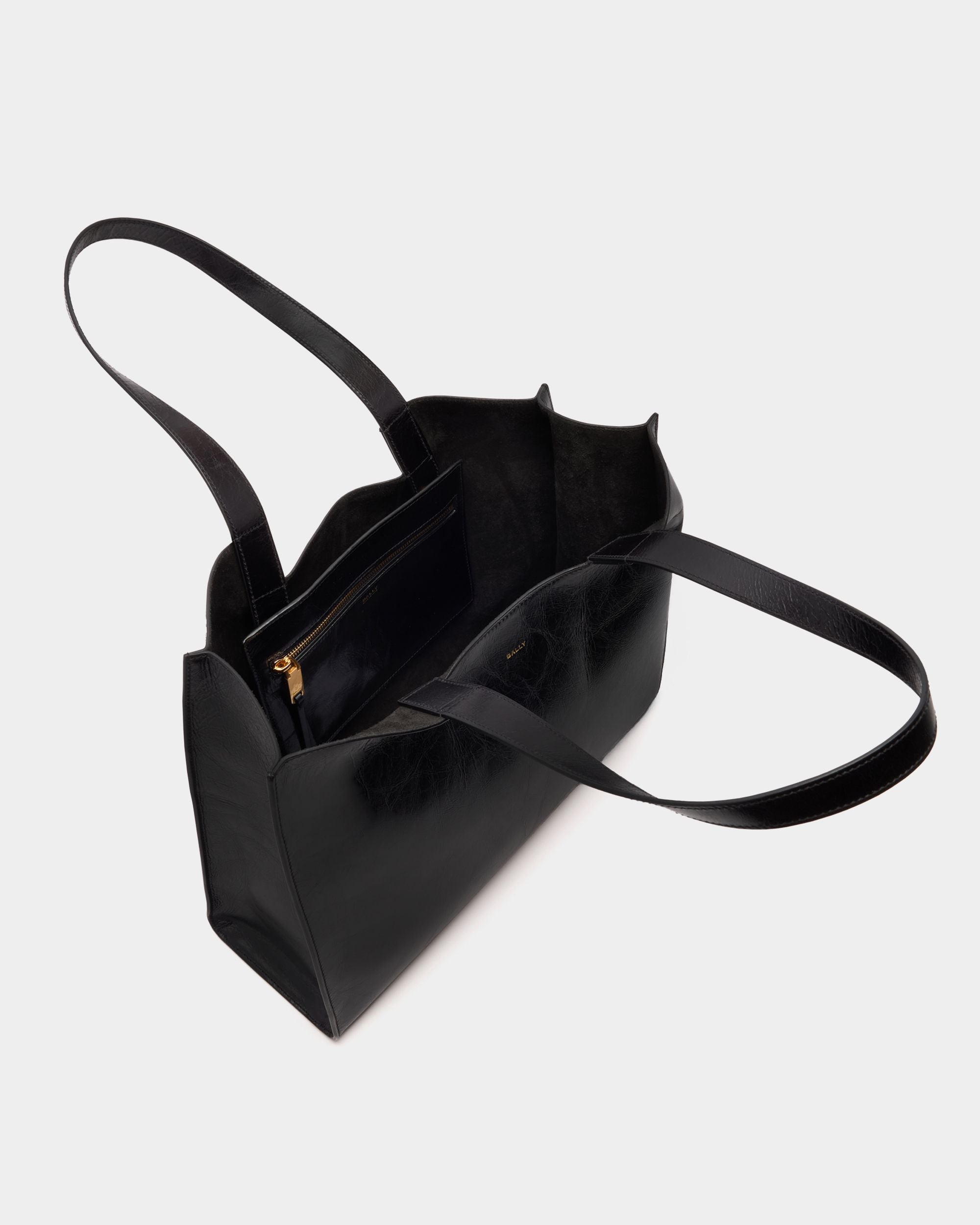 Meticulously crafted into a clean rectangular silhouette. this Easy Bally tote bag in black leather offers a choice between hand or shoulder carry. A gold-tone foil Bally logo embellishes the front.