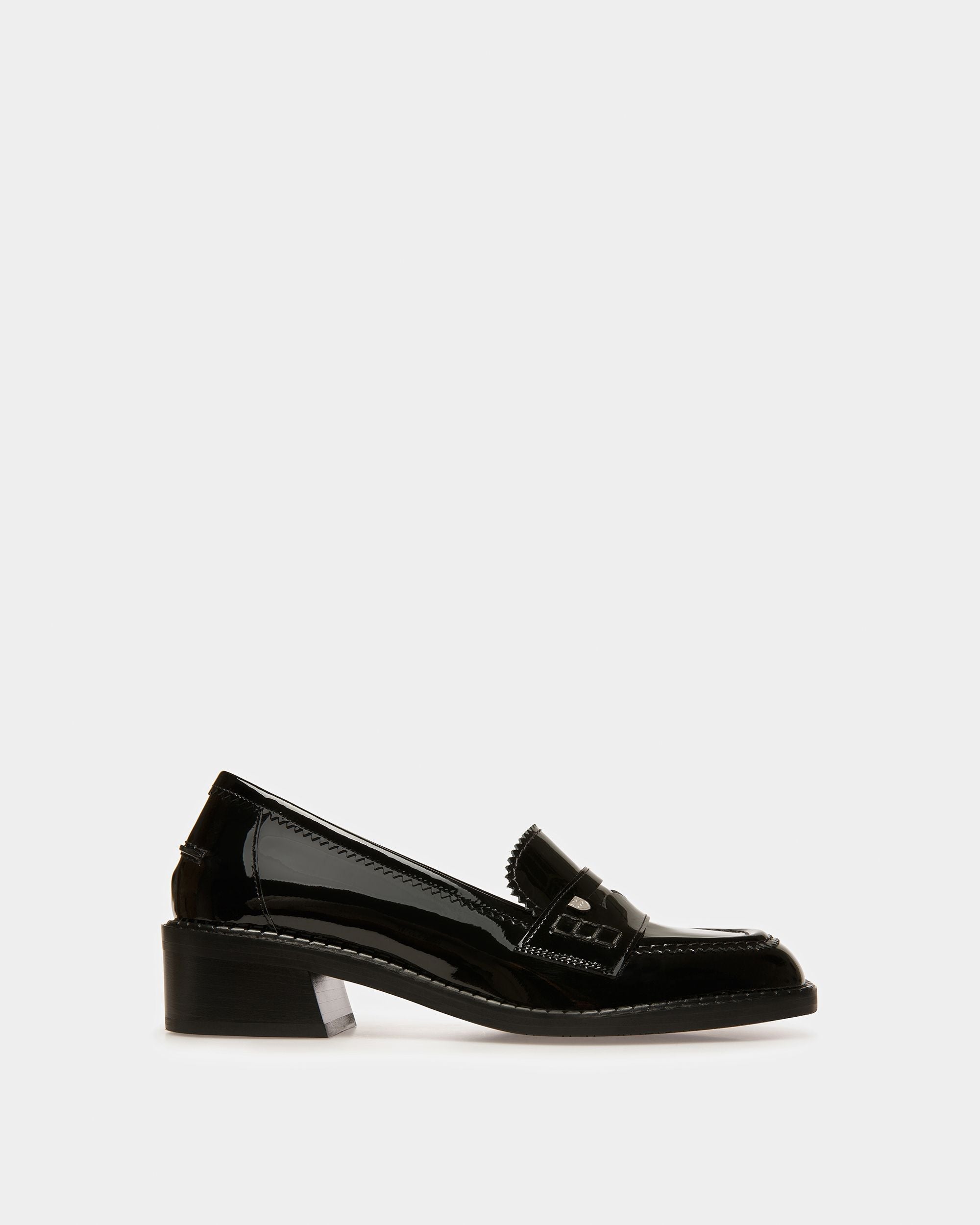 Crafted from black patent calf leather. Elly elevates the iconic moccasin silhouette with B-Chain hardware. The style is complete with a tonal rubber sole.