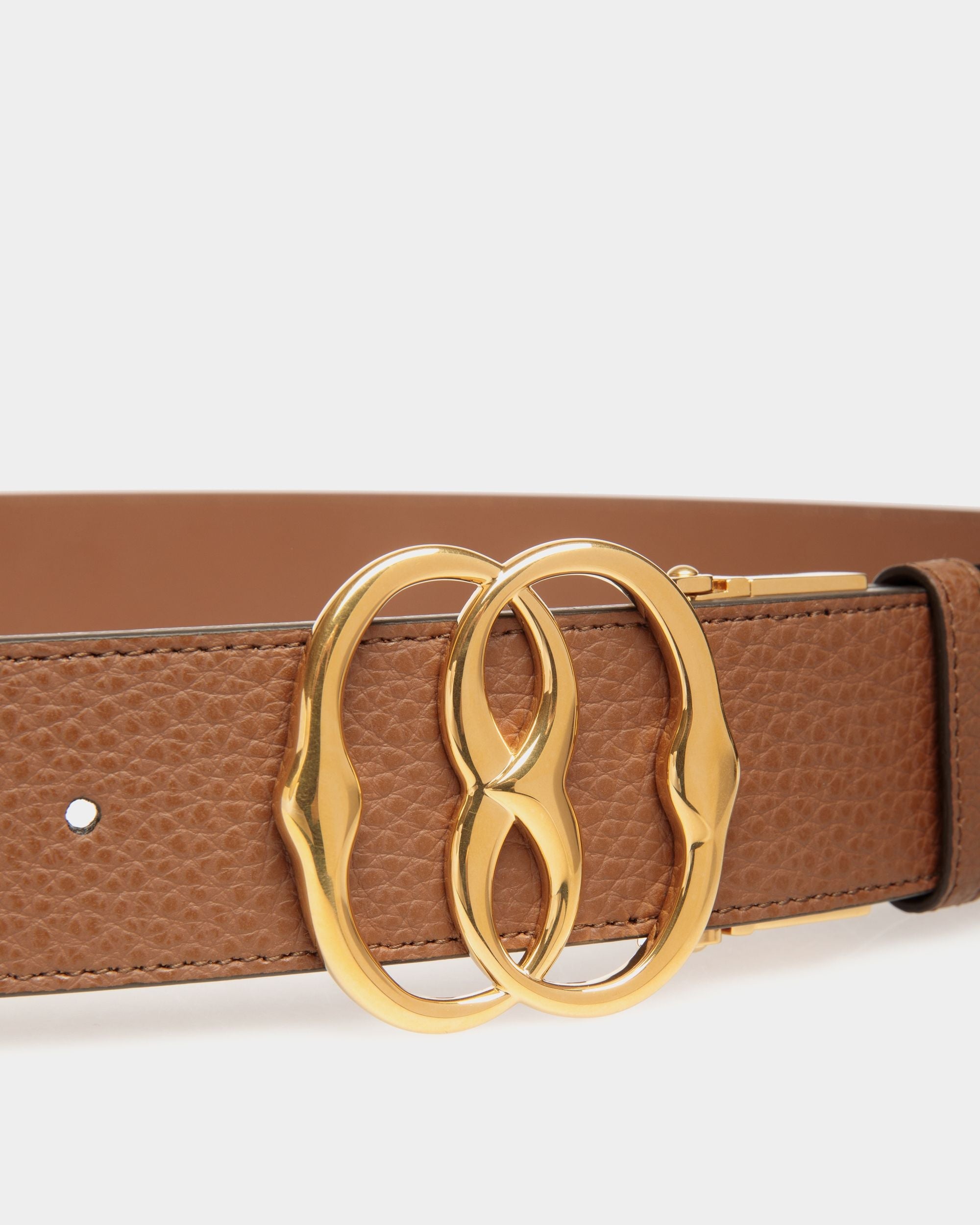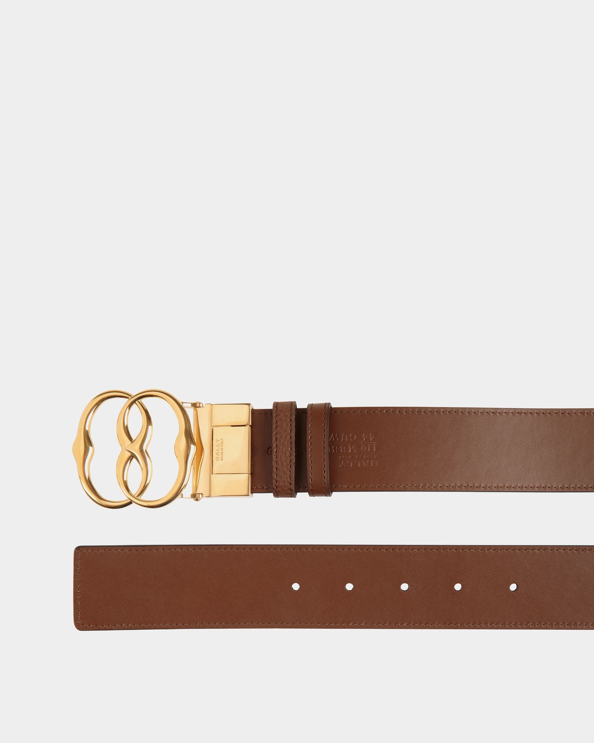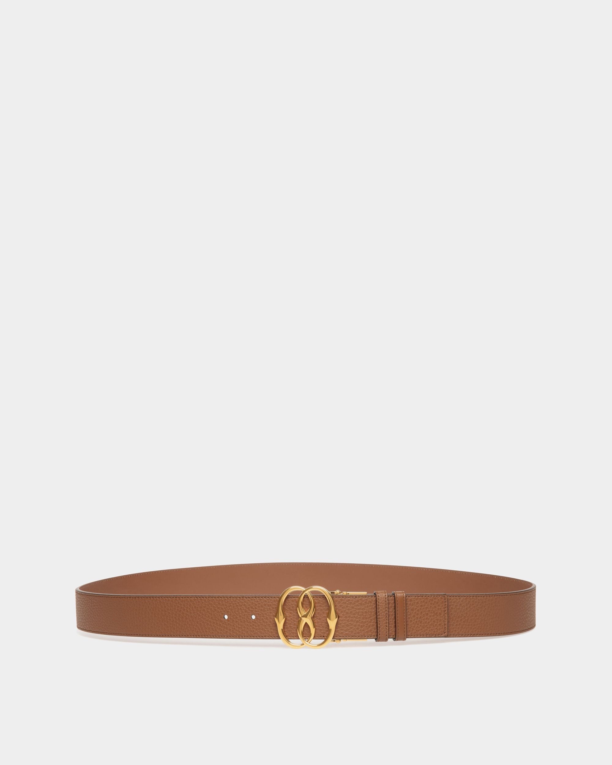 This 40 mm adjustable and reversible belt in smooth and grained brown calfskin is embellished by an iconic Bally Emblem buckle in metal.