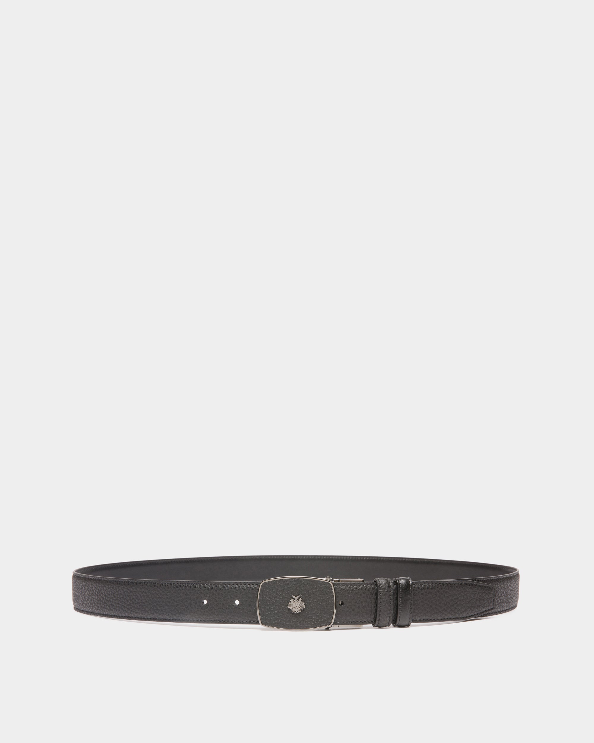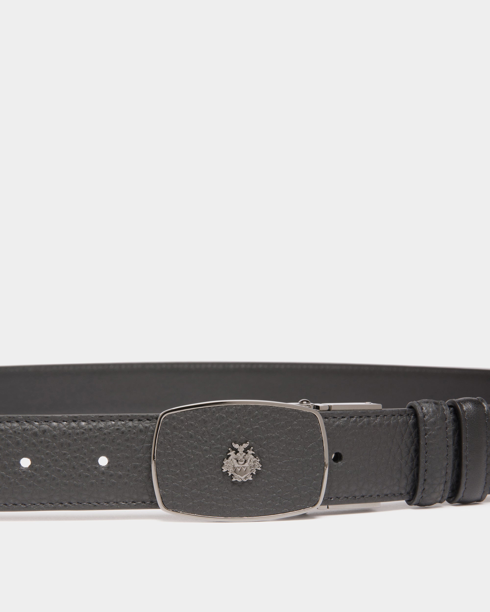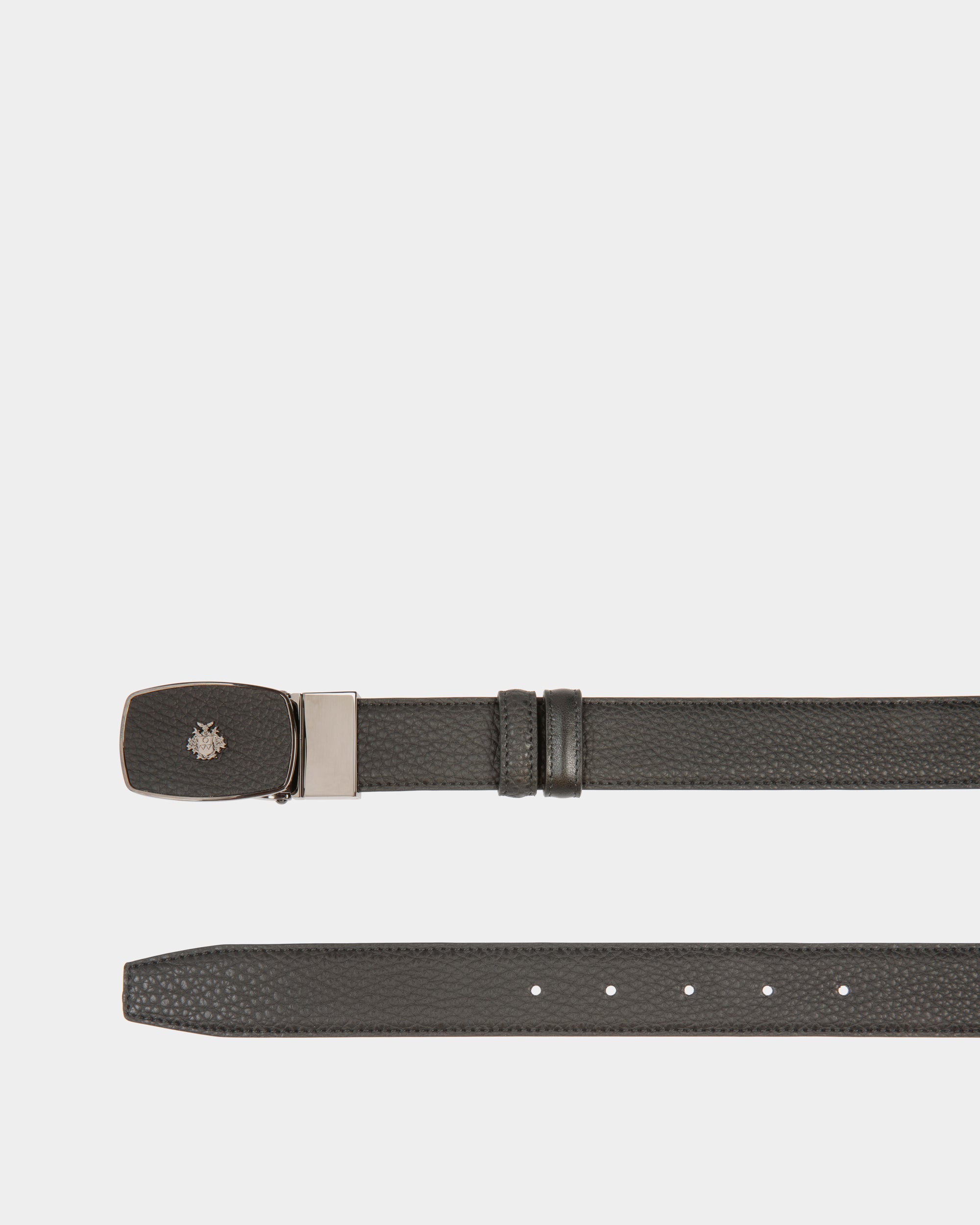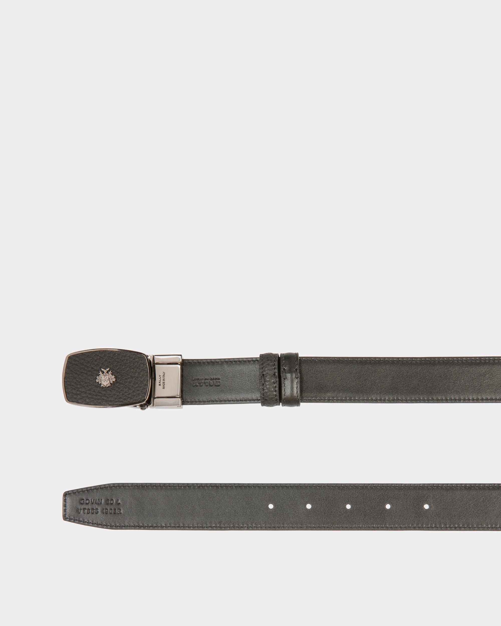 A masterpiece of fine leatherworking. this Govin 30mm adjustable and reversible belt features a ruthenium-hue frame buckle with inset leather and a metal Bally Crest detail at the front.