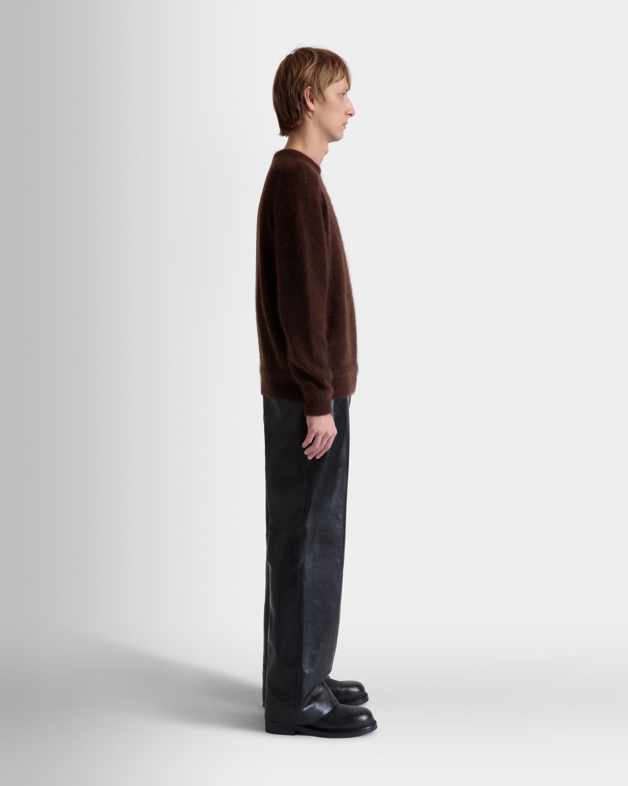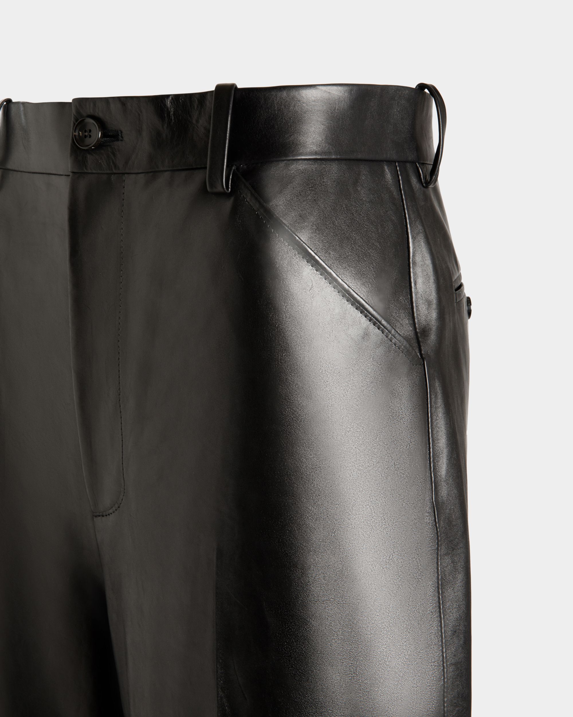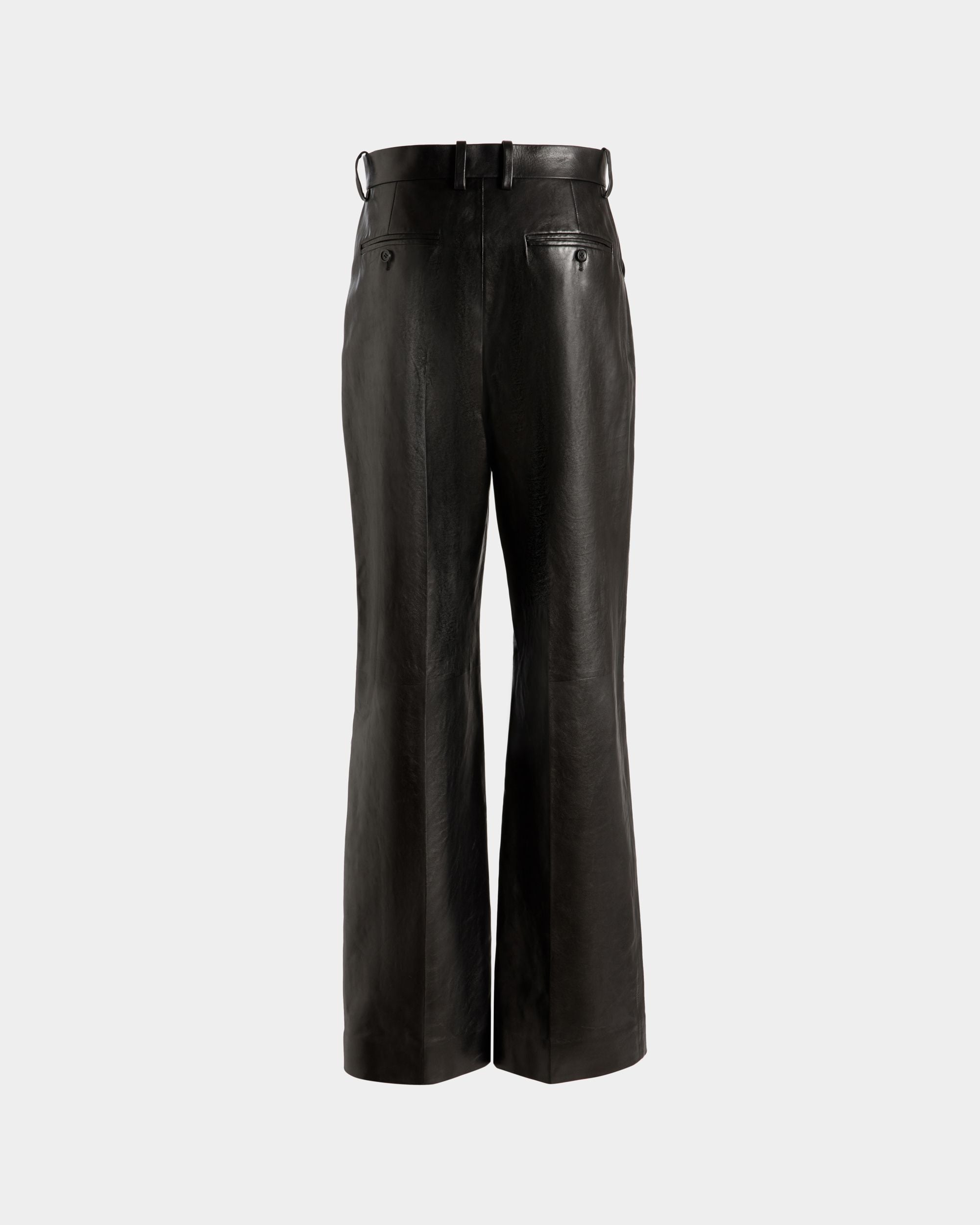 In buttery soft calfskin. these high-waist pants have been meticulously constructed into a wide-leg trouser silhouette. complete with central creases and welted rear pockets.