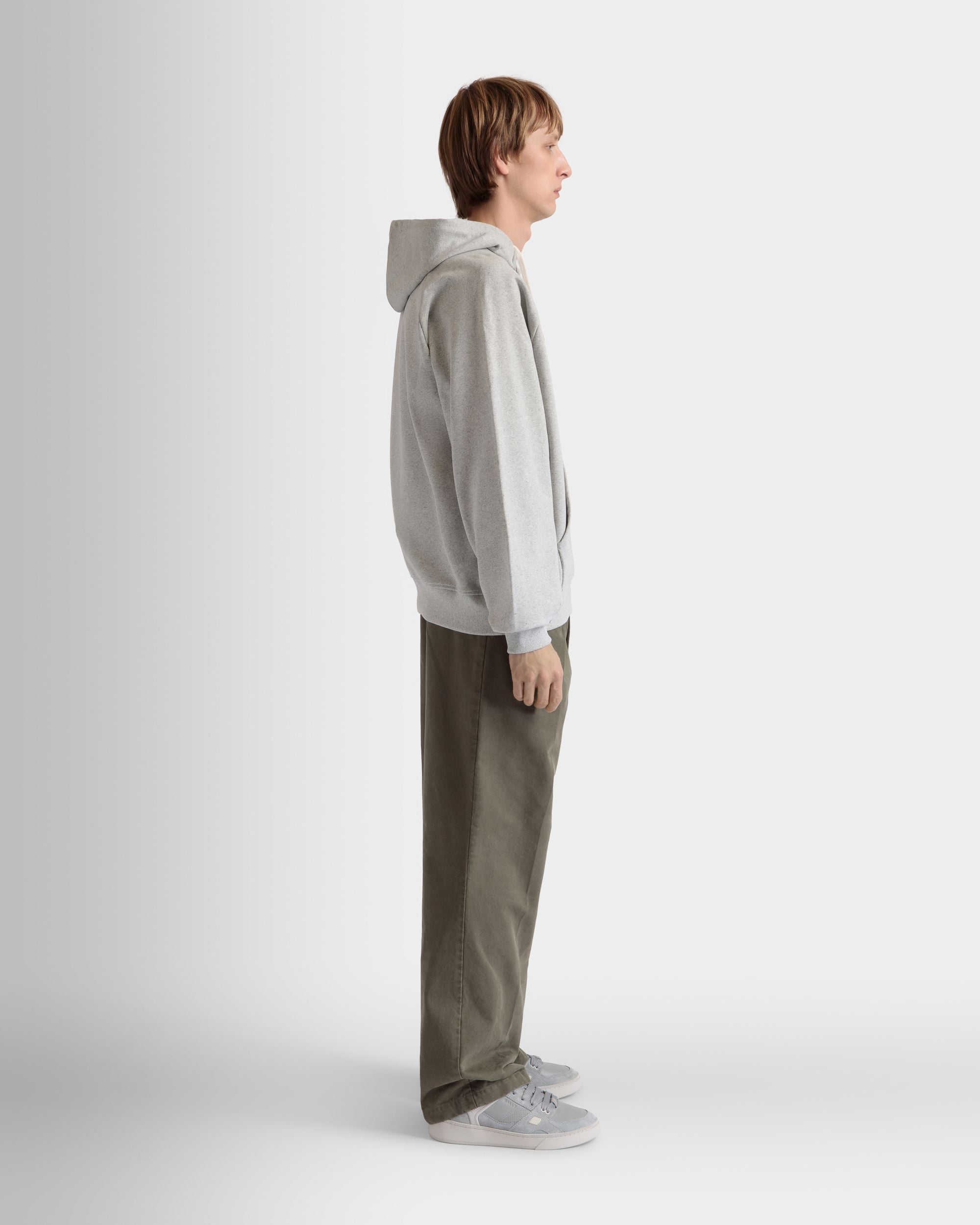 Hoodie With Bally Crest Label In Grey Melange Cotton