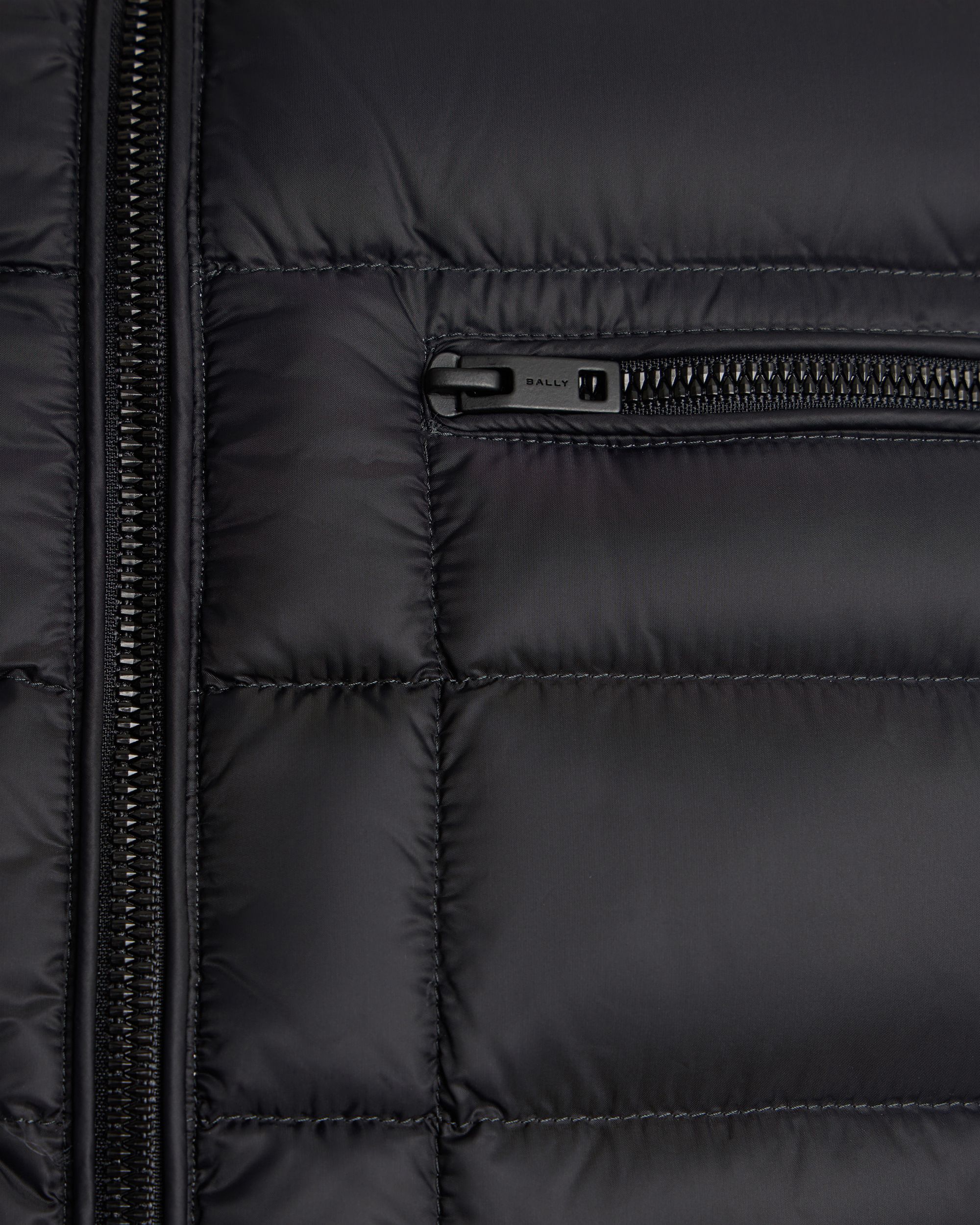 This light puffer jacket in navy blue nylon is padded with down for exceptional warmth.