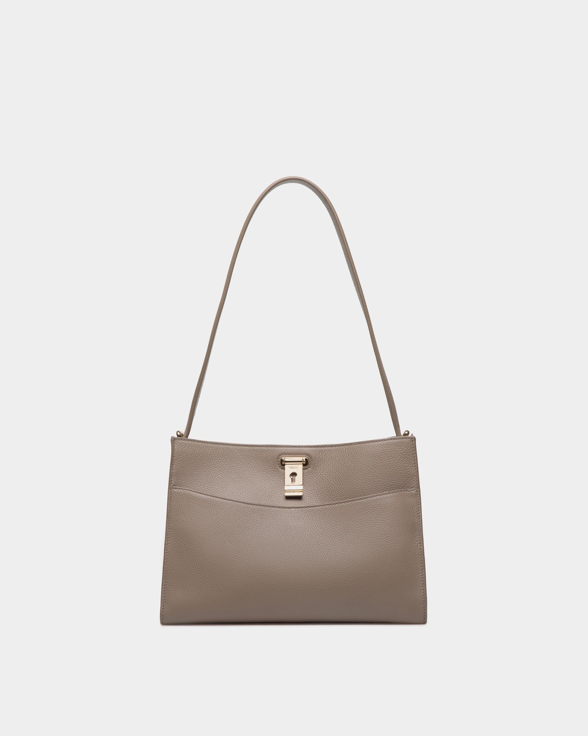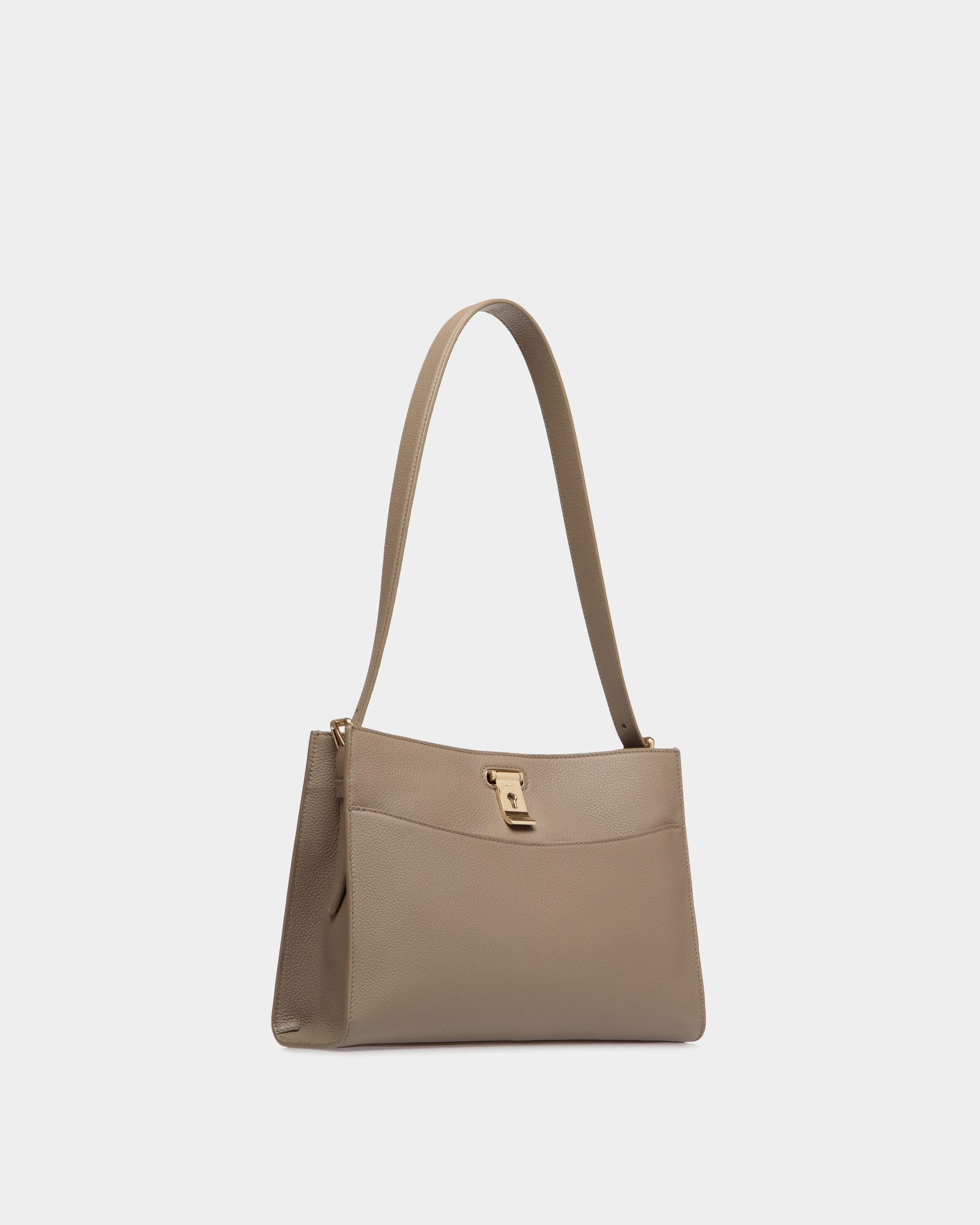 Lock Me Shoulder Bag in Taupe Grained Leather