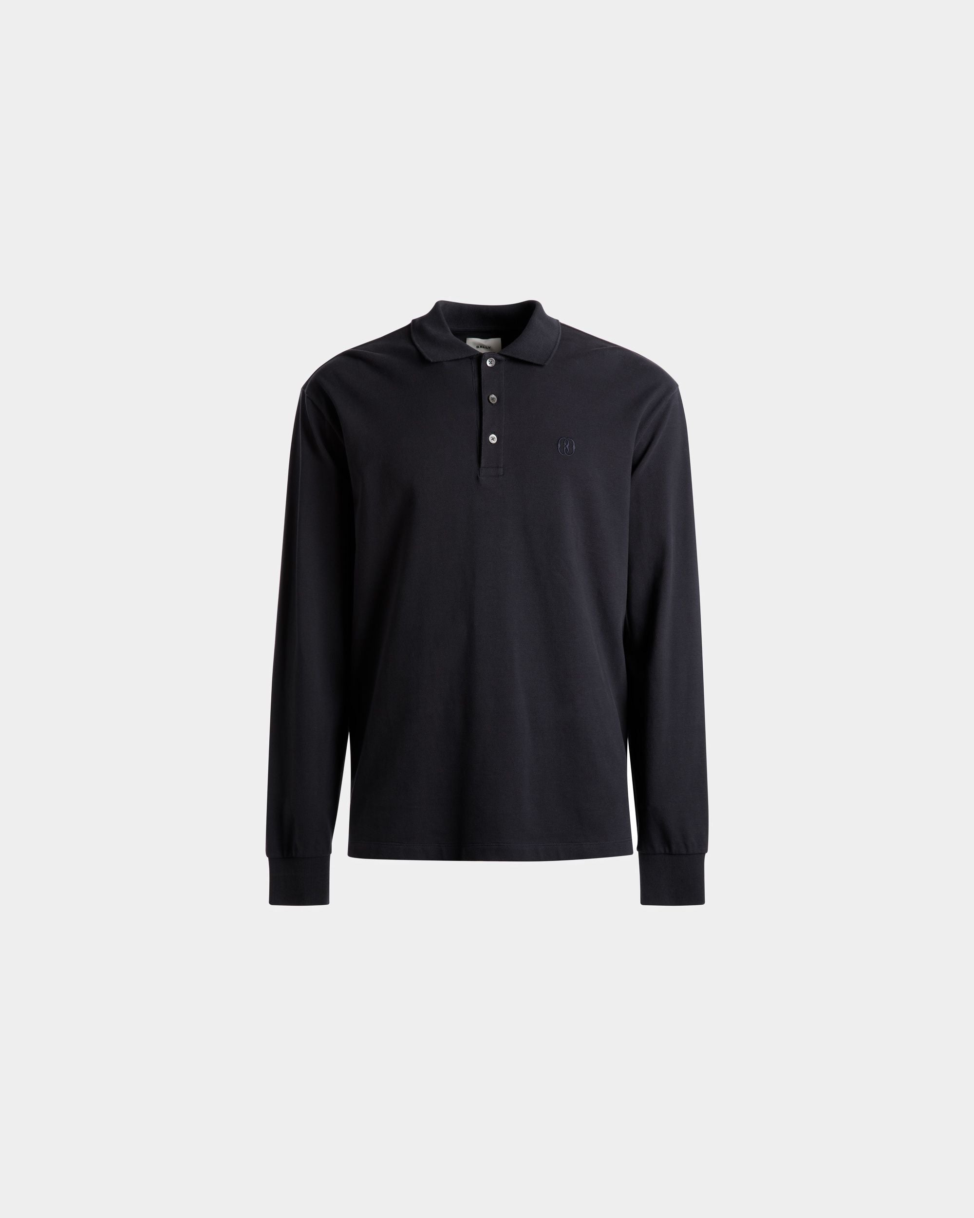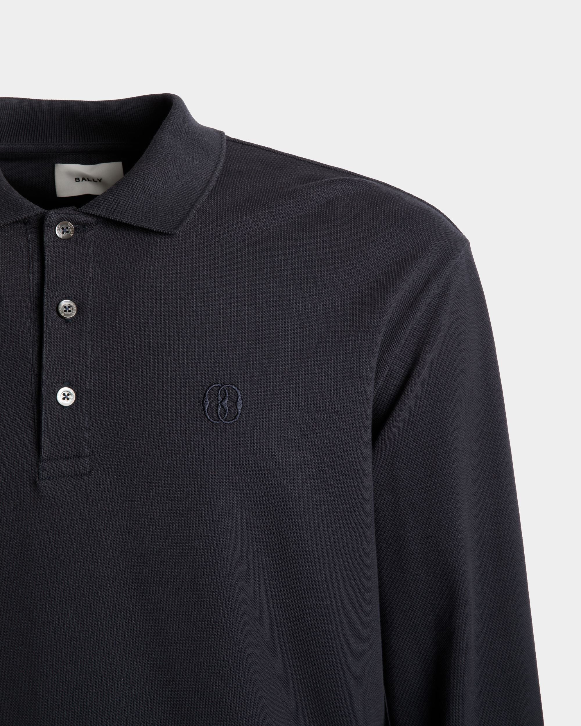 Long Sleeve Polo In Midnight Cotton