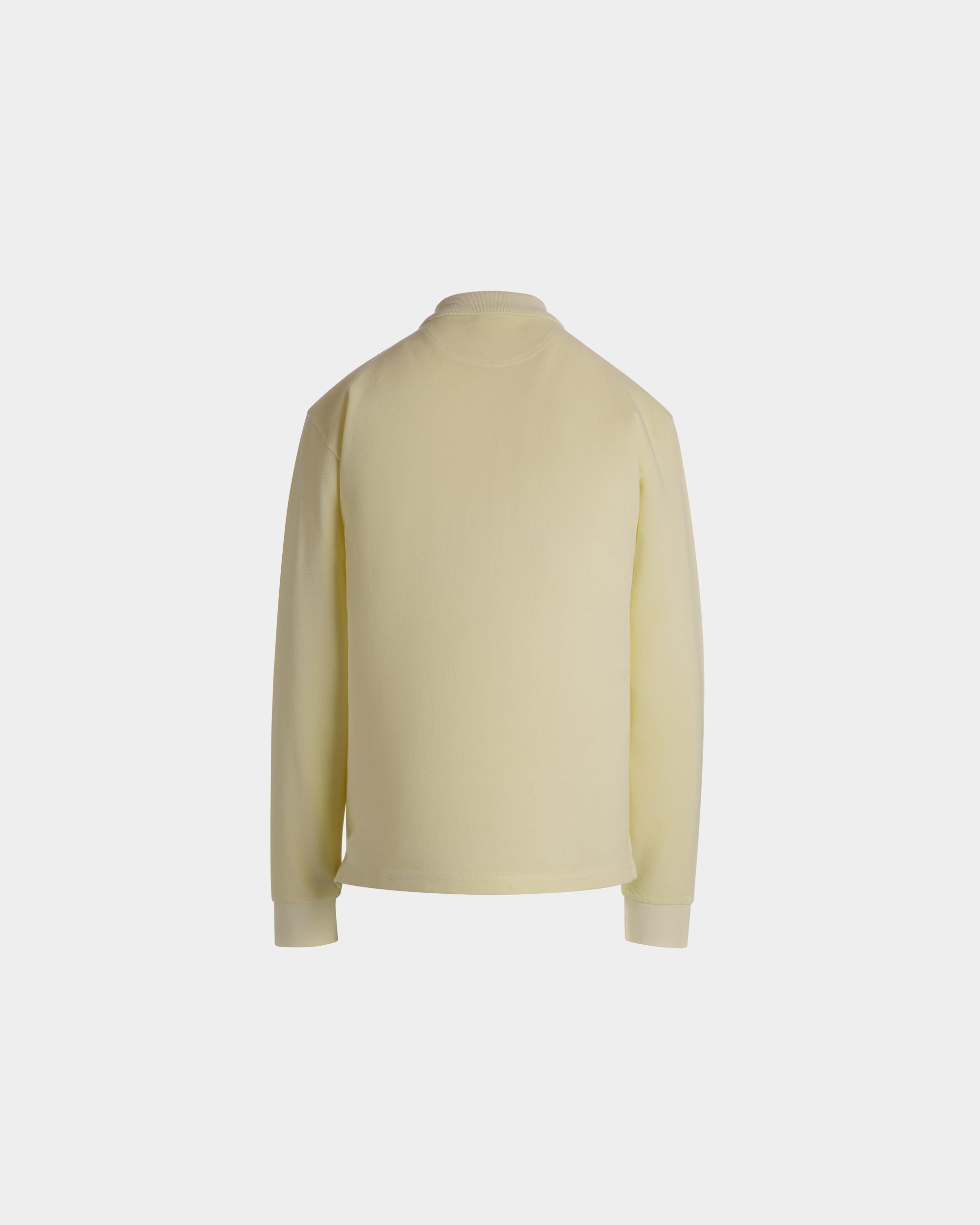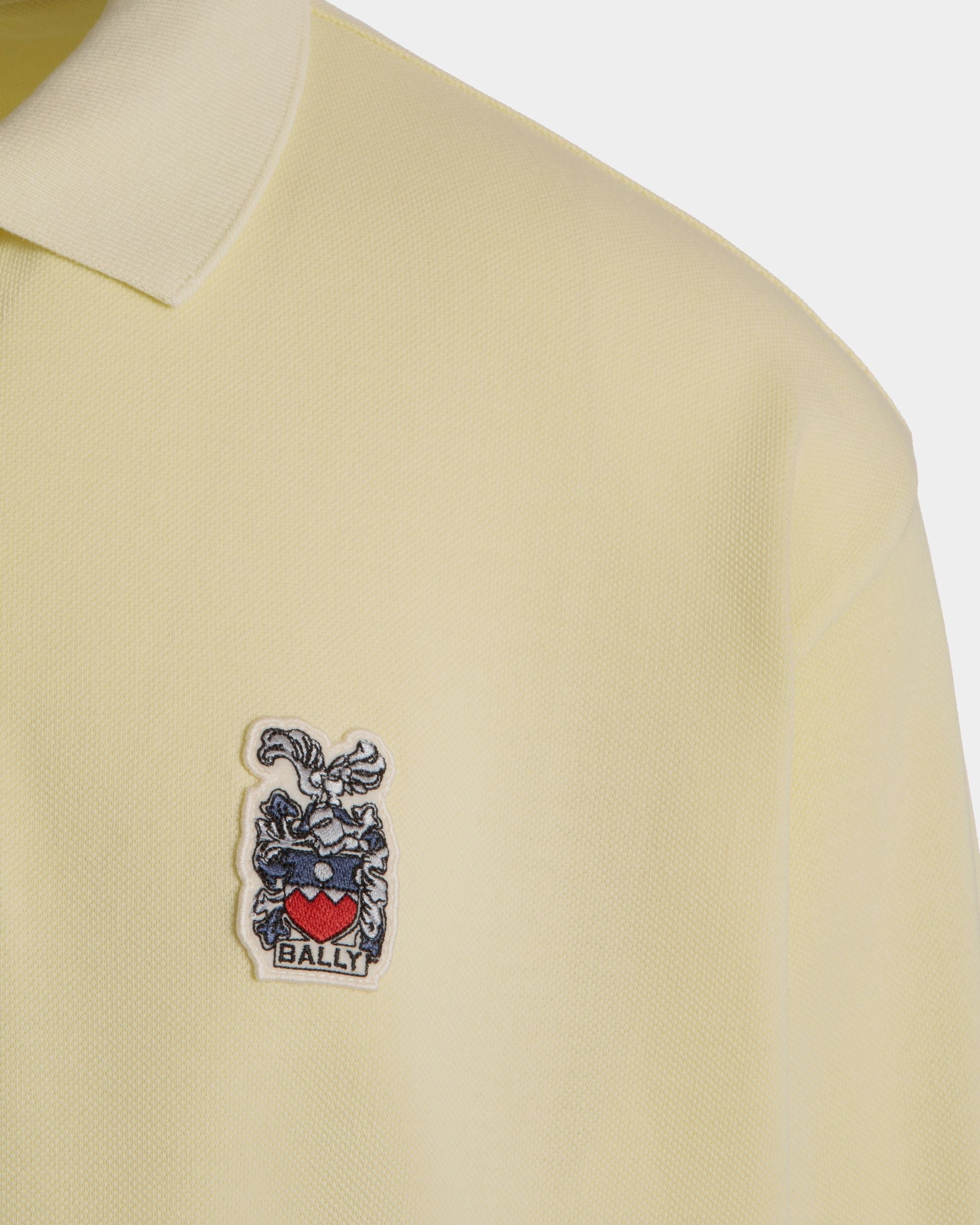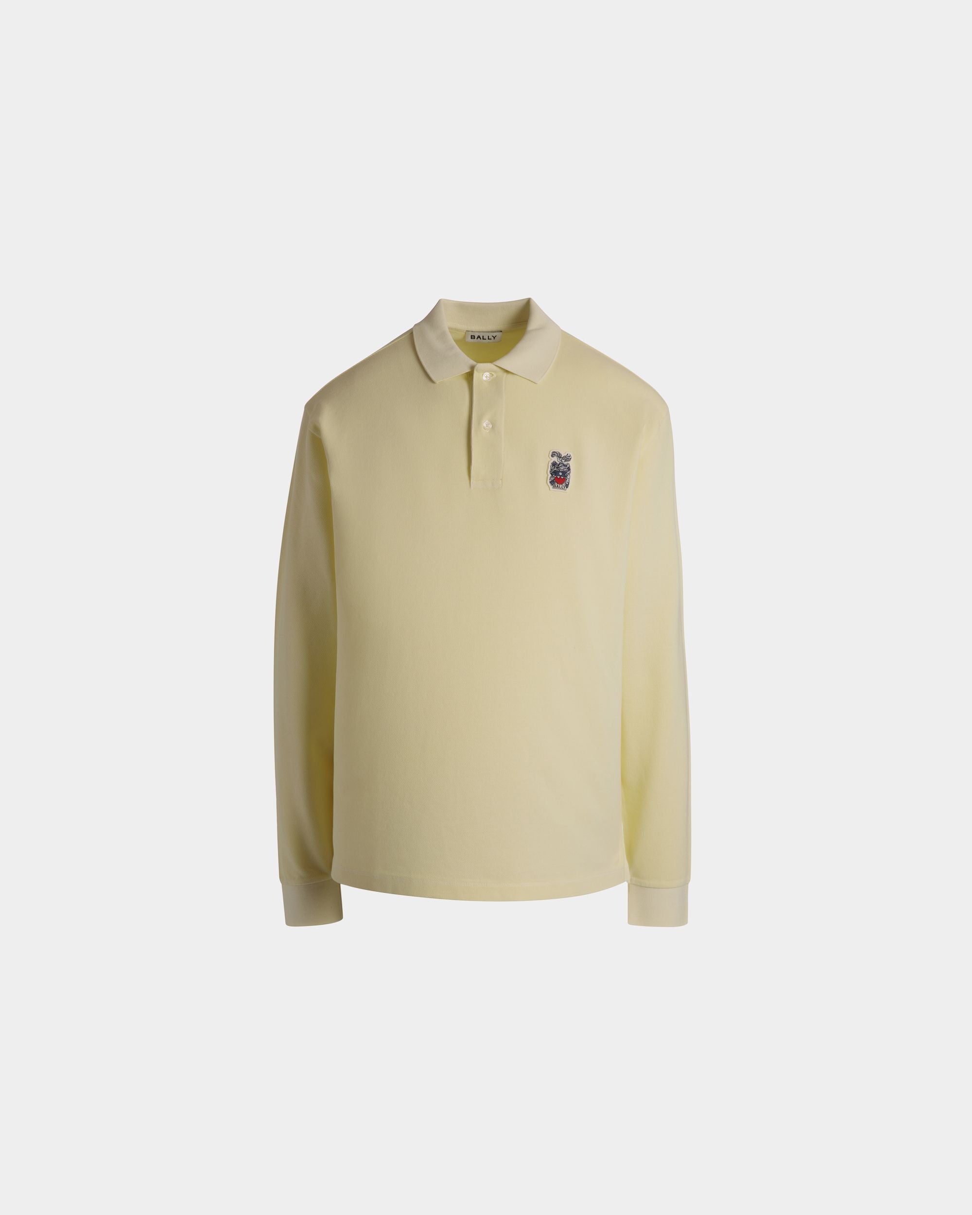 In piqu??-knit cotton. this long-sleeve polo shirt has a Dusty Yellow hue and an embroidered Bally Crest patch on the left chest.