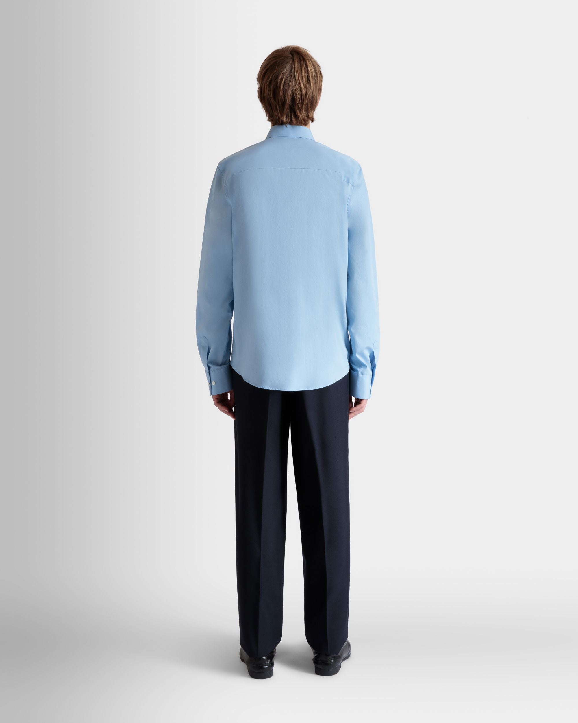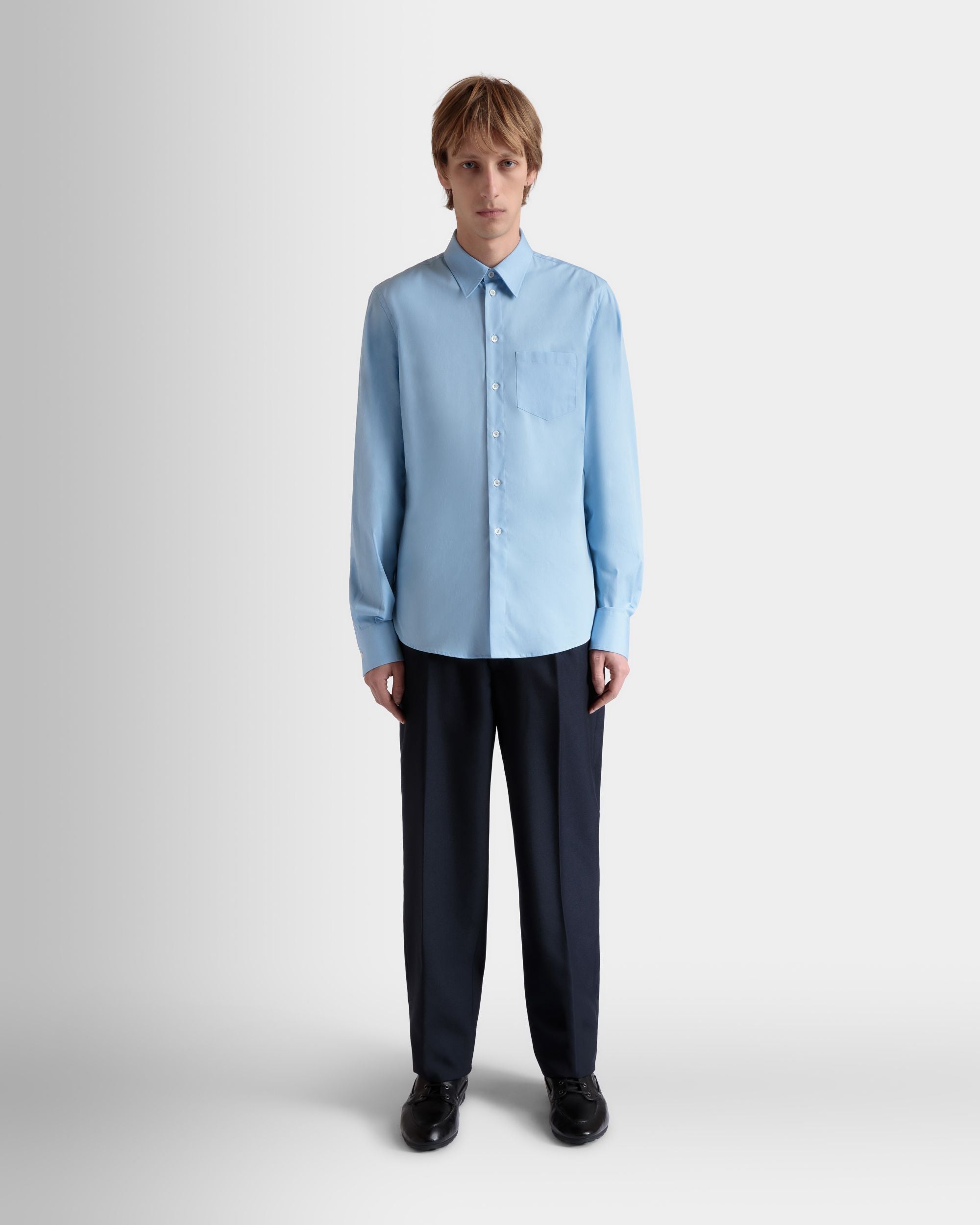 This light blue cotton shirt is embellished by a chest pocket and mother-of-pearl buttons.